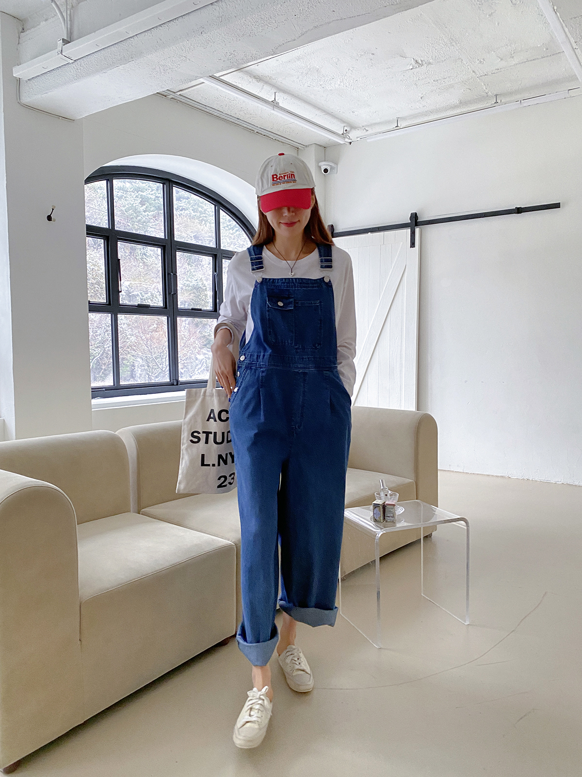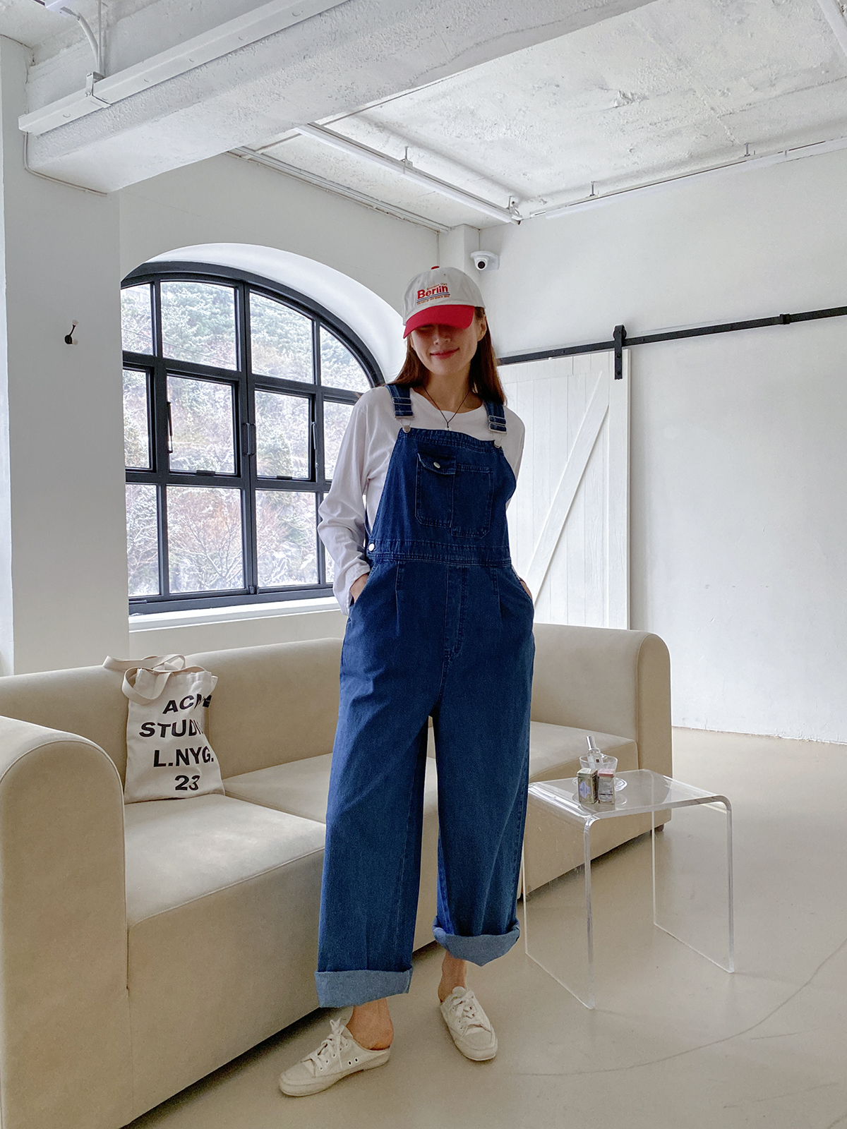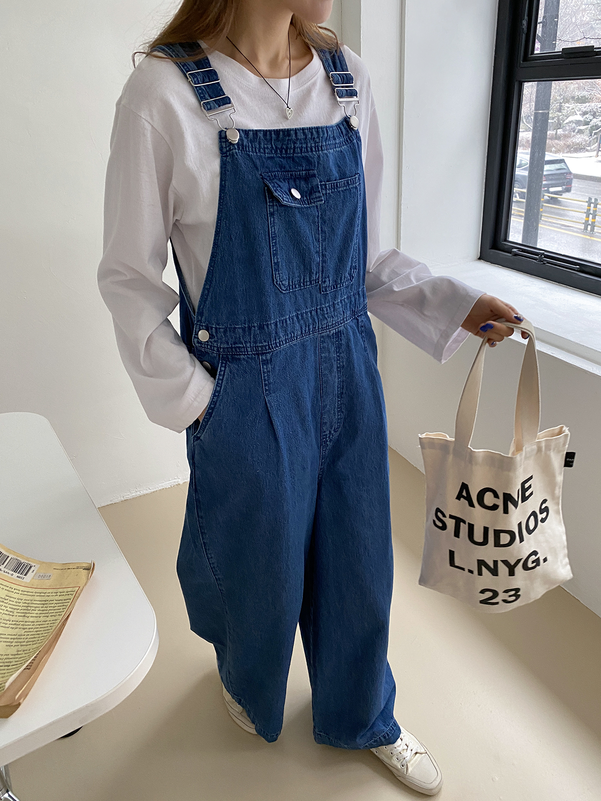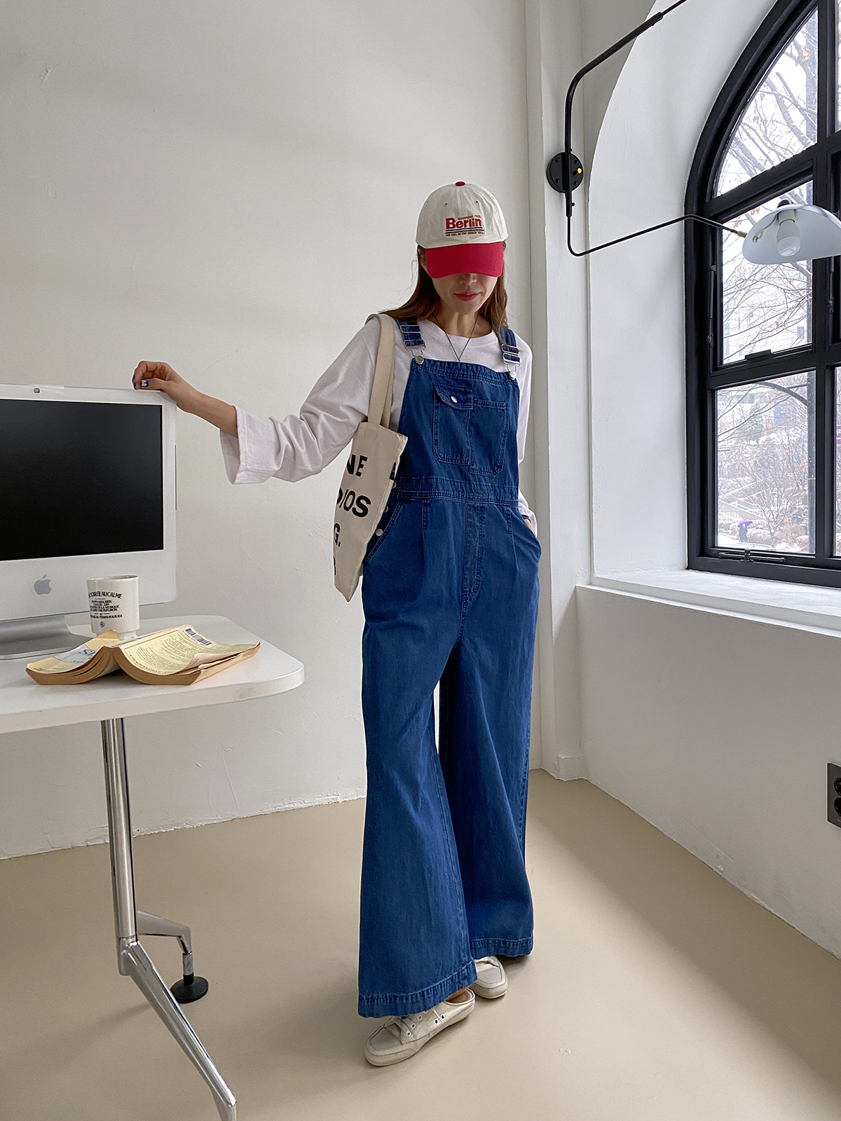 와이드한 핏으로 편하면서 멋스러운 룩을 연출할 수 있는 멜빵 데님 팬츠 추천해드려요~!