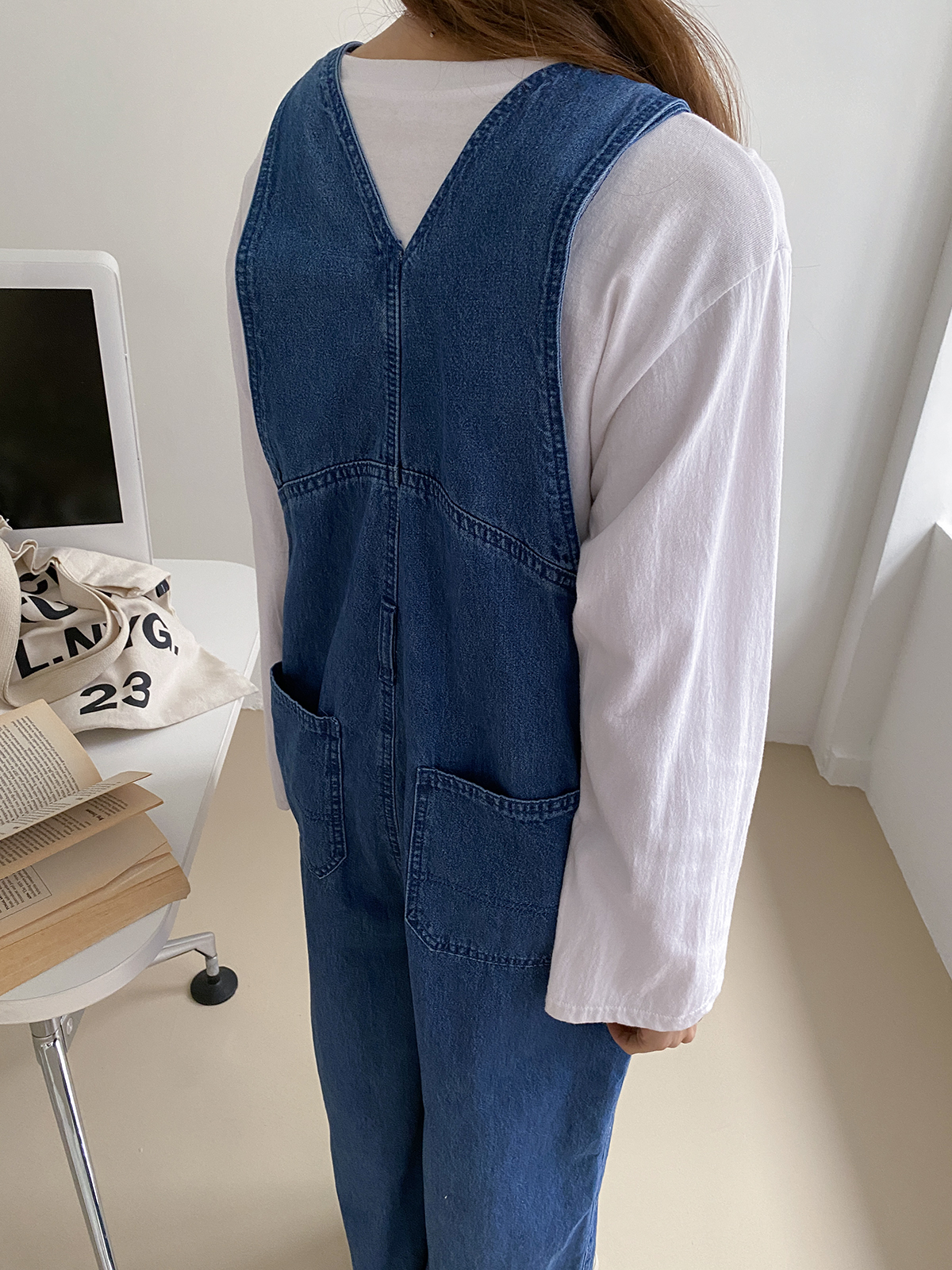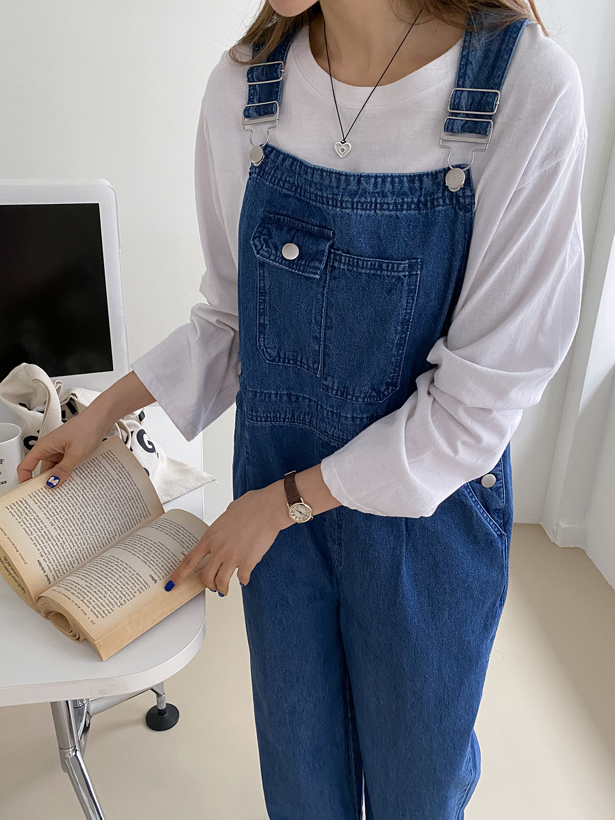 PT13412K3C-젤로니 포켓 오버롤 멜빵 데님 팬츠