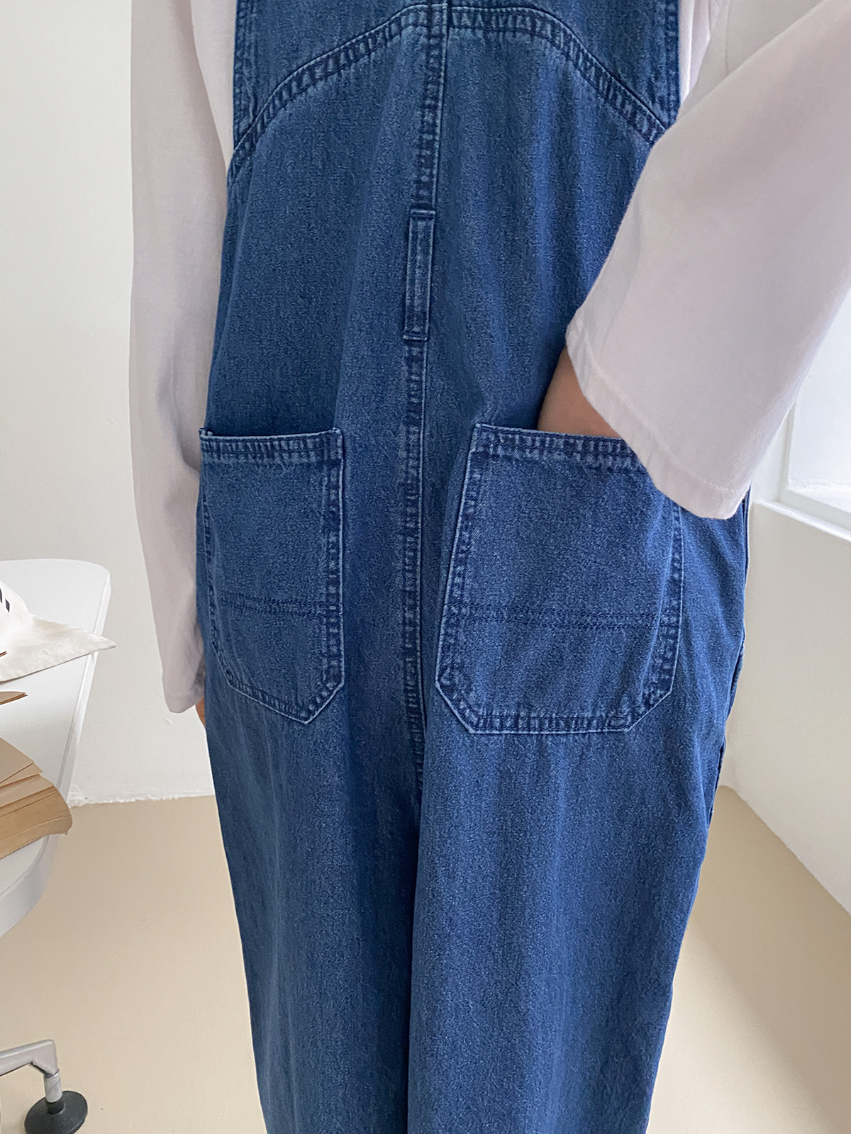 [ PT13412K3C-젤로니 포켓 오버롤 멜빵 데님 팬츠 ]