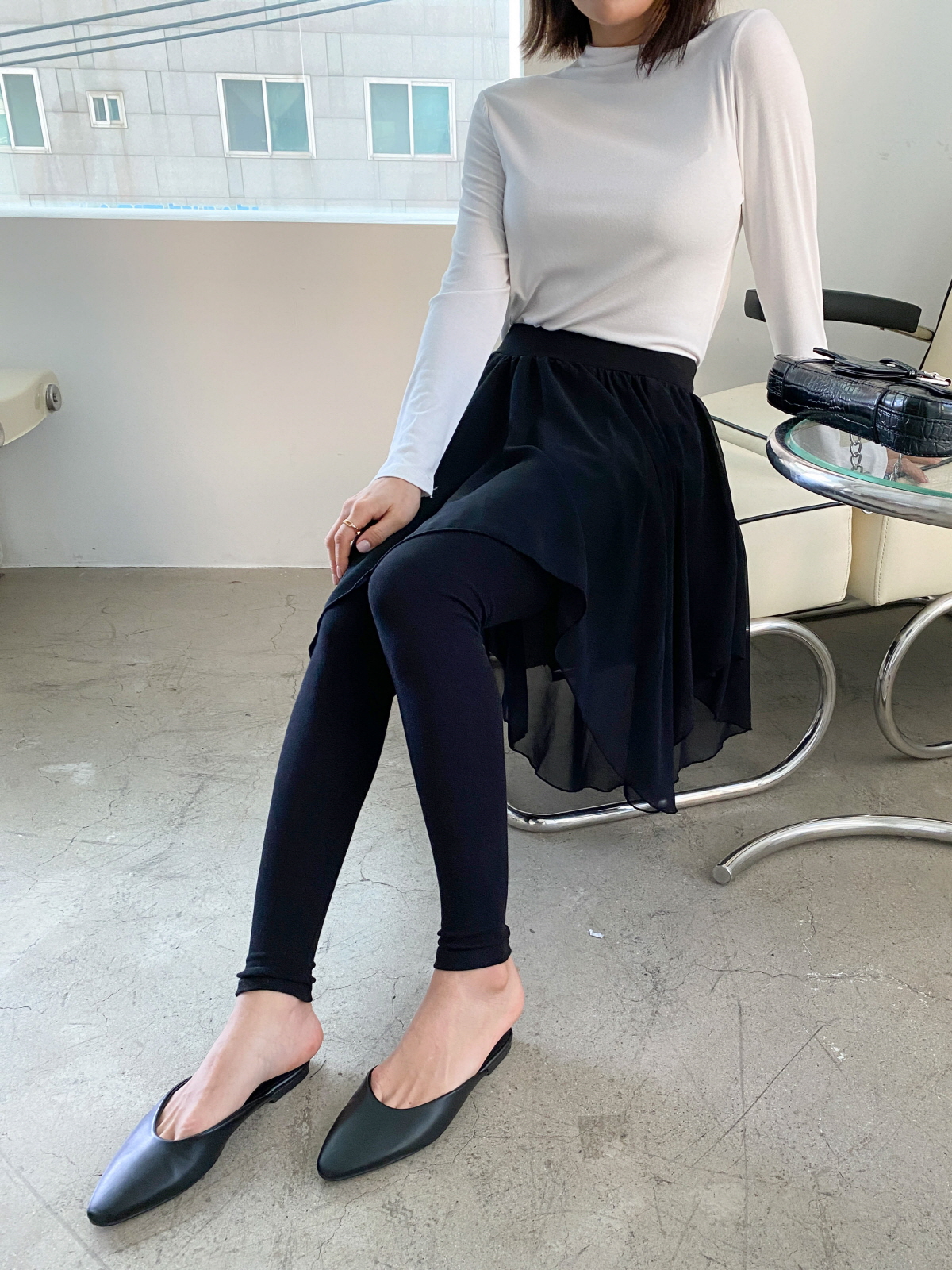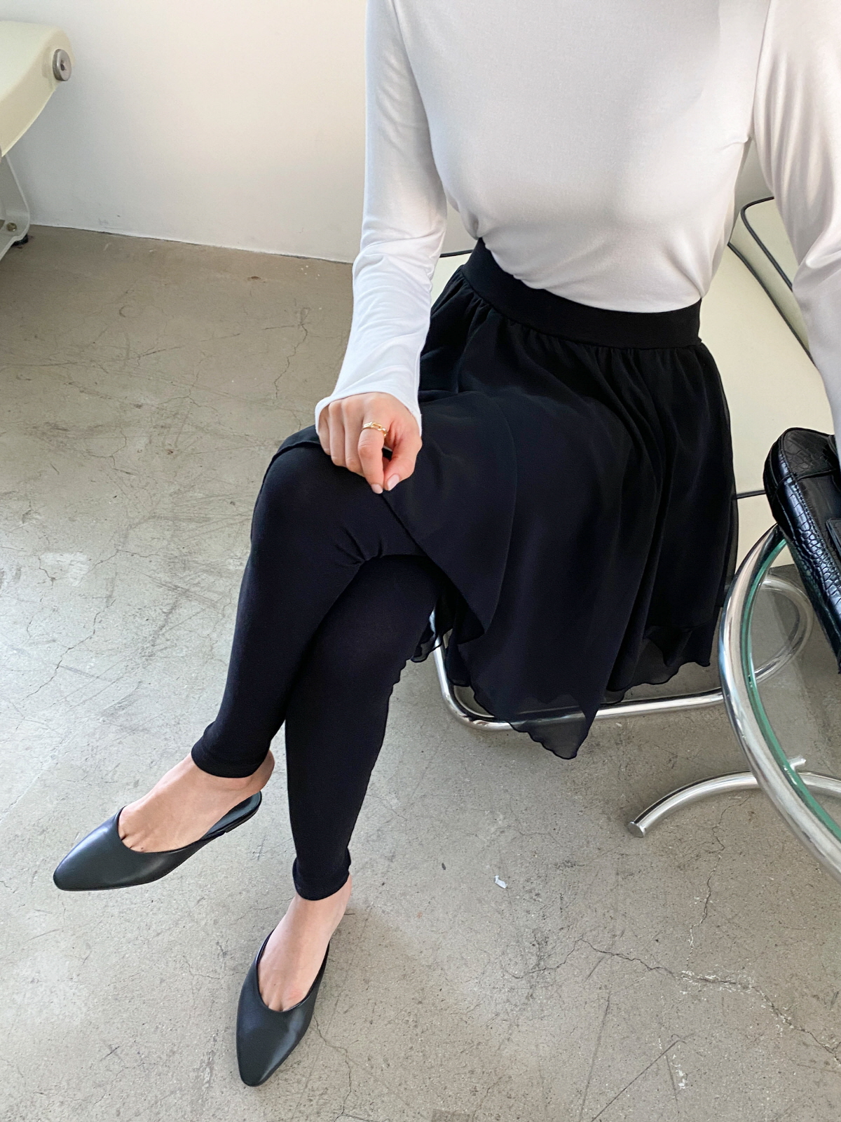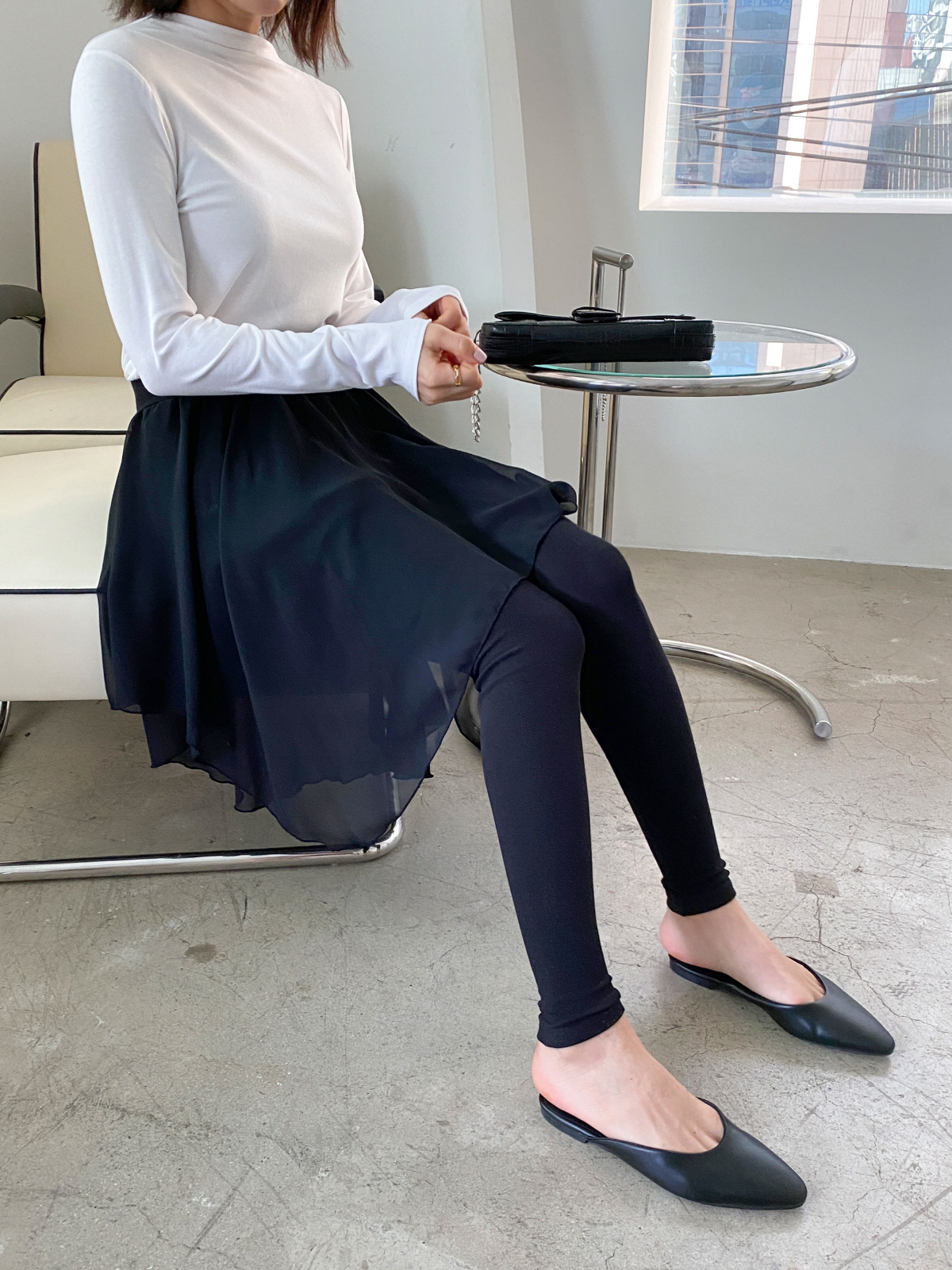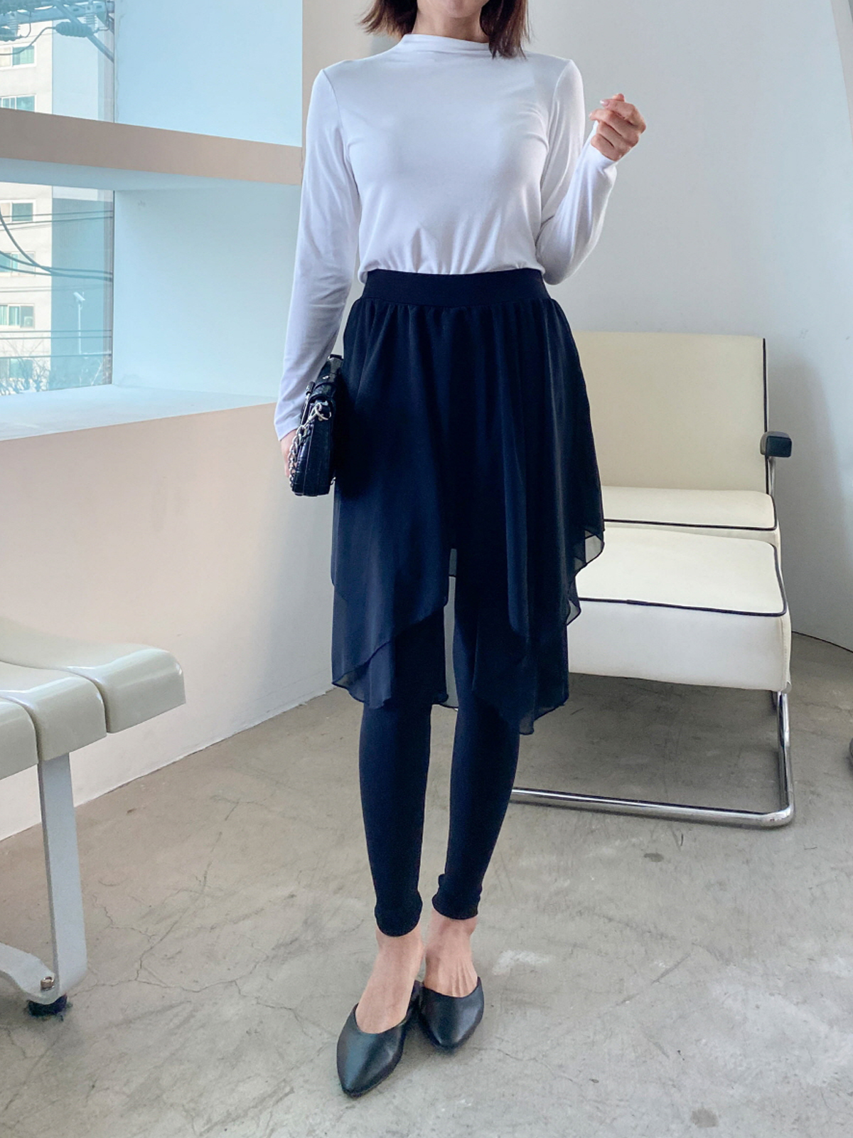 하늘하늘하고 우아한 쉬폰 스커트에 레깅스가 붙어 있어 편안하고 스타일리쉬하게 착용이 가능한 레깅스