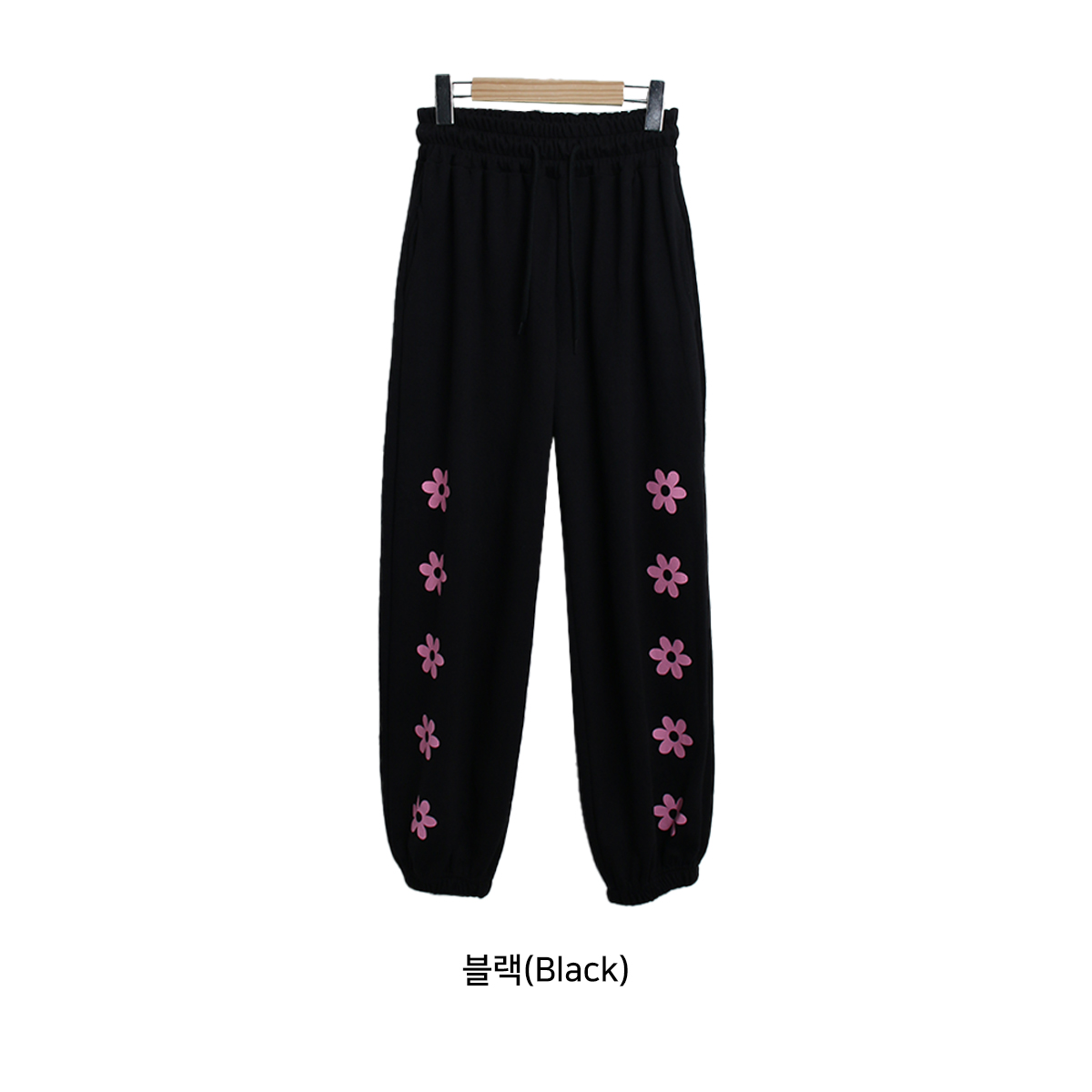 파스텔 컬러와 잘 어울리는 플라워 프린팅이 사이드에 그려져있어 포인트가 되어주는 조거 팬츠