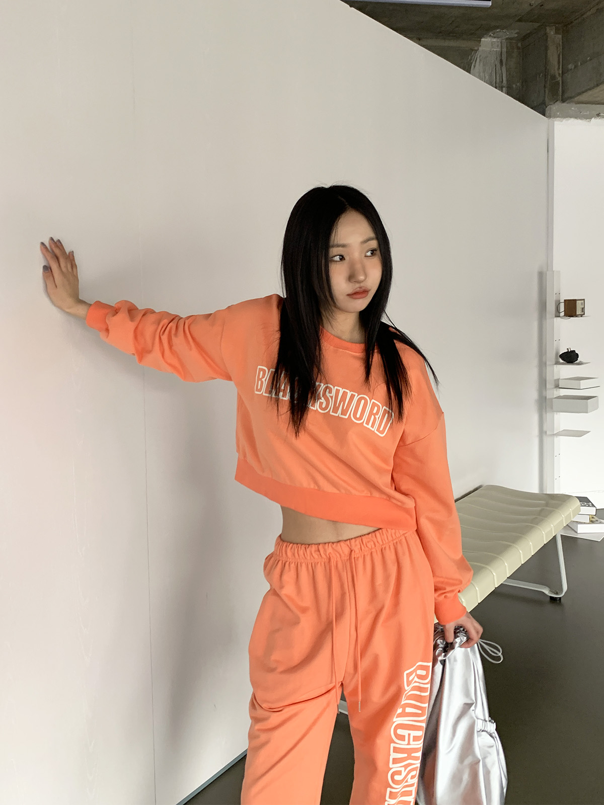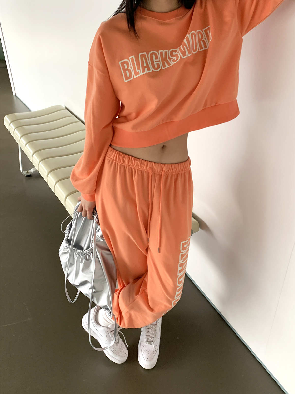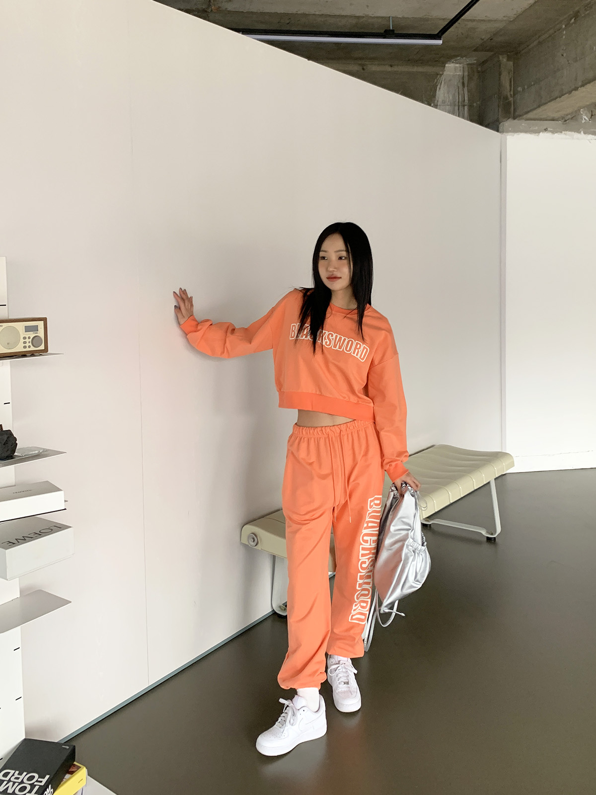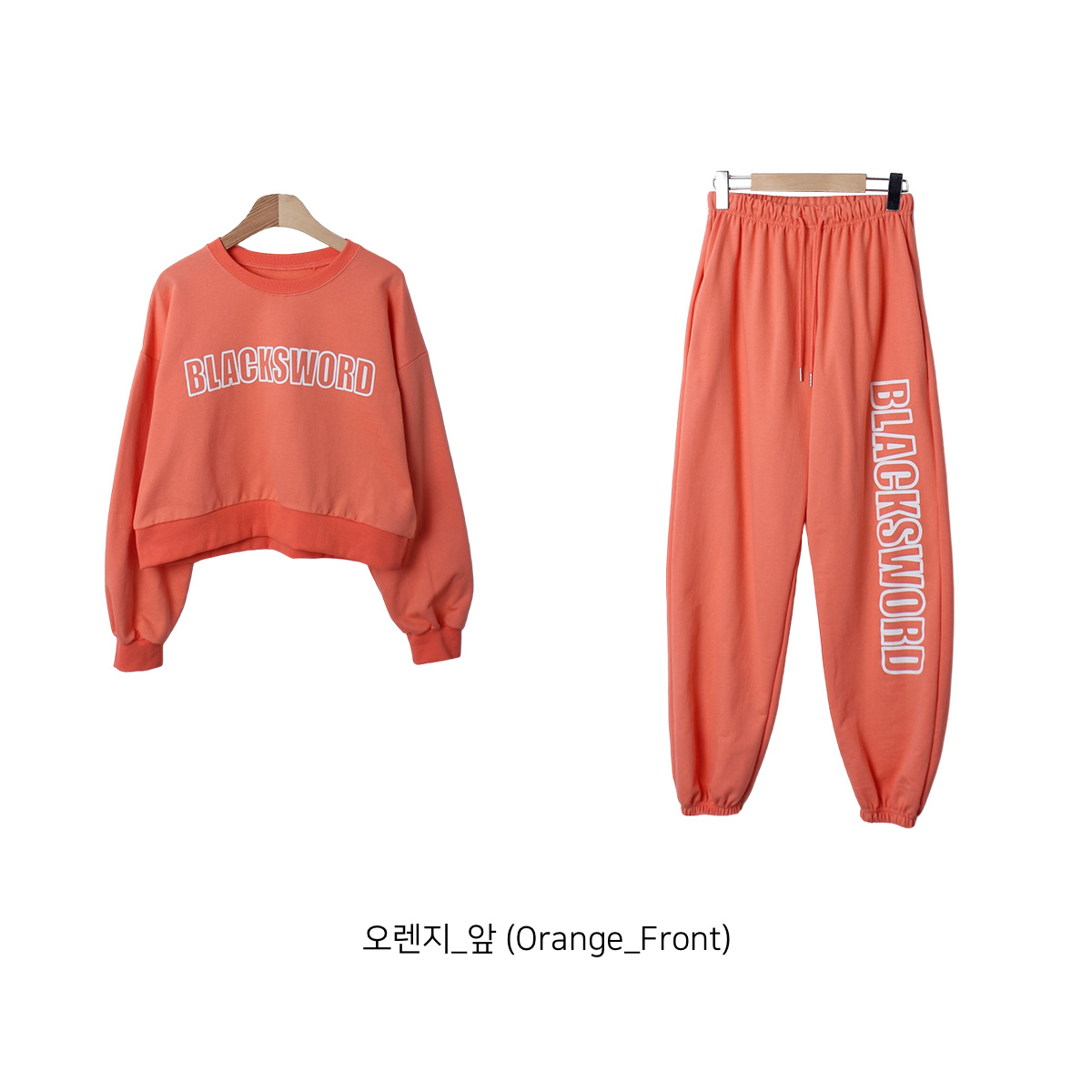 [ SET3355K42-르윅스 레터링 크롭 맨투맨 밴딩 조거 팬츠 세트 ]