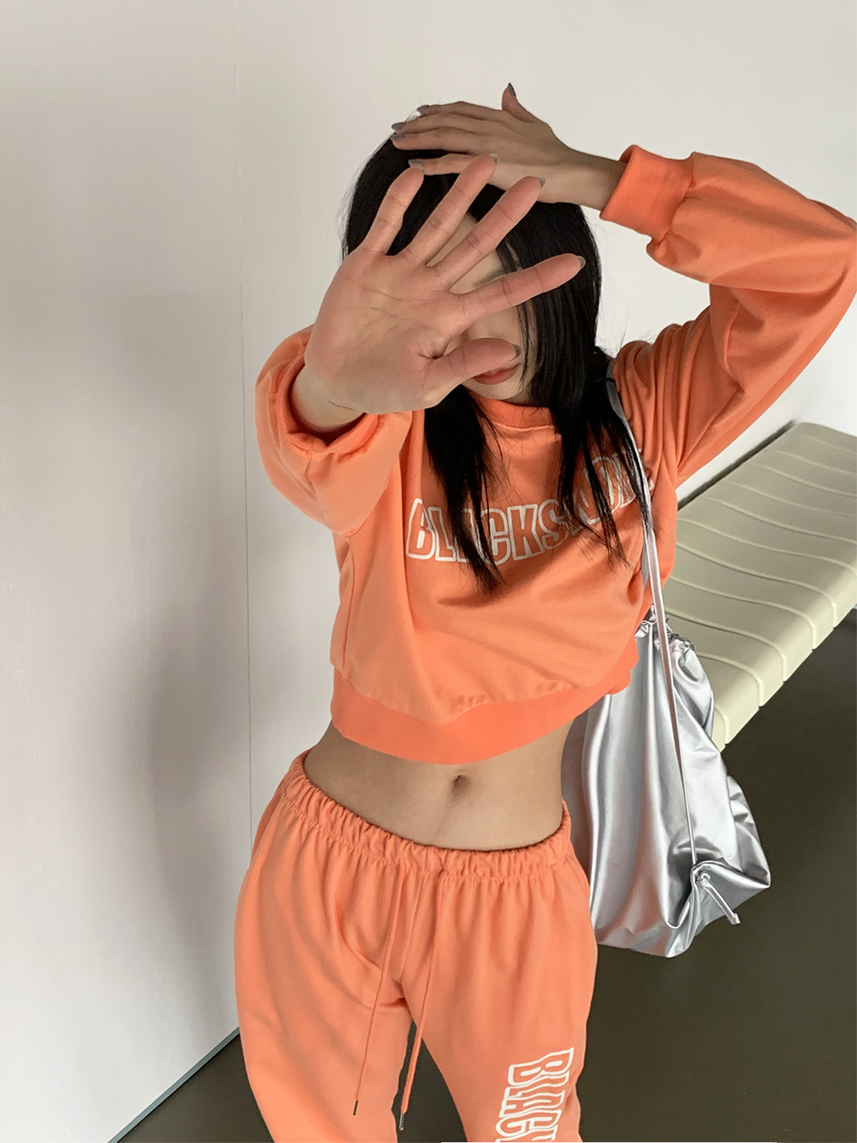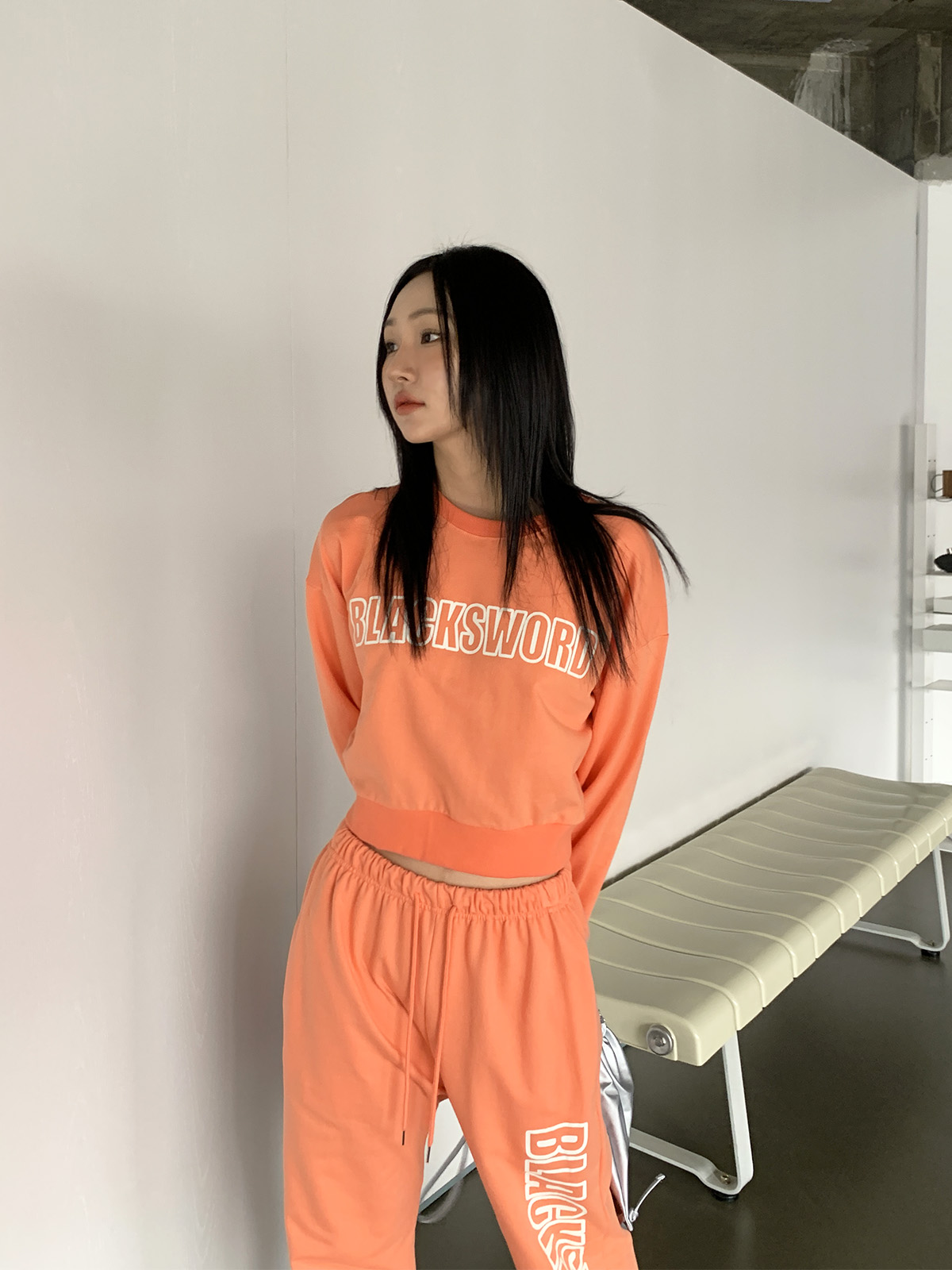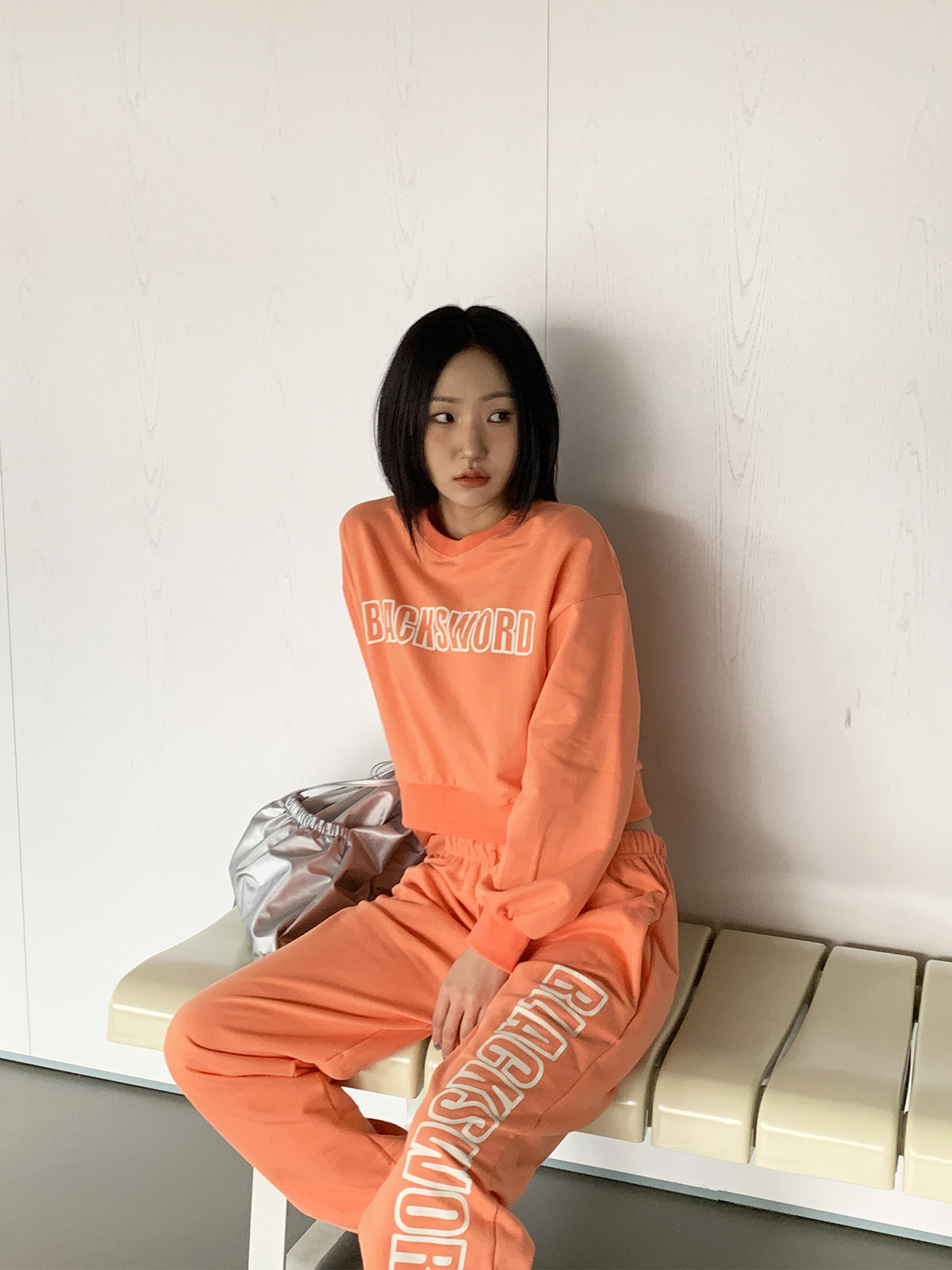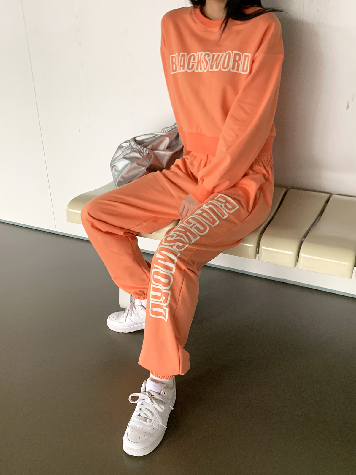 [ SET3355K42-르윅스 레터링 크롭 맨투맨 밴딩 조거 팬츠 세트 ]