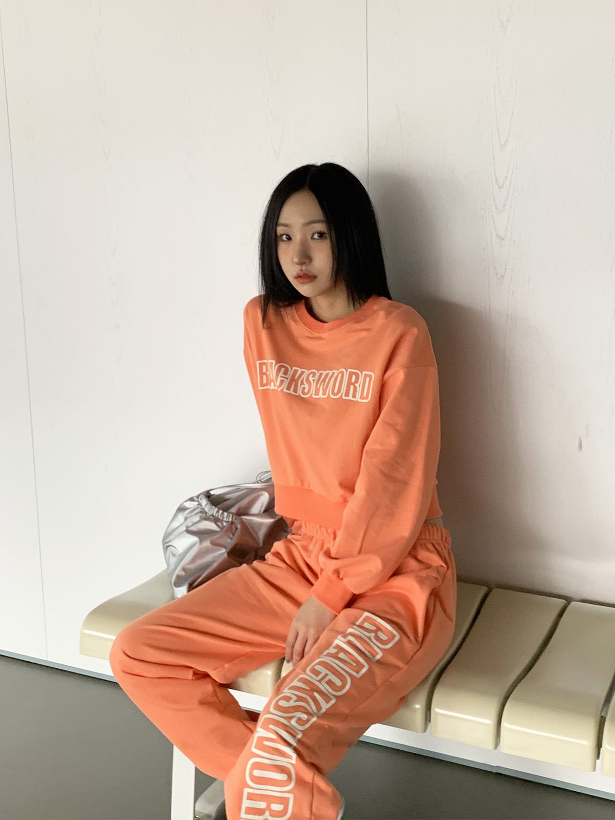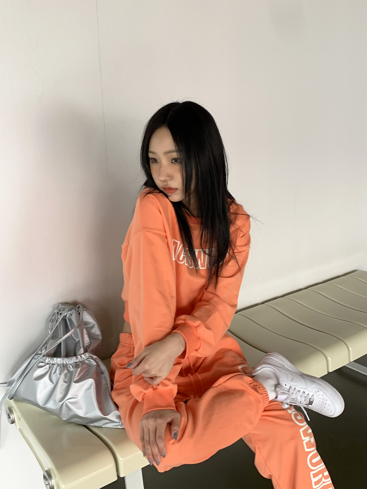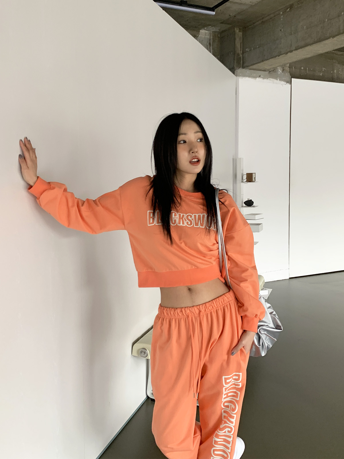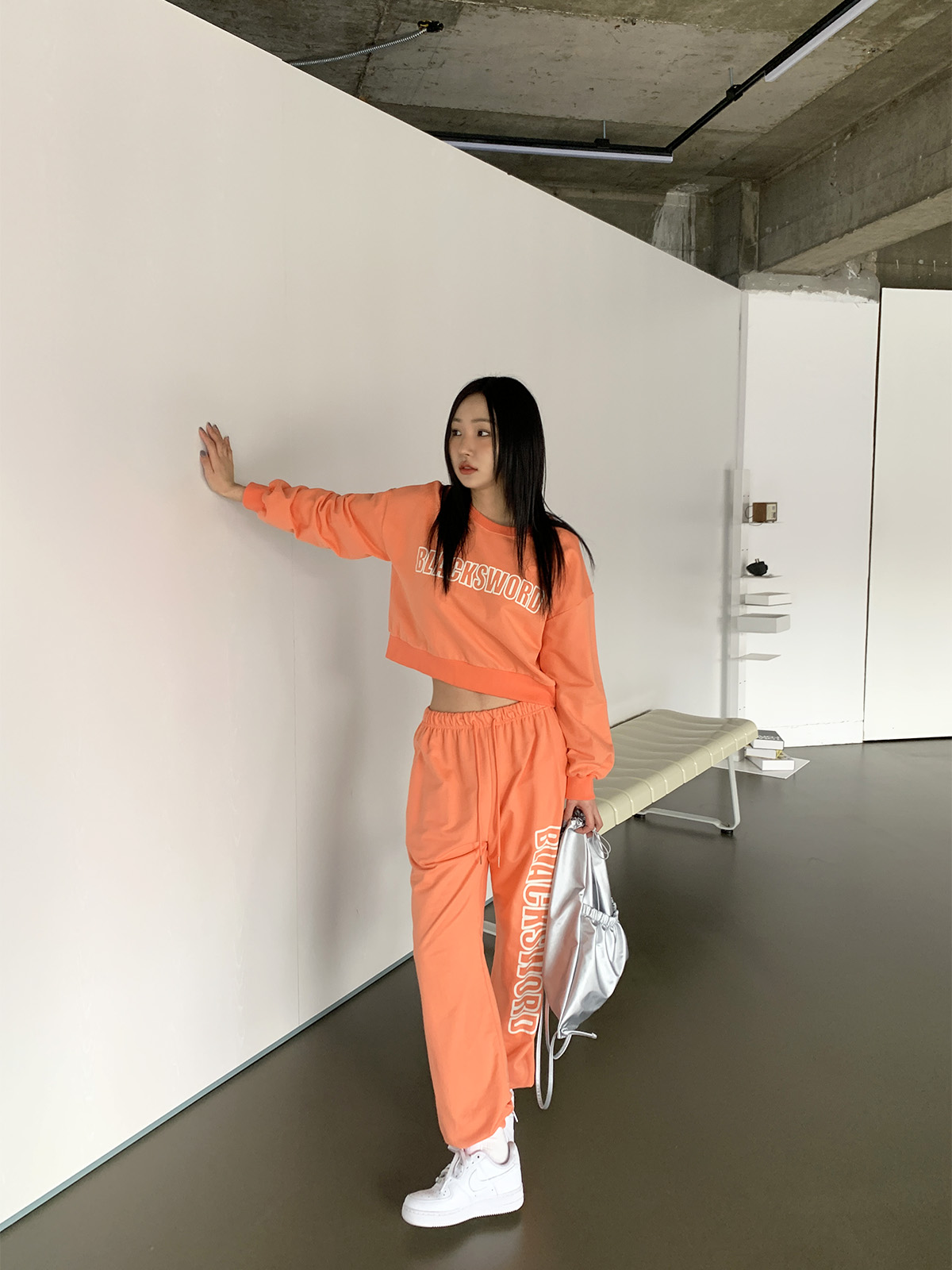 [ SET3355K42-르윅스 레터링 크롭 맨투맨 밴딩 조거 팬츠 세트 ]
