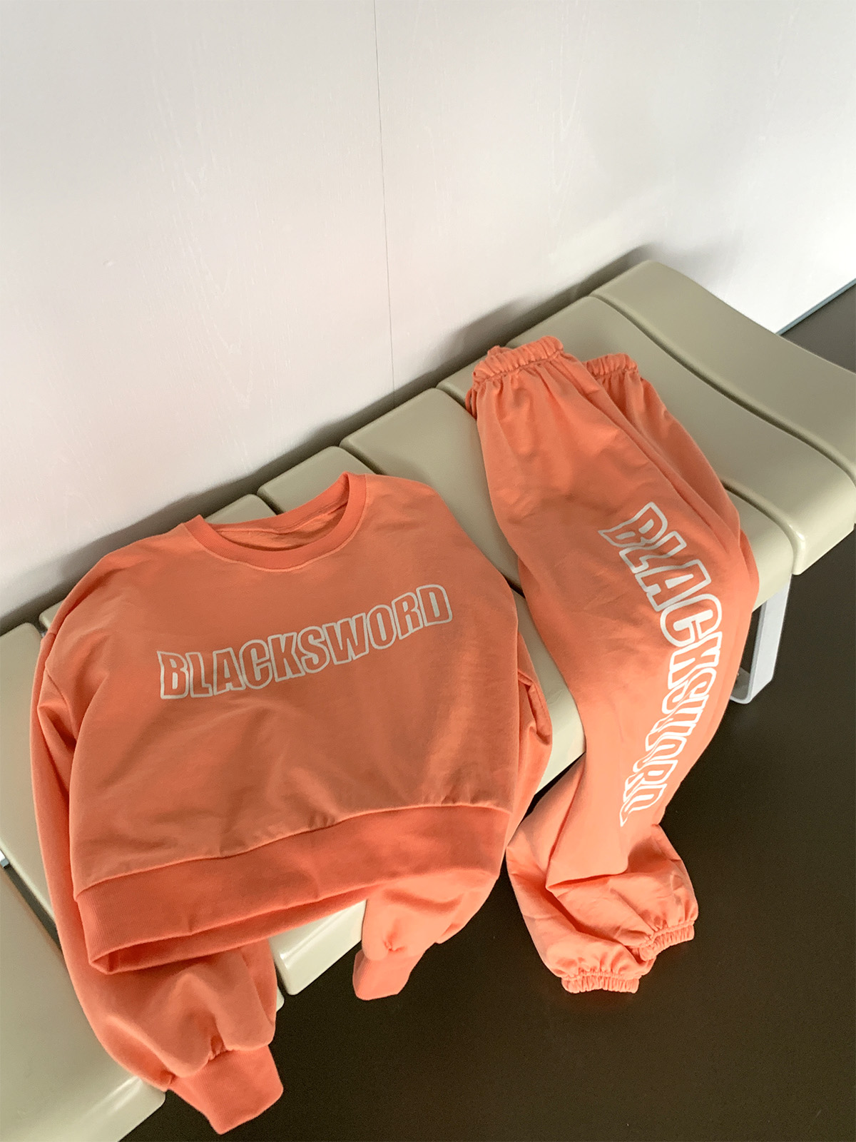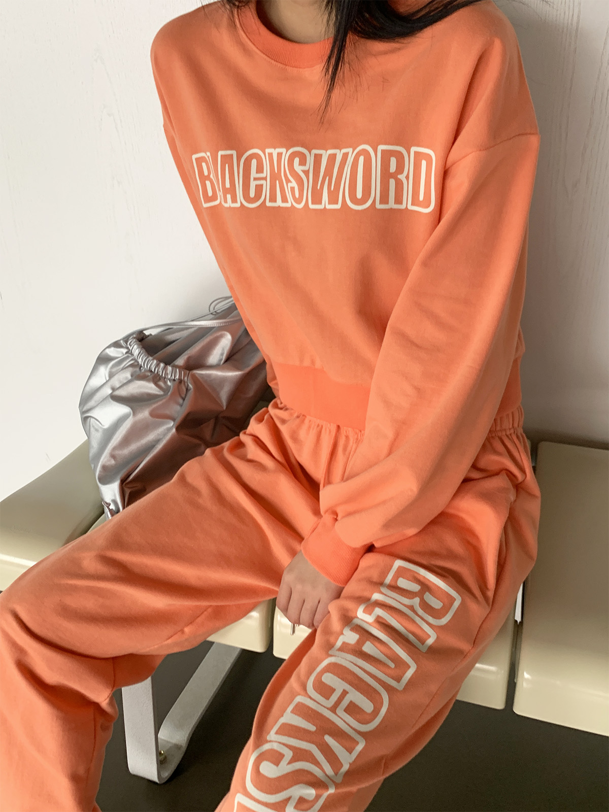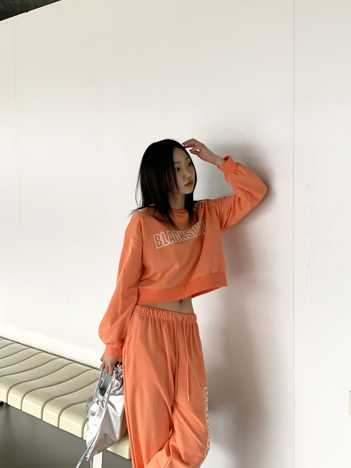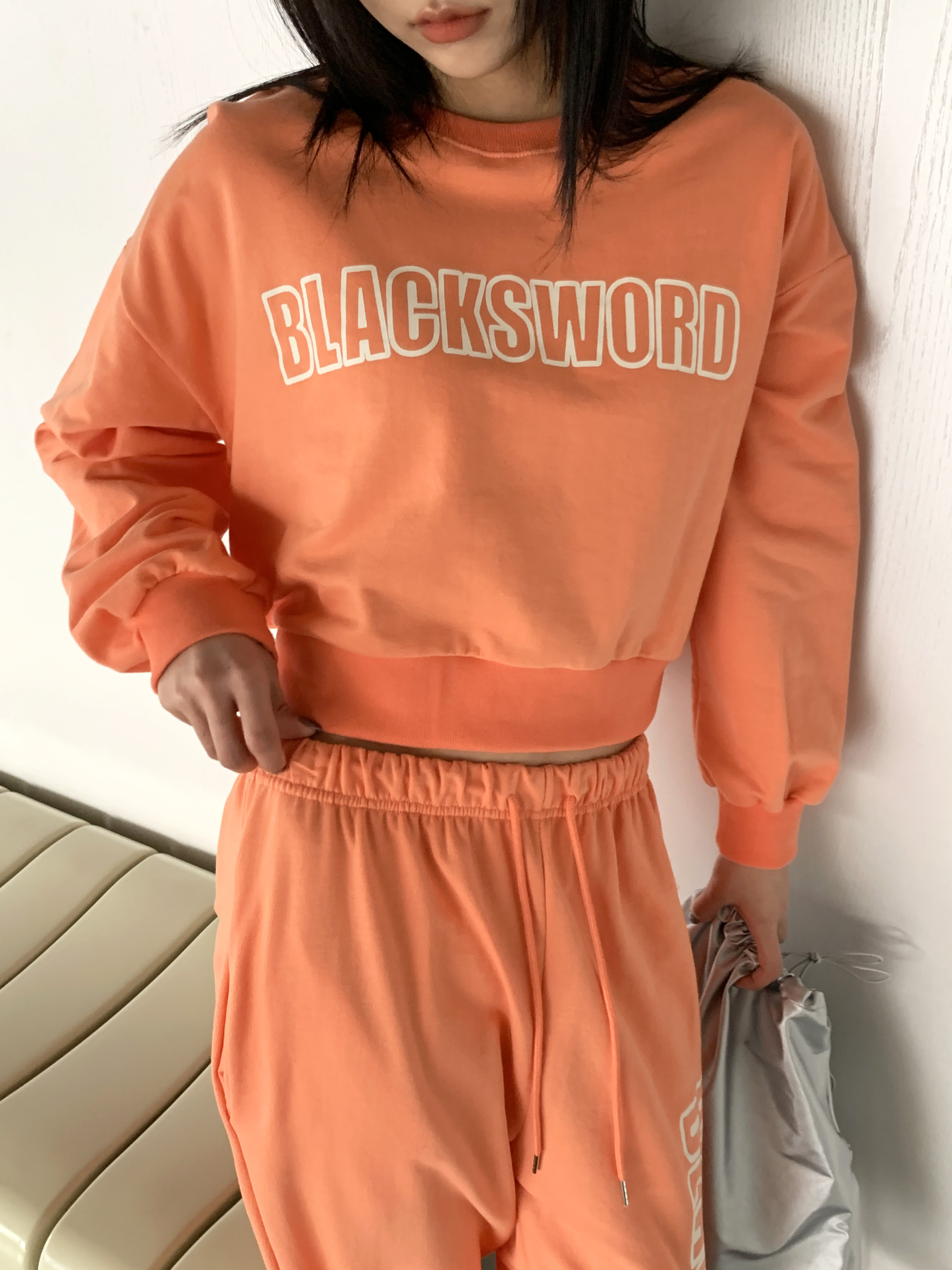 [ SET3355K42-르윅스 레터링 크롭 맨투맨 밴딩 조거 팬츠 세트 ]
