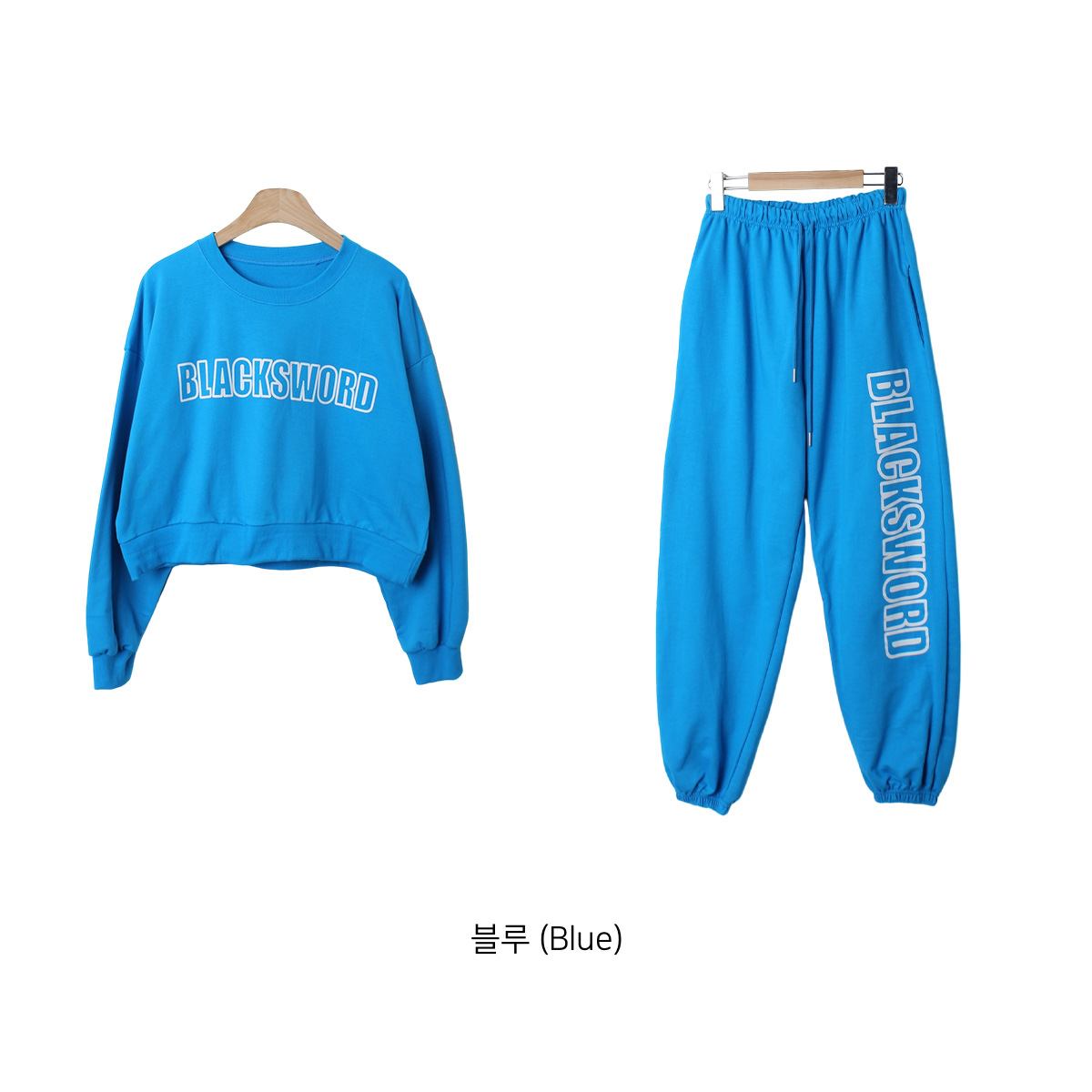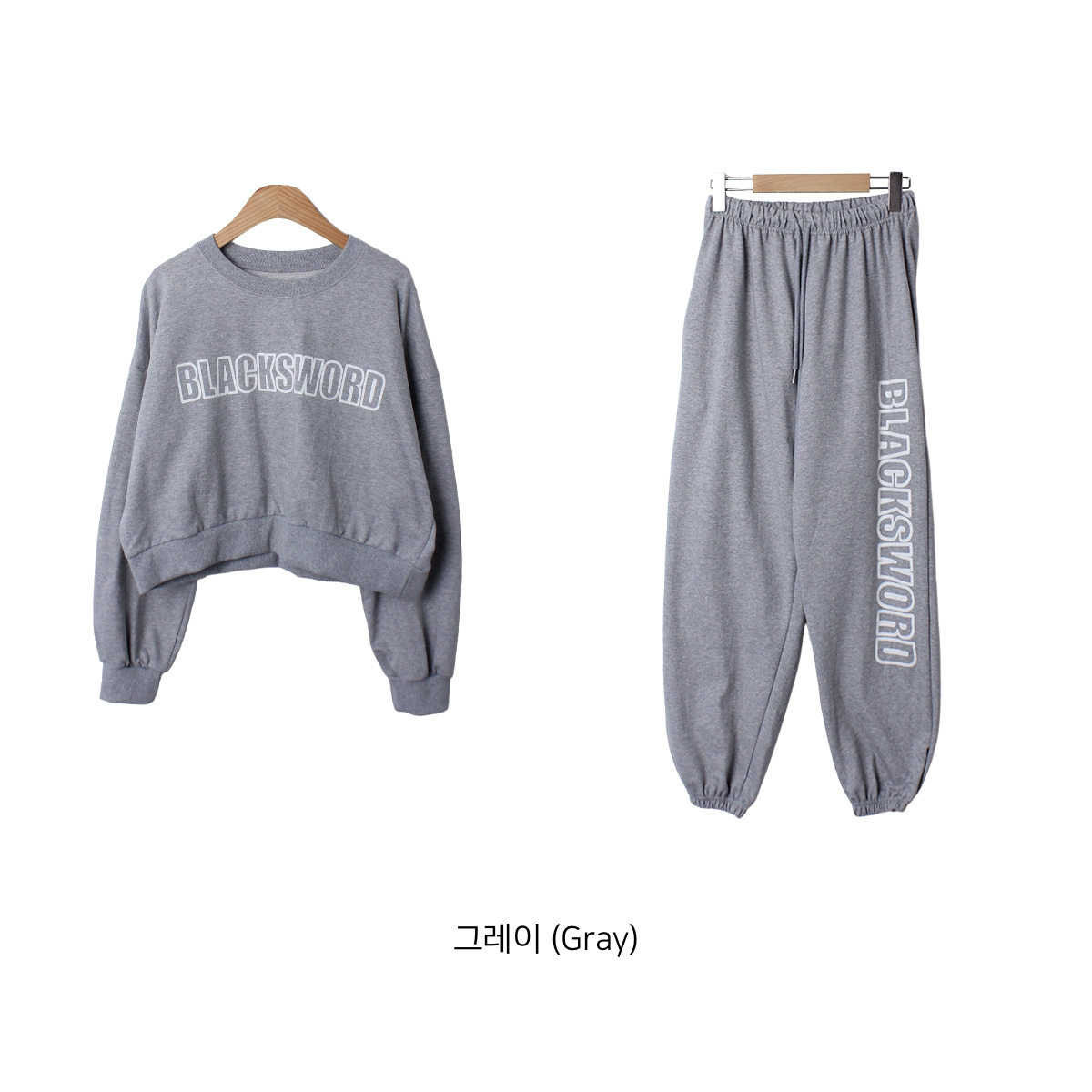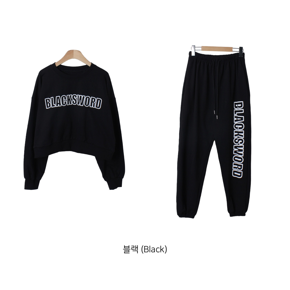 SET3355K42-르윅스 레터링 크롭 맨투맨 밴딩 조거 팬츠 세트