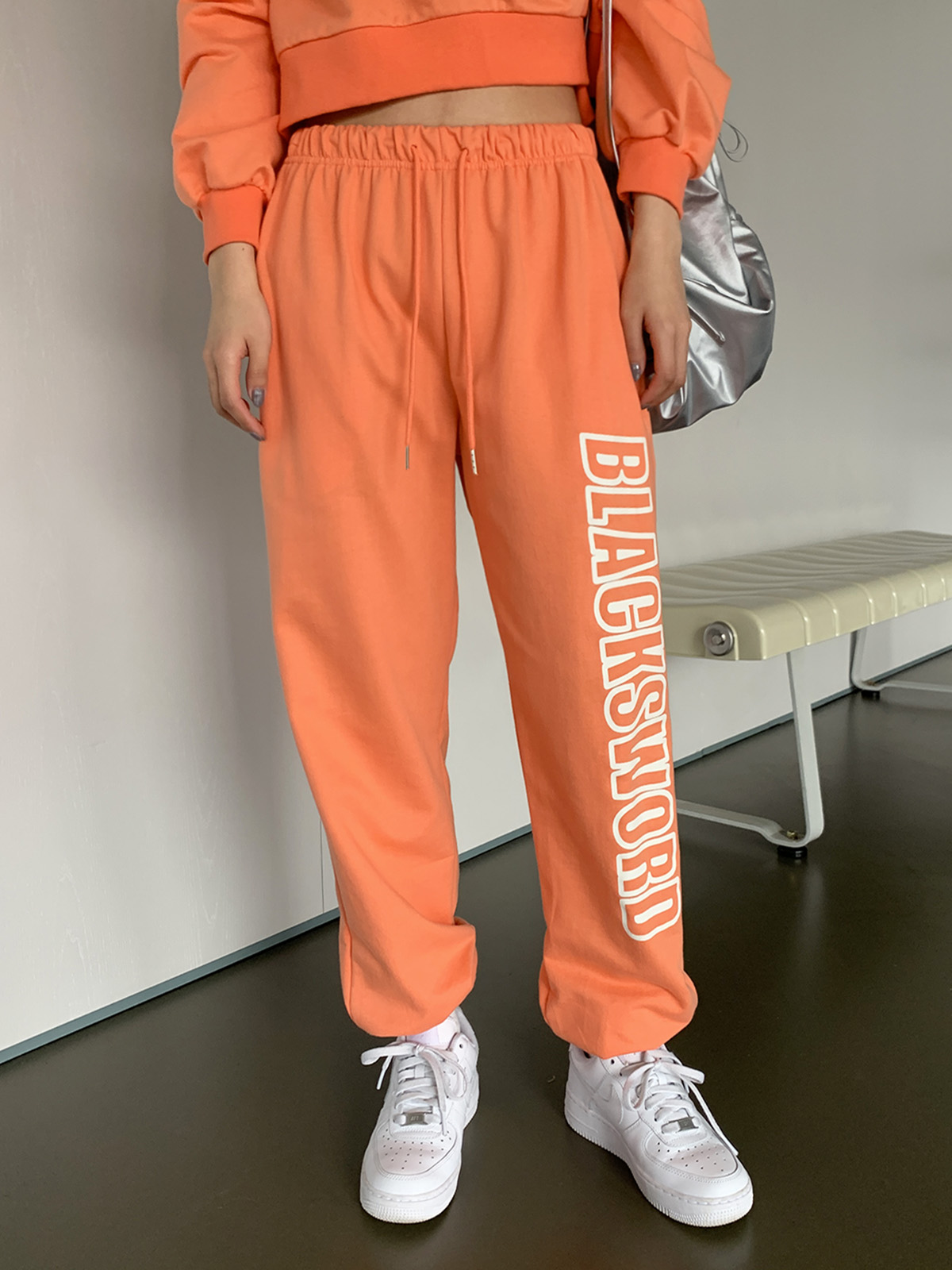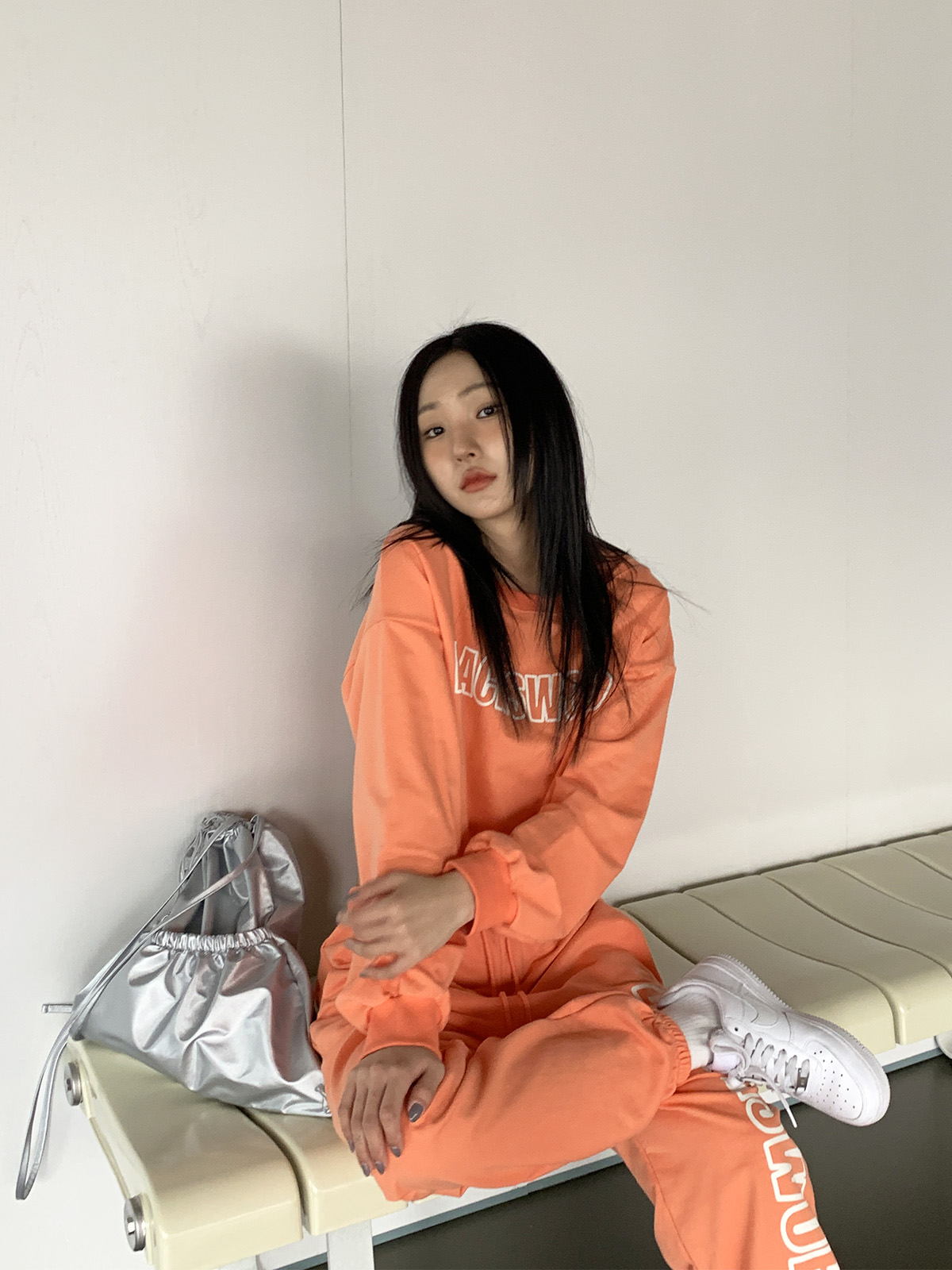 상하의 레터링이 크게 들어가 밋밋하지 않게 입을 수 있는 셋업 상품으로,