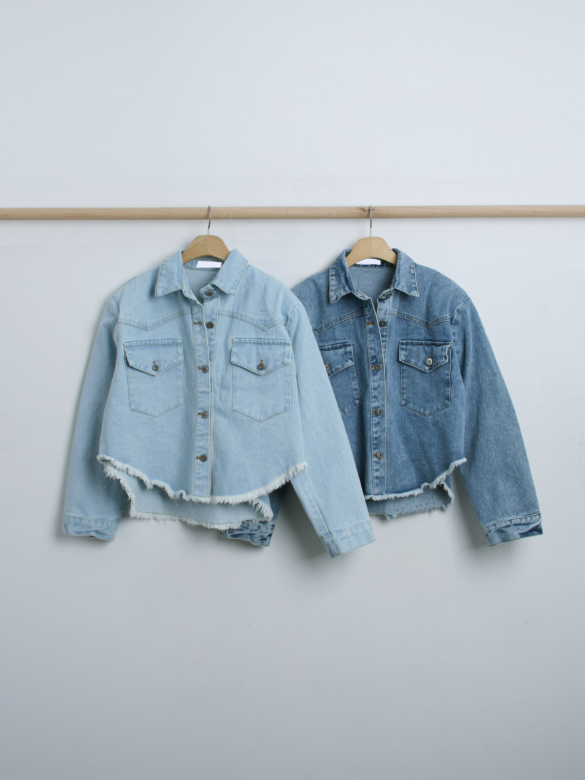 JK5585K42-메일르 빈티지 컷팅 언발 세미 크롭 청자켓