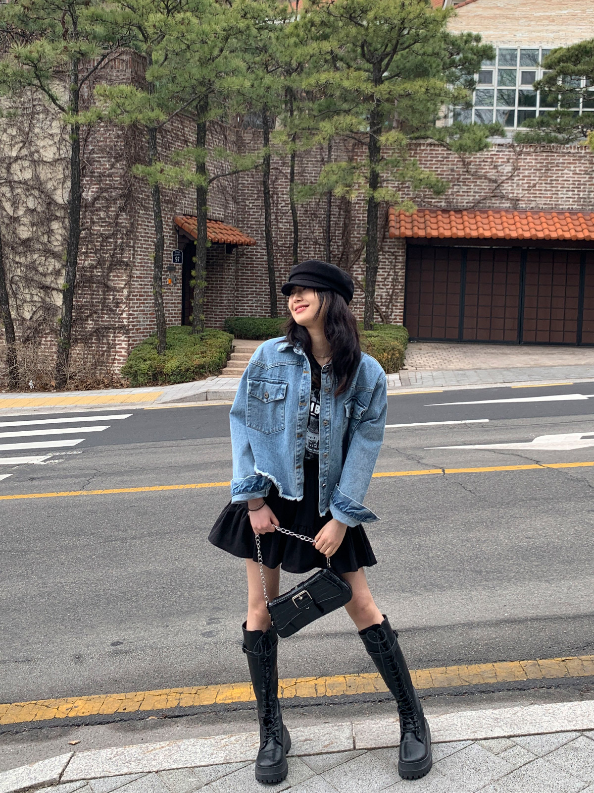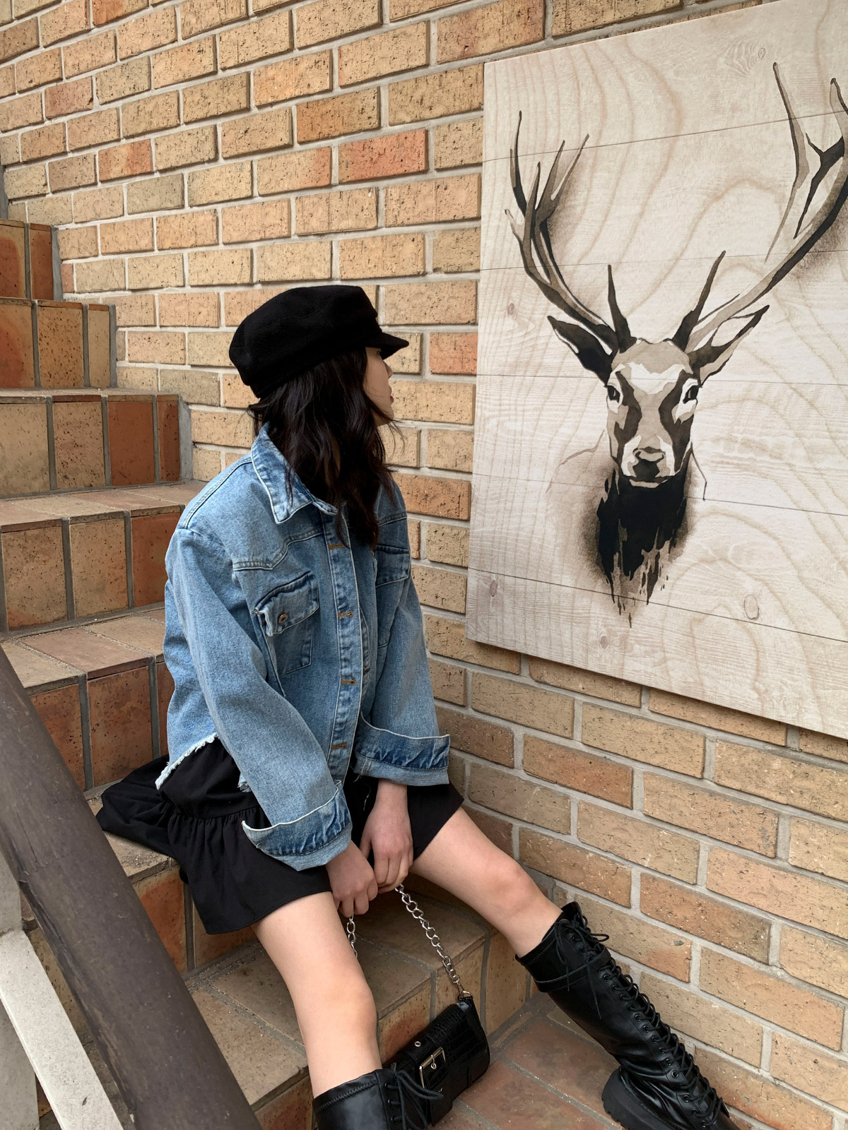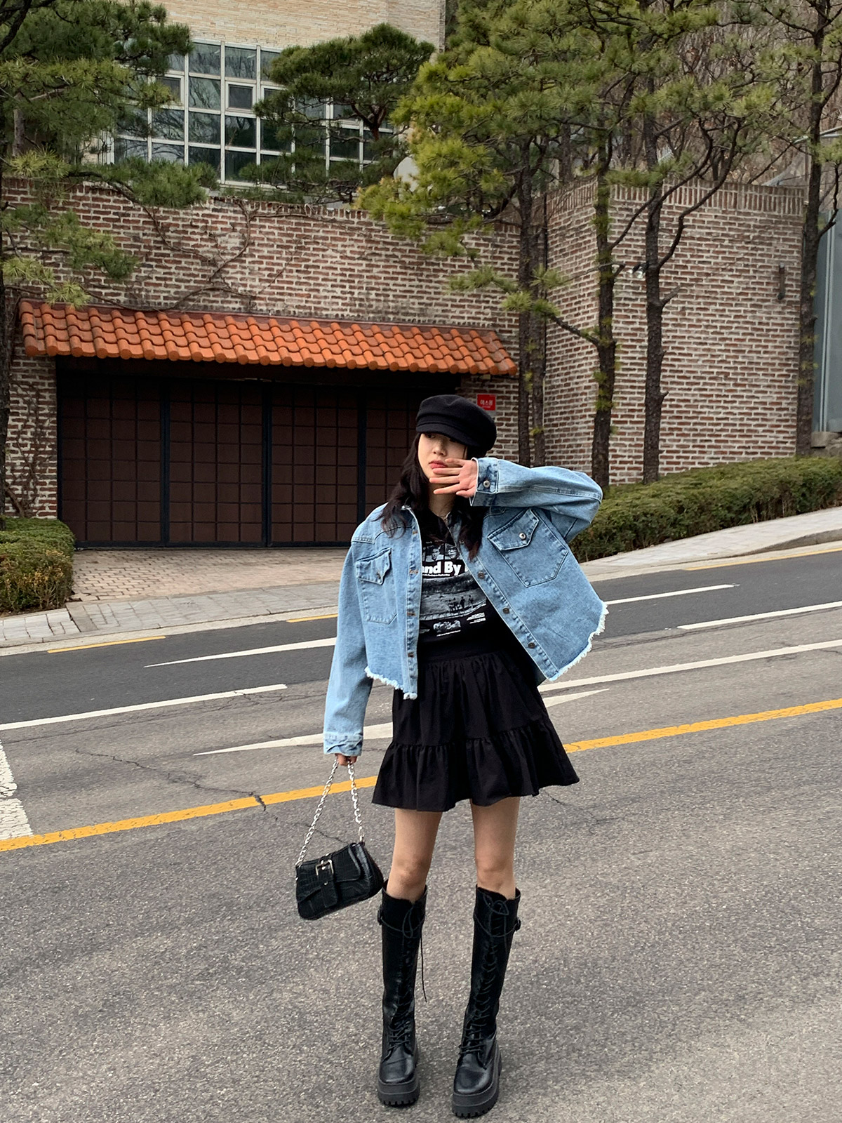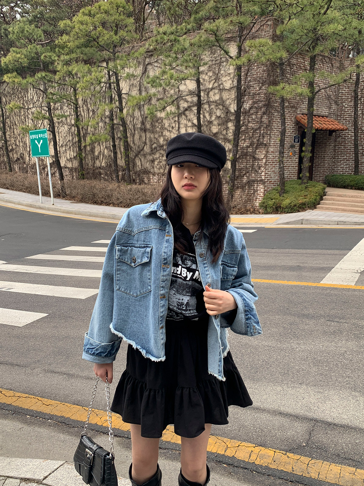 빈티지한 디자인의 세미 크롭 기장으로 룩을 스타일리쉬하게 연출하기 좋은 청자켓 추천해드려요~!