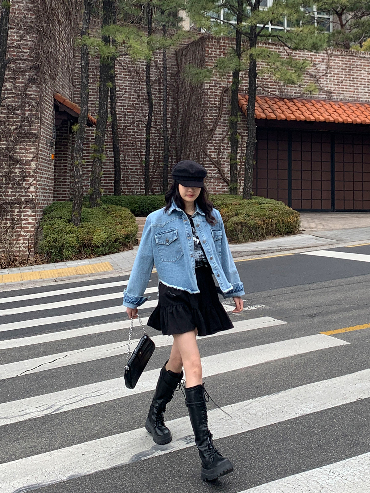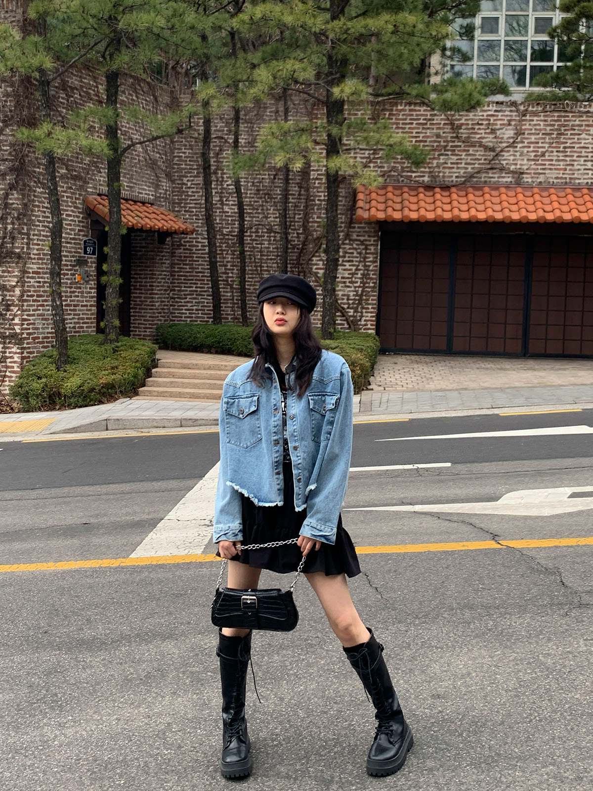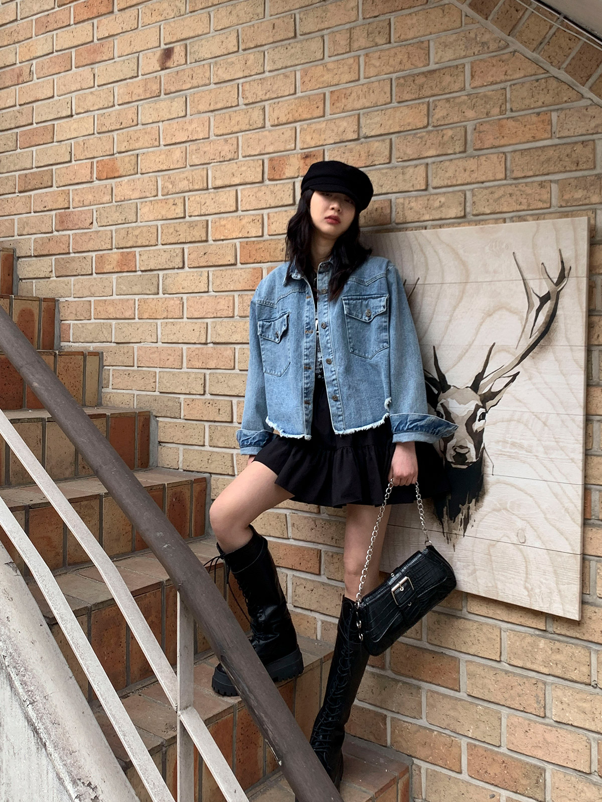 빈티지한 디자인의 세미 크롭 기장으로 룩을 스타일리쉬하게 연출하기 좋은 청자켓 추천해드려요~!