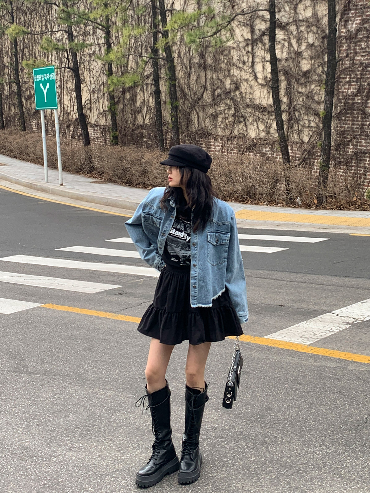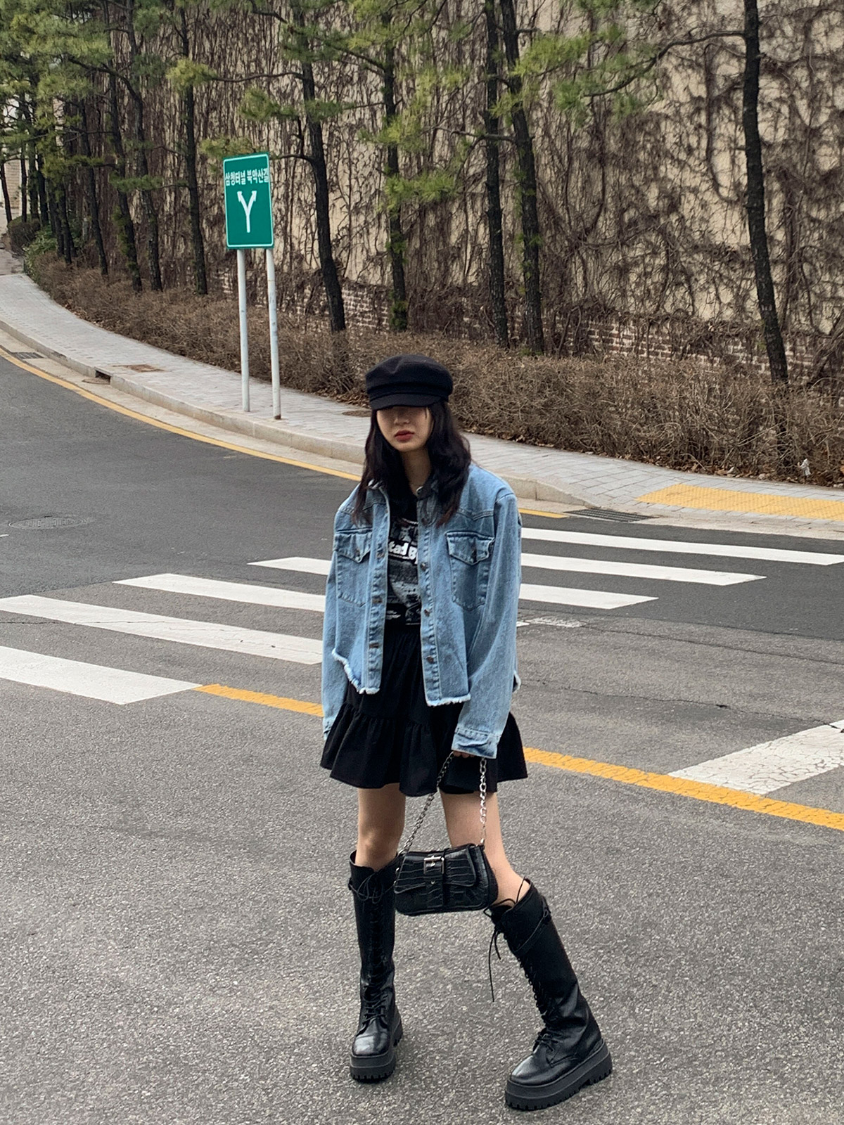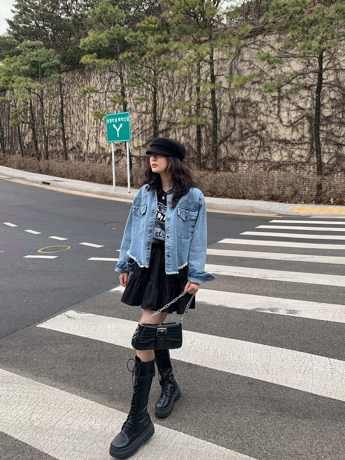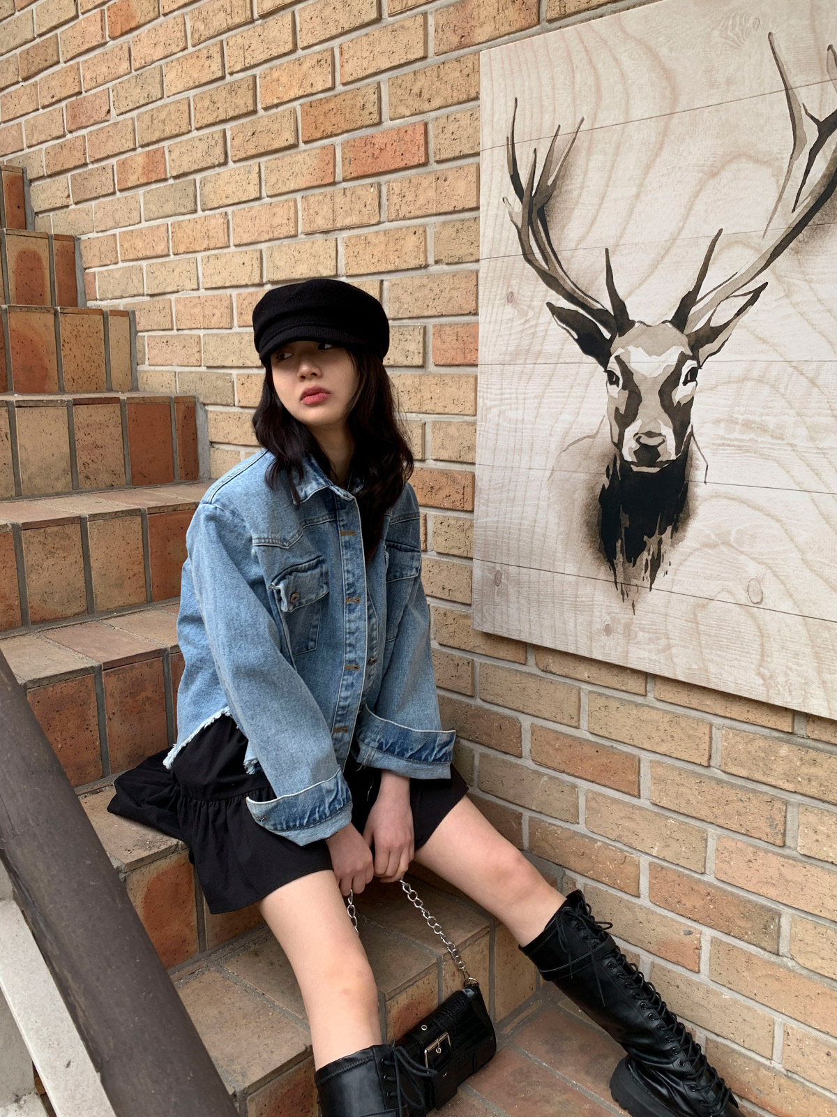 빈티지한 디자인의 세미 크롭 기장으로 룩을 스타일리쉬하게 연출하기 좋은 청자켓 추천해드려요~!