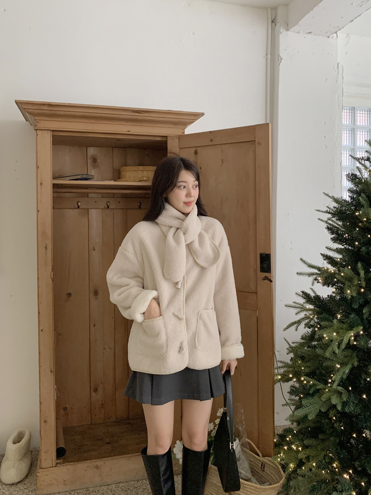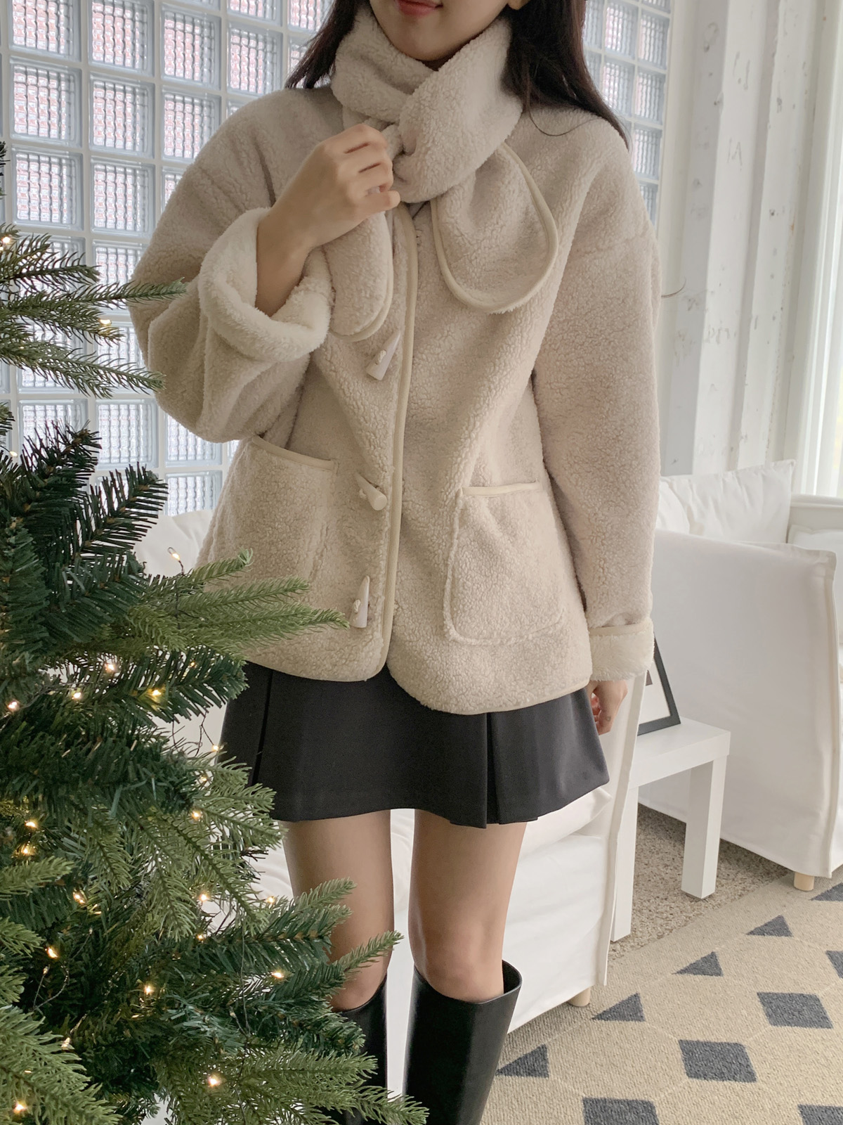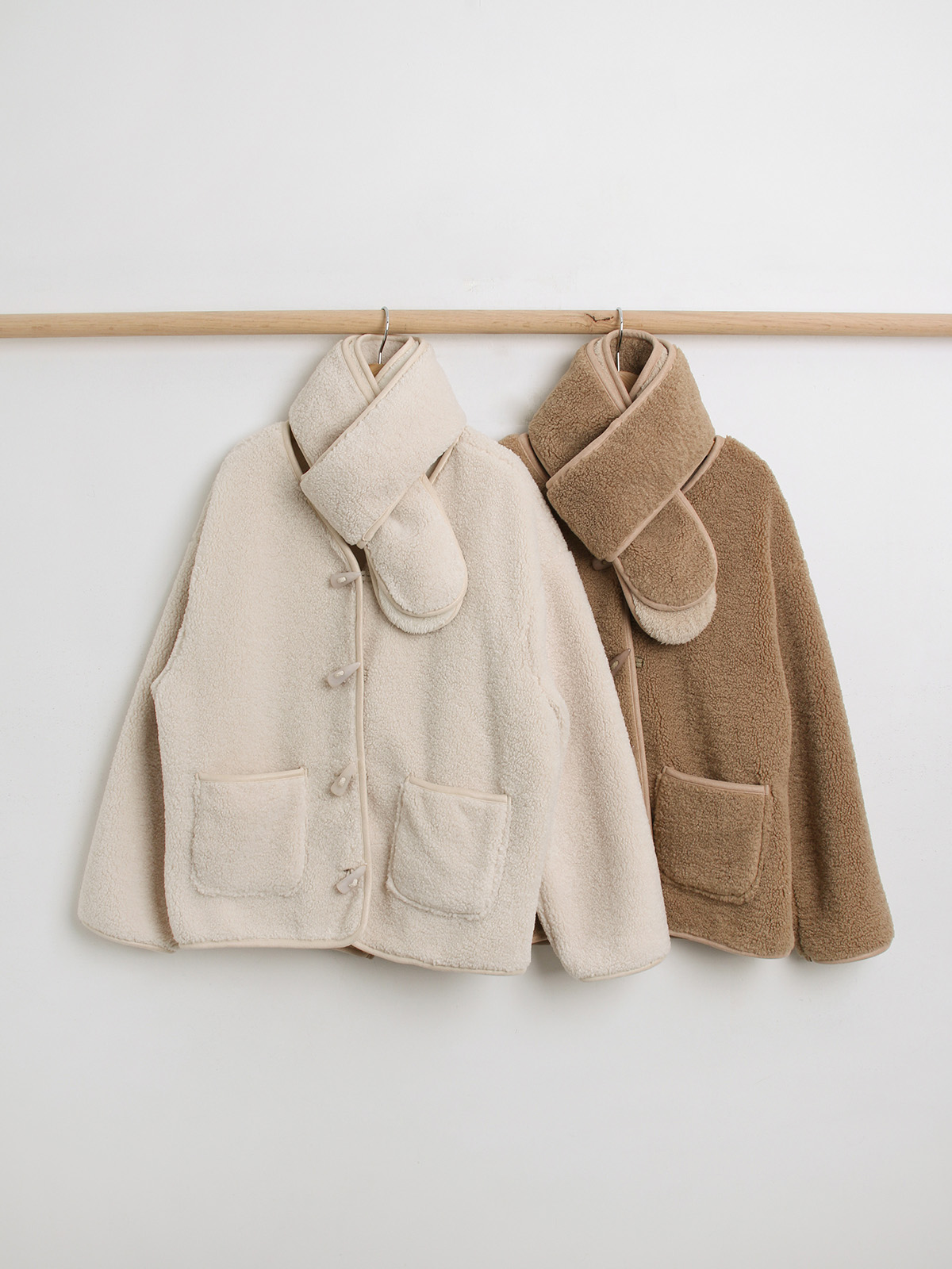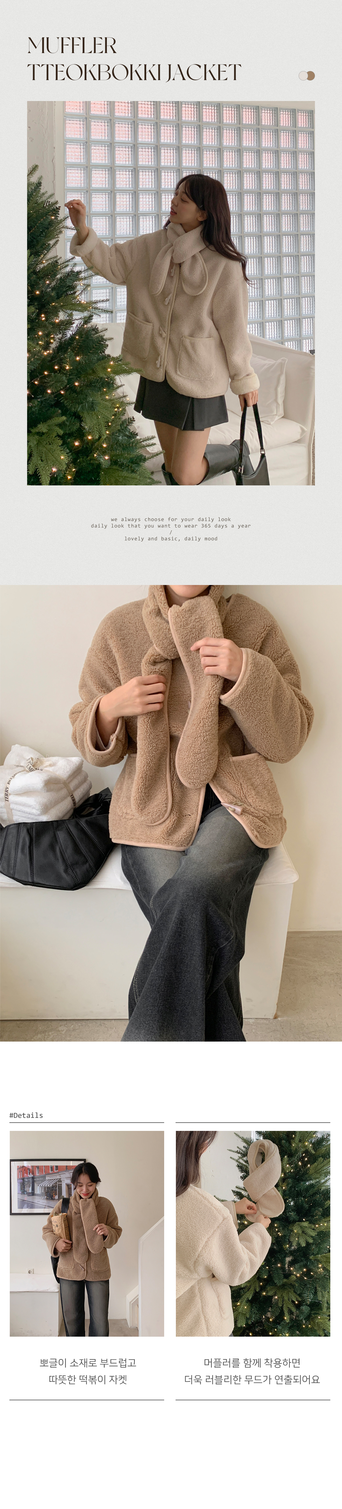 부드럽고 따뜻한 털 안감이 들어가며 머플러와 함께 착용해 귀엽고 러블리한 무드 연출이 가능한 떡볶이 자켓