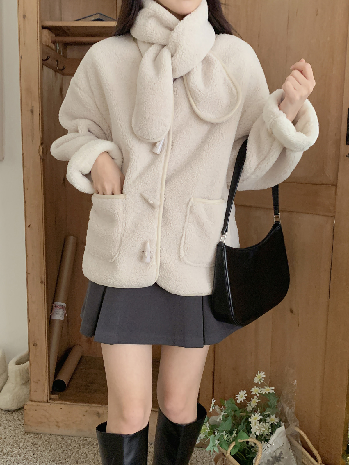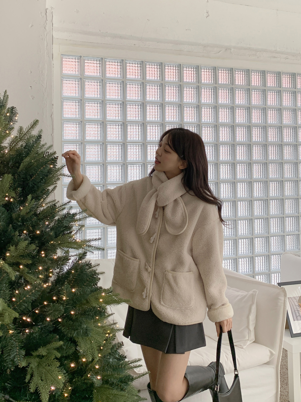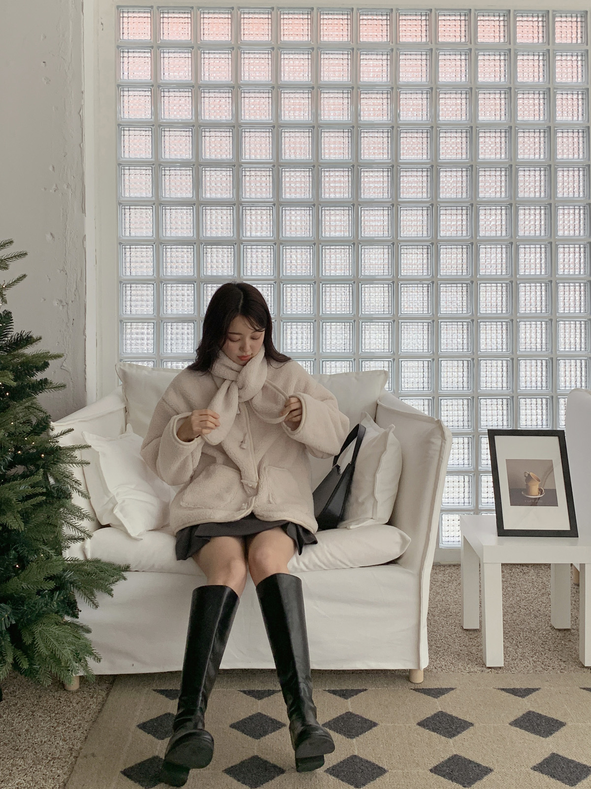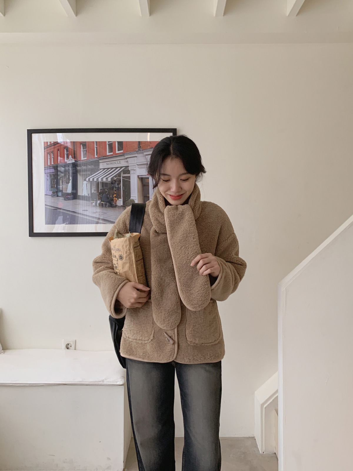 부드럽고 따뜻한 털 안감이 들어가며 머플러와 함께 착용해 귀엽고 러블리한 무드 연출이 가능한 떡볶이 자켓