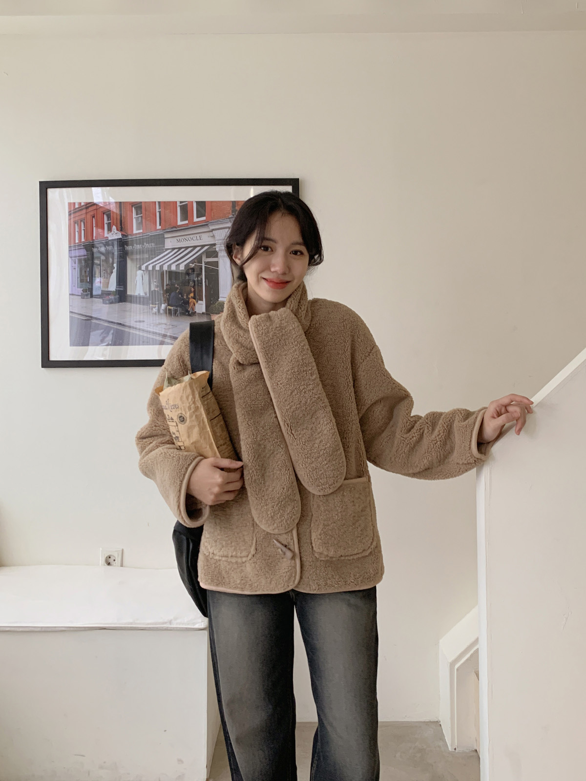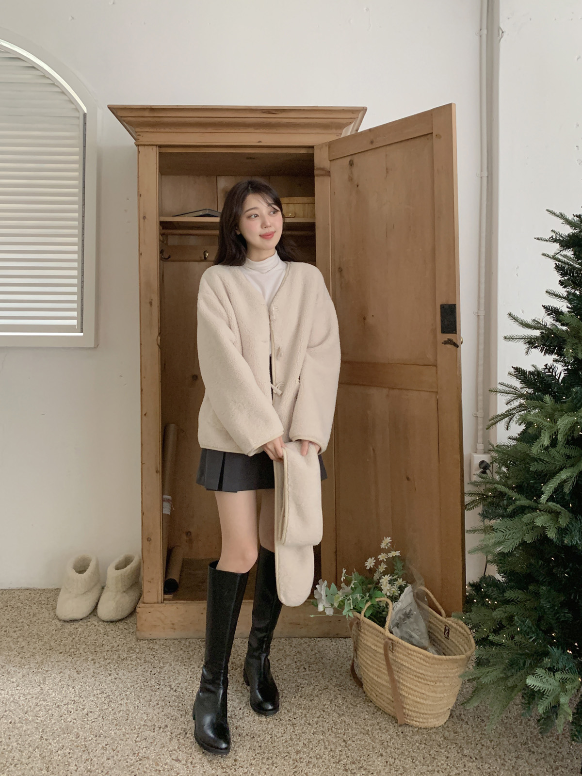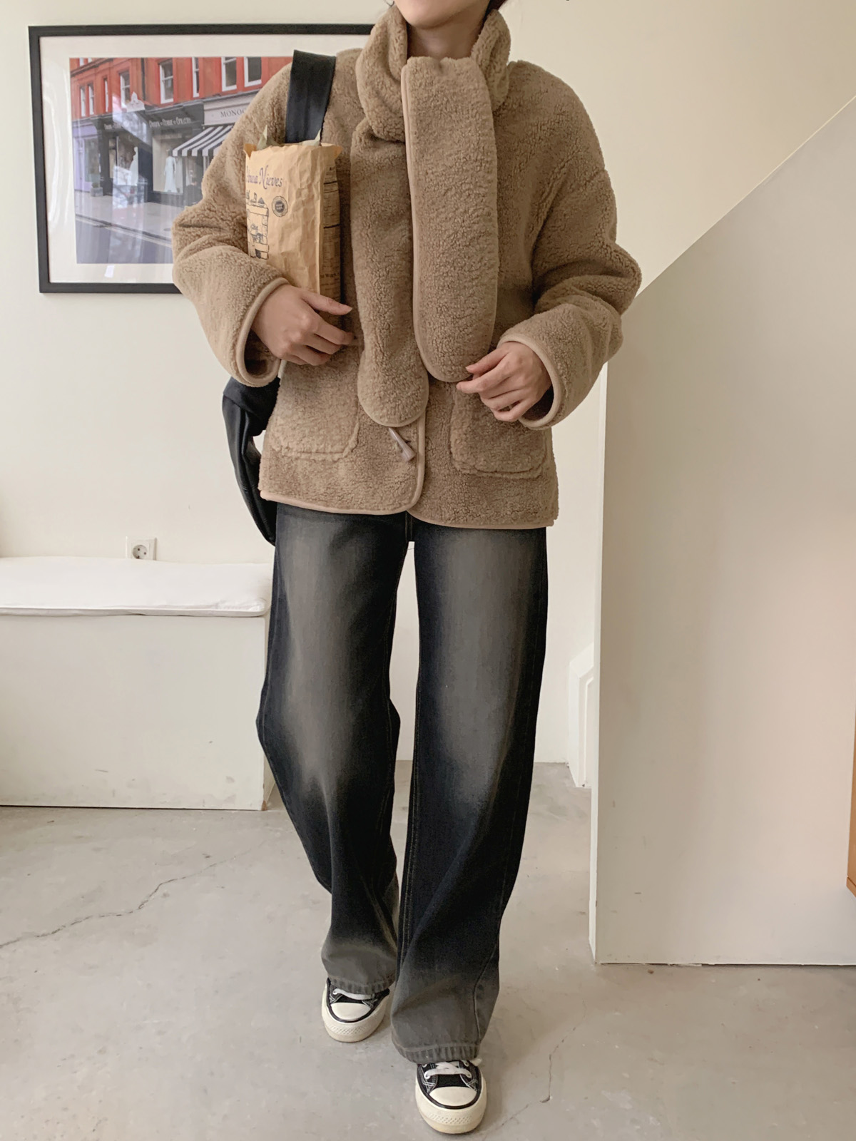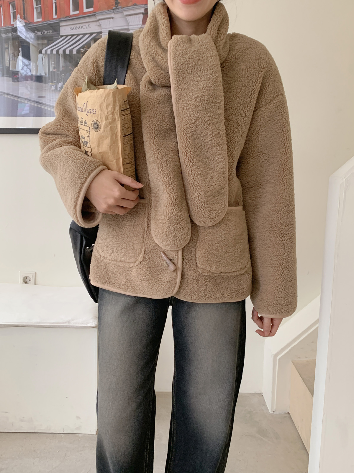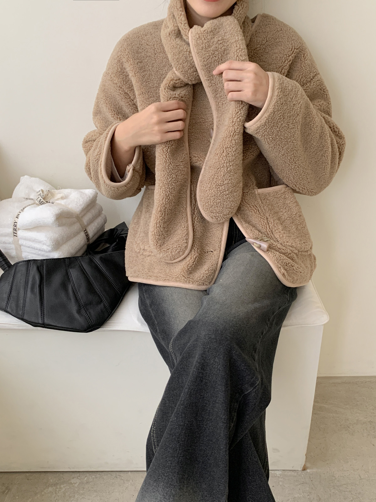 [ JK5481K3C-헤온트 브이넥 뽀글이 머플러 떡볶이 자 ]