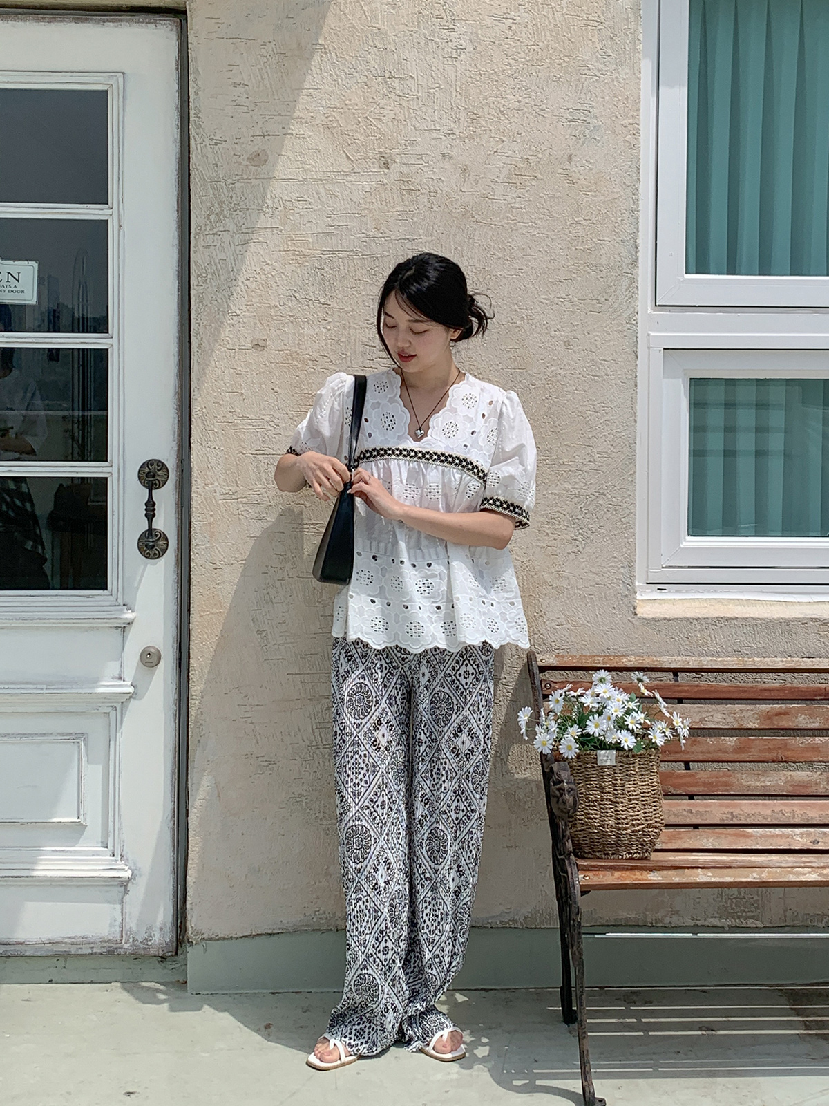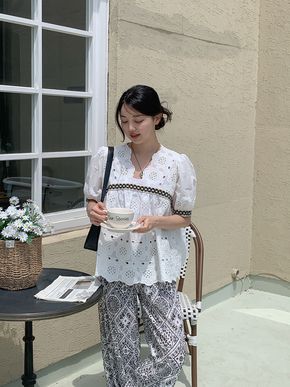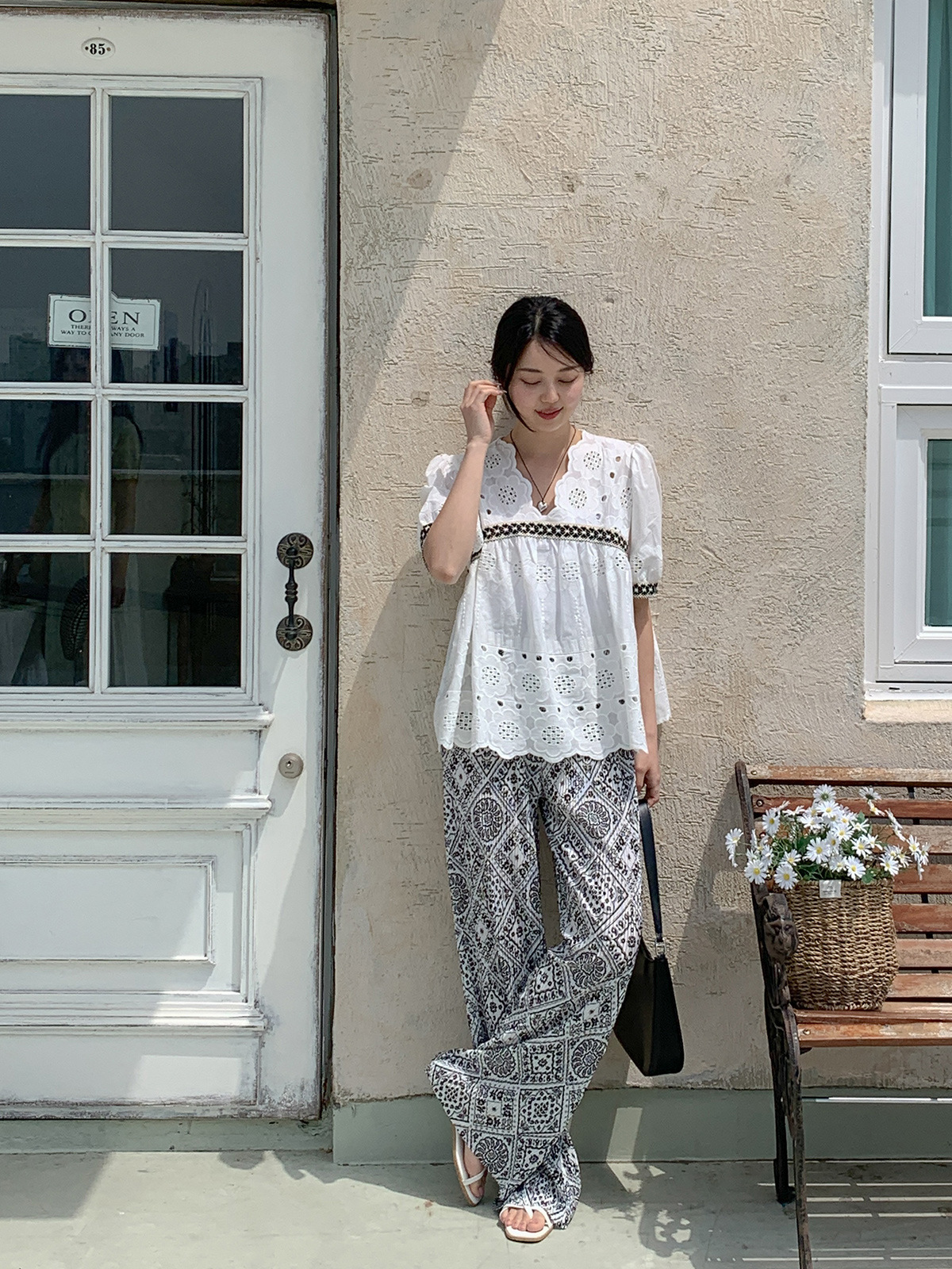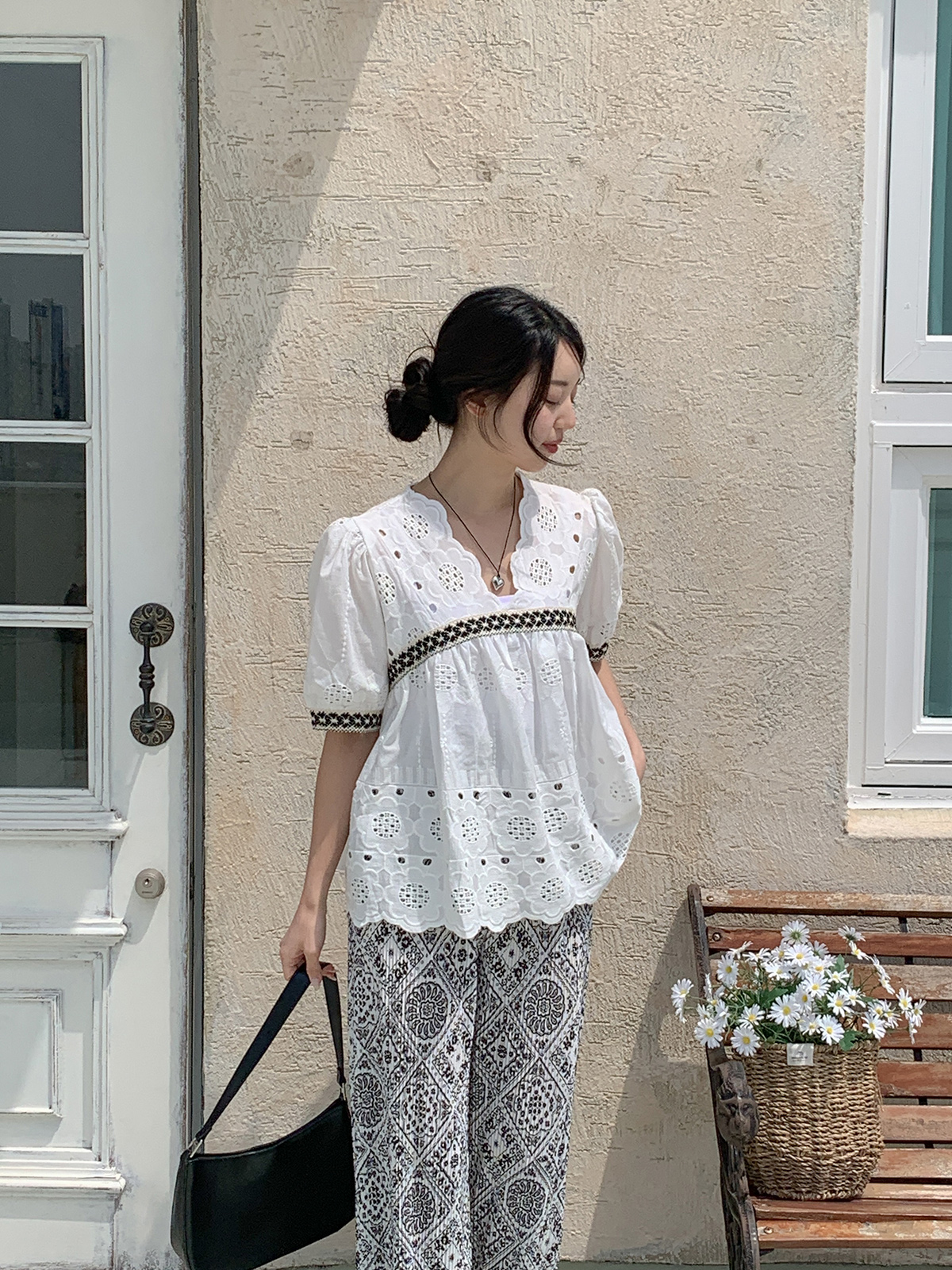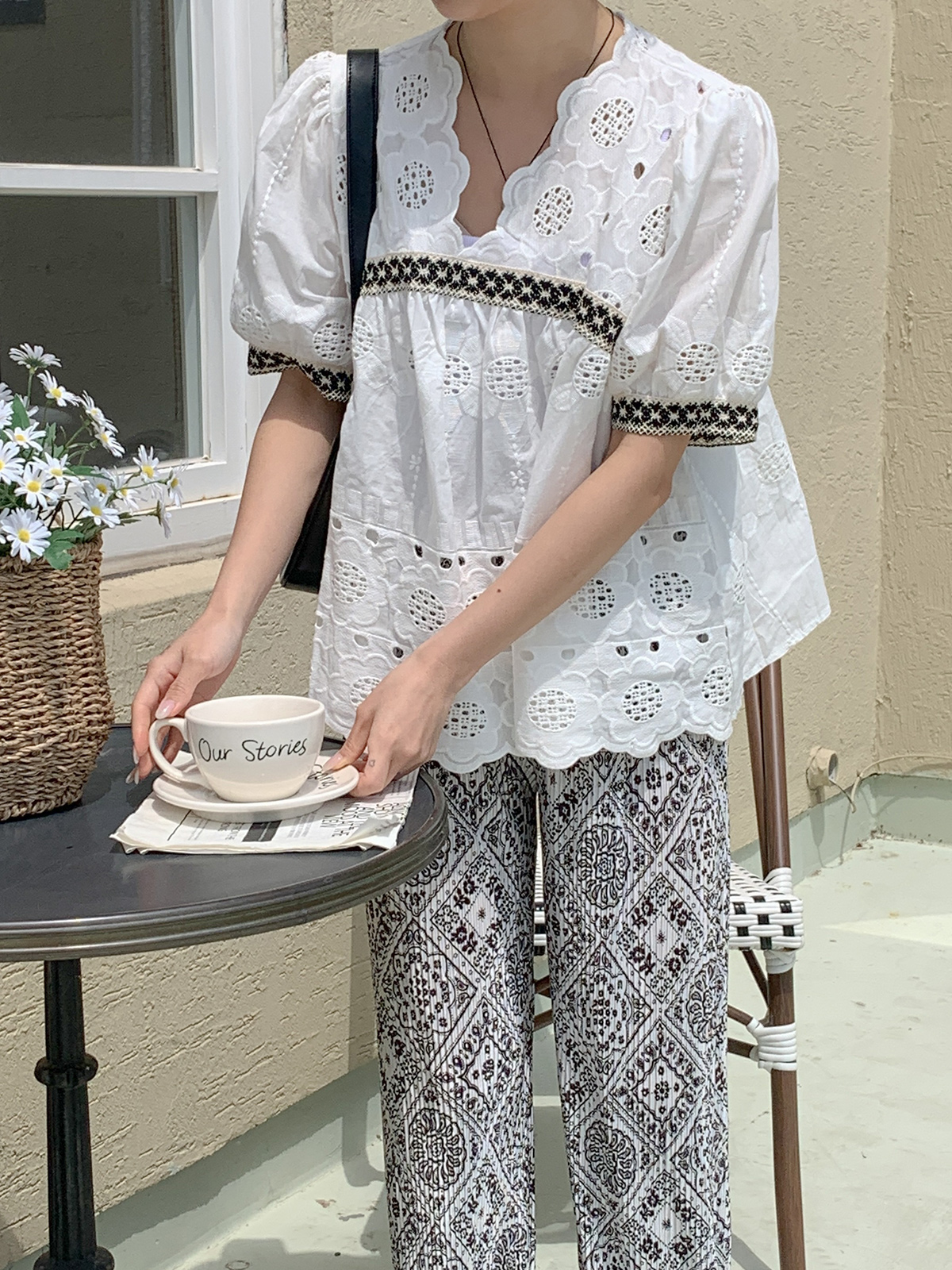 #펀칭자수블라우스#여성패턴펀칭자수블라우스#패턴자수반팔블라우스#반팔블라우스코디#블라우스룩#데일리블라우스#데일리룩#여름플라워패턴펀칭자수반팔블라우스#대학생룩#캠퍼스룩#새내기룩#캠퍼스꾸안꾸룩#새내기꾸안꾸룩