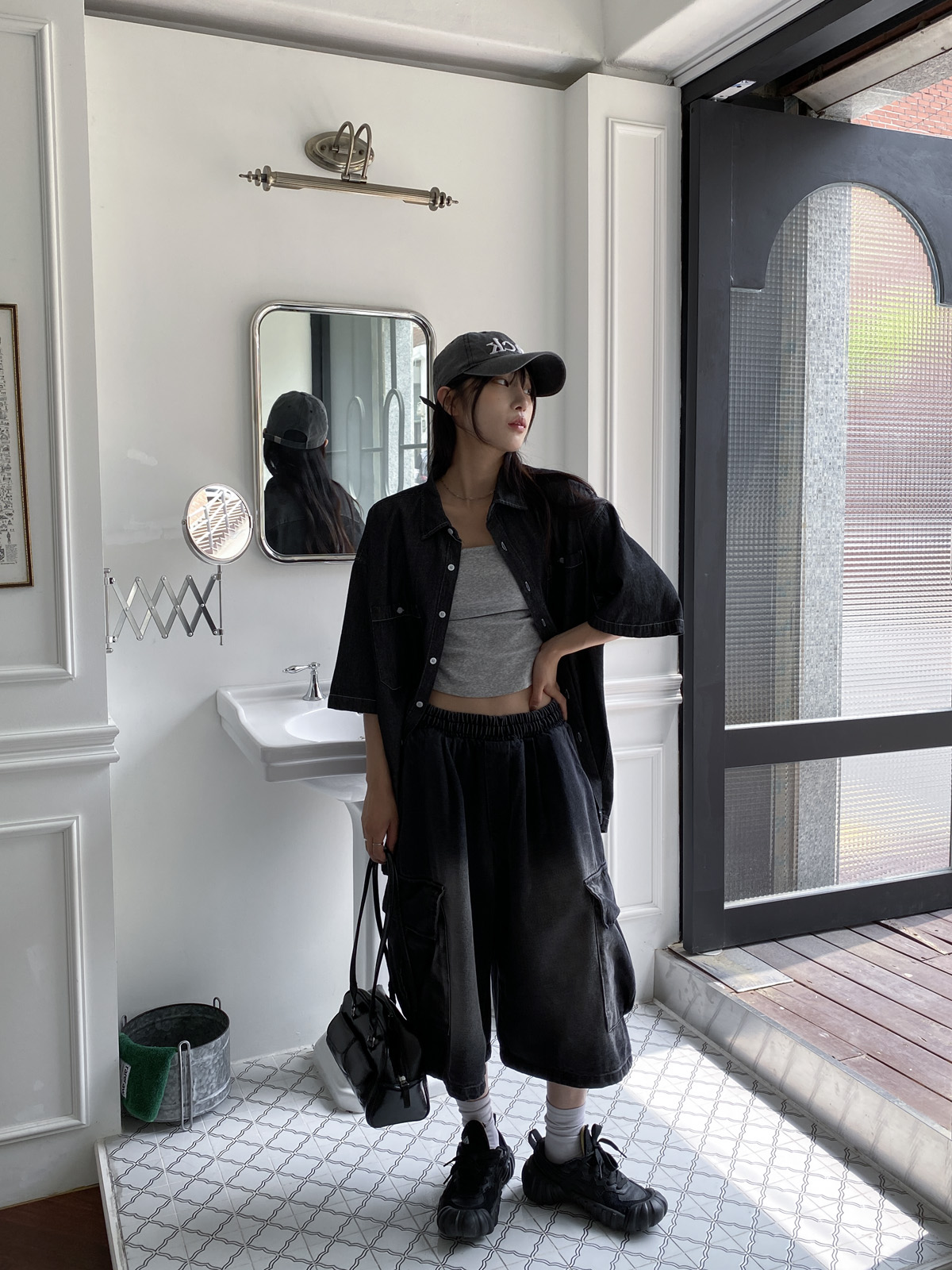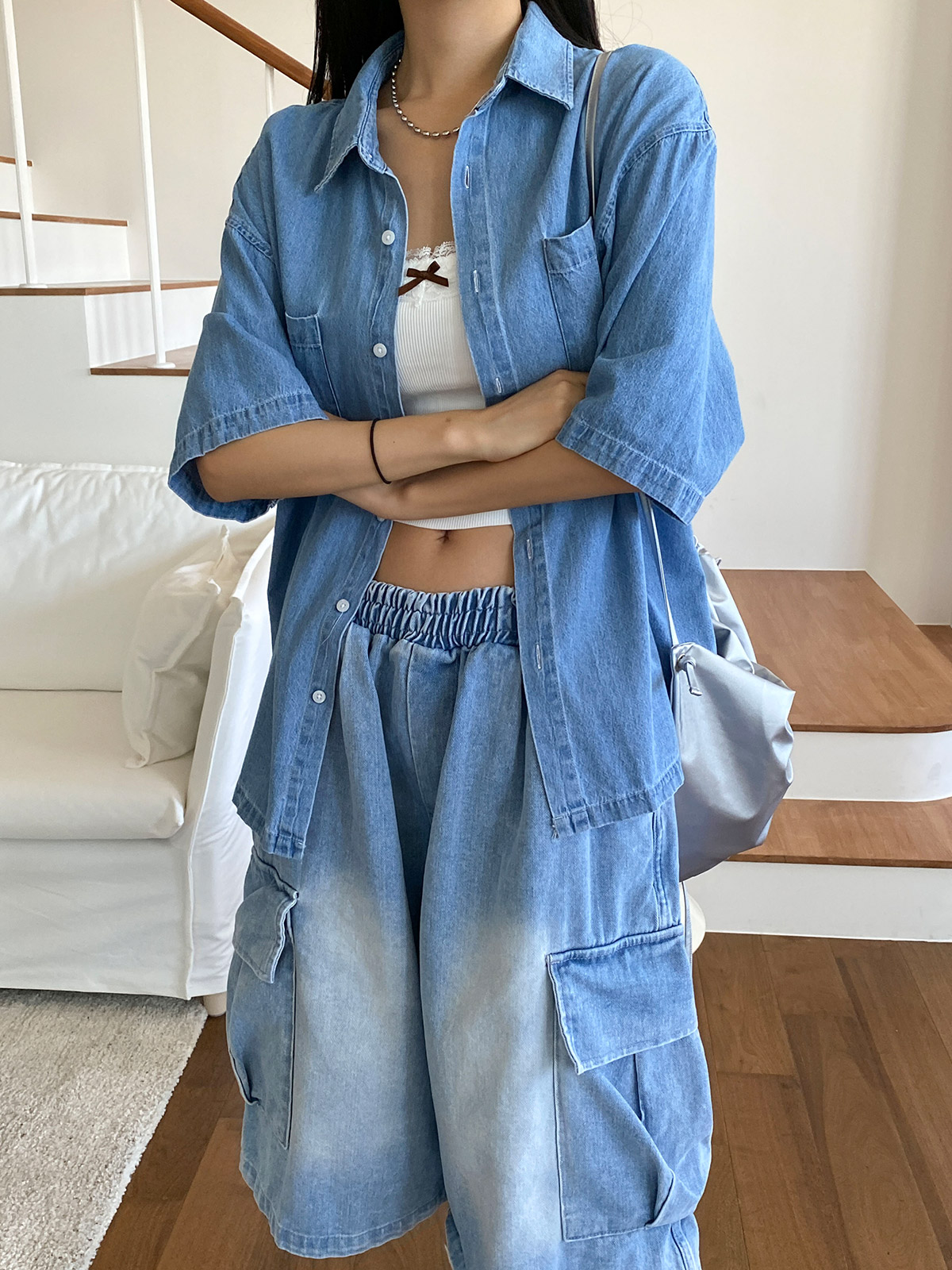 NB2977K45-맬루이 카라넥 포켓 루즈핏 박시 데님 셔츠