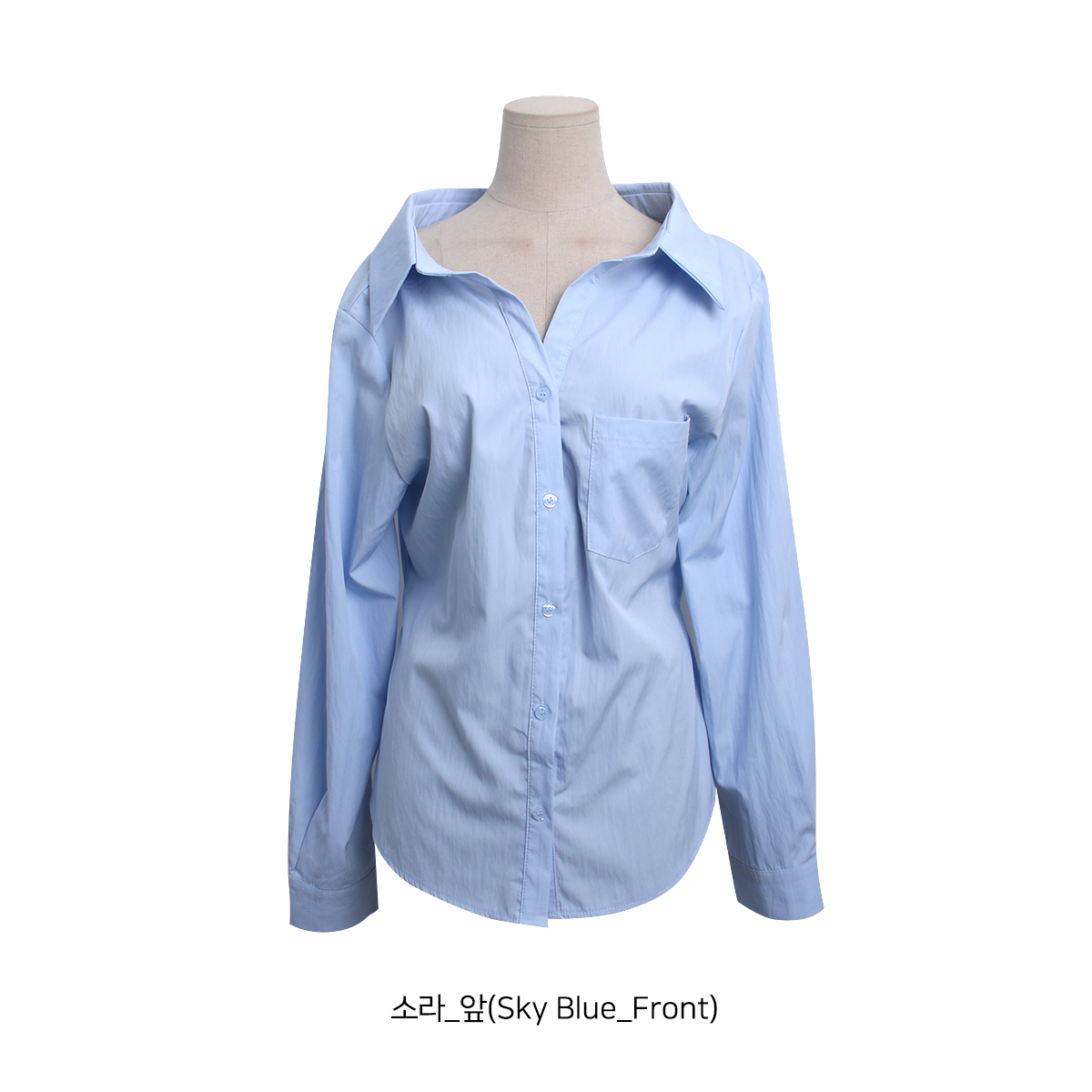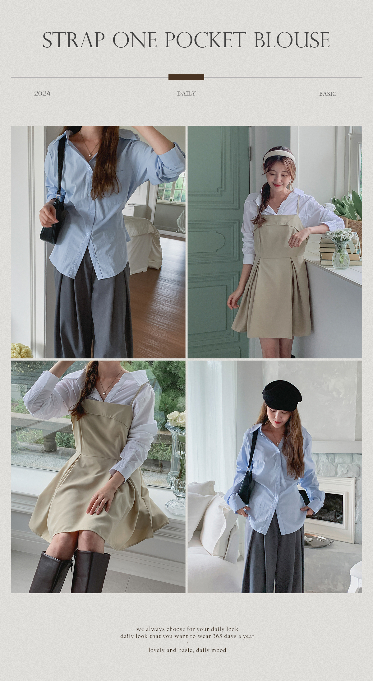 자유로운 연출이 가능한 허리 스트랩 디자인과 오프숄더로도 연출이 가능한 오픈 카라넥 디자인이 인상적인 원포켓 포인트 블라우스에요!