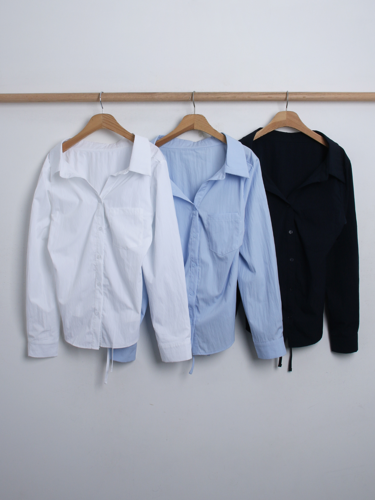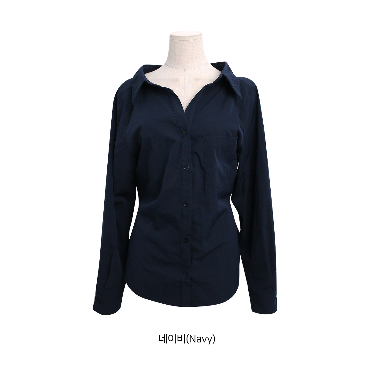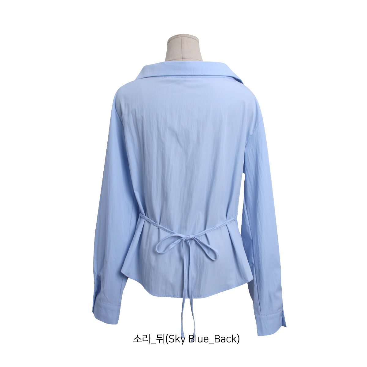 BL5702K48-올르니 오픈 카라넥 허리 스트랩 원포켓 블라우스