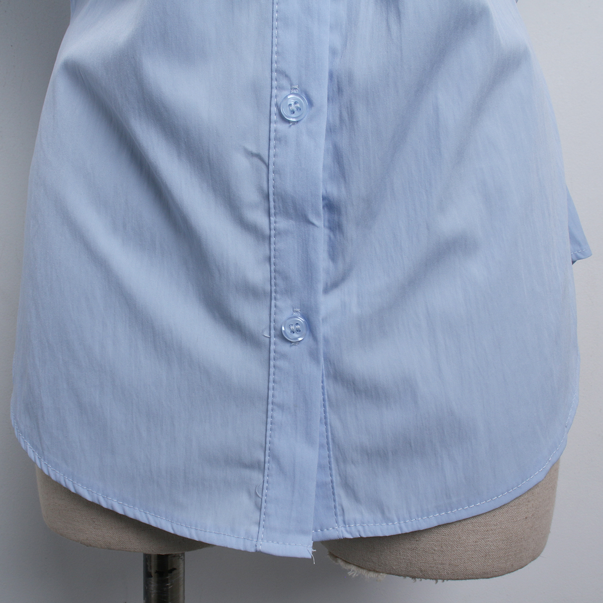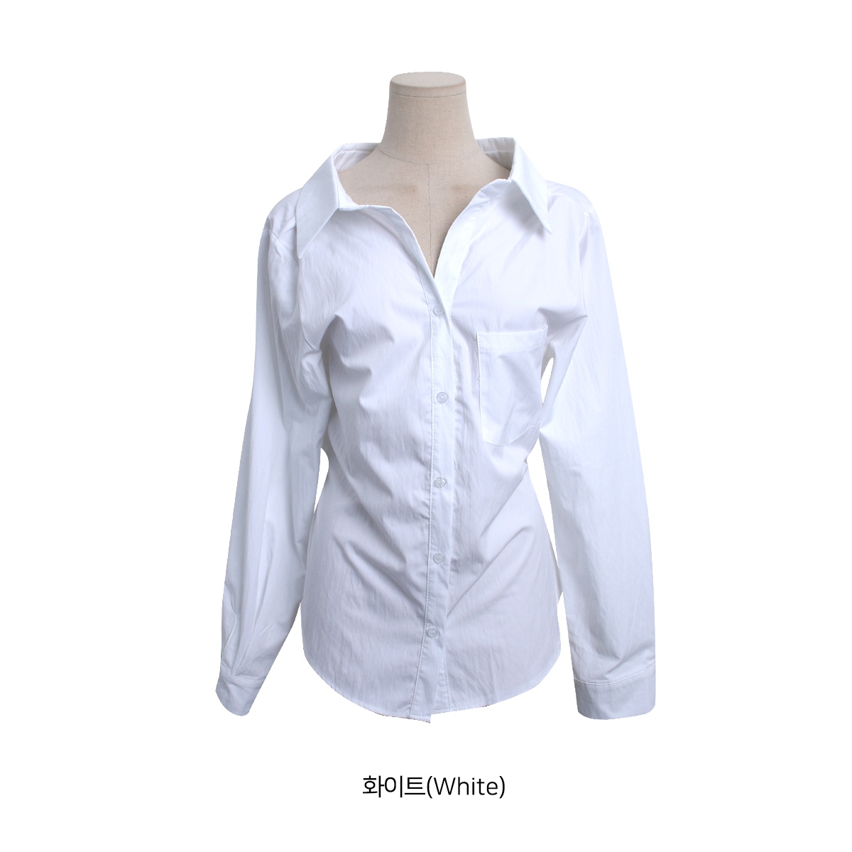 [ BL5702K48-올르니 오픈 카라넥 허리 스트랩 원포켓 블라우스 ]