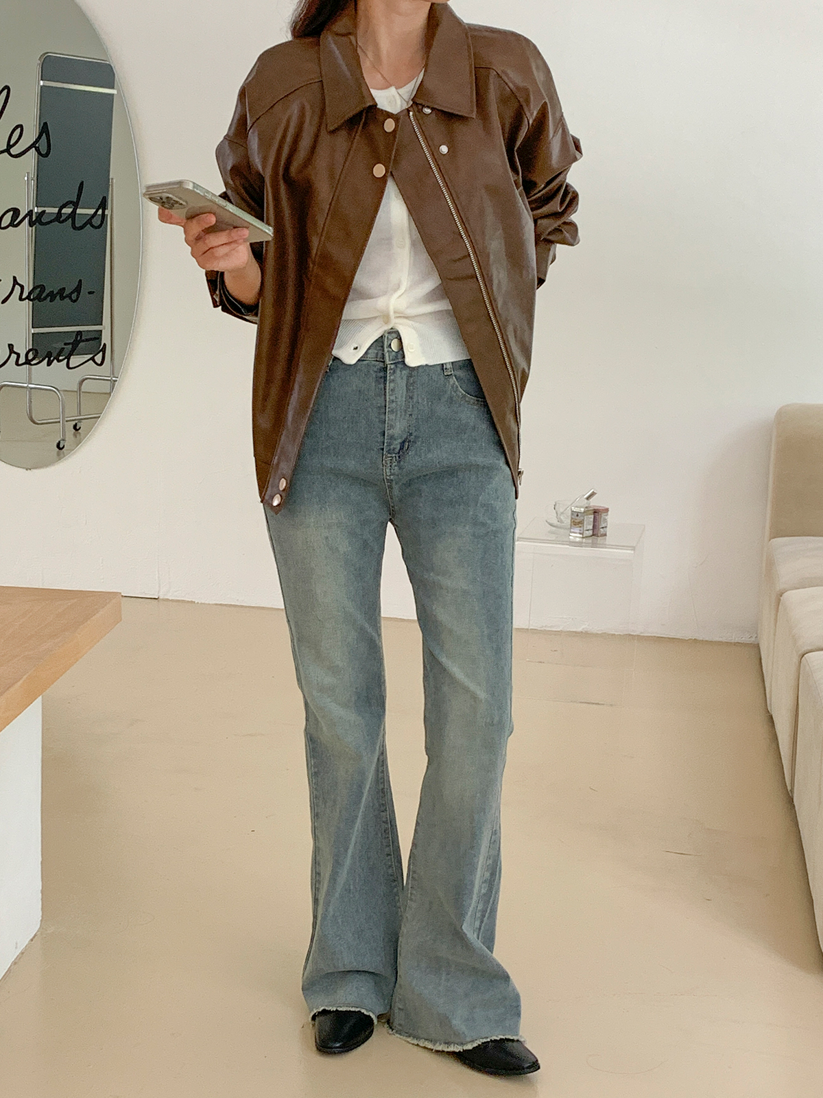 PT14490C49-지디가 밑단 컷팅 워싱 부츠컷 데님 팬츠