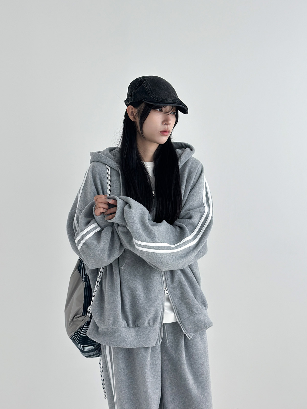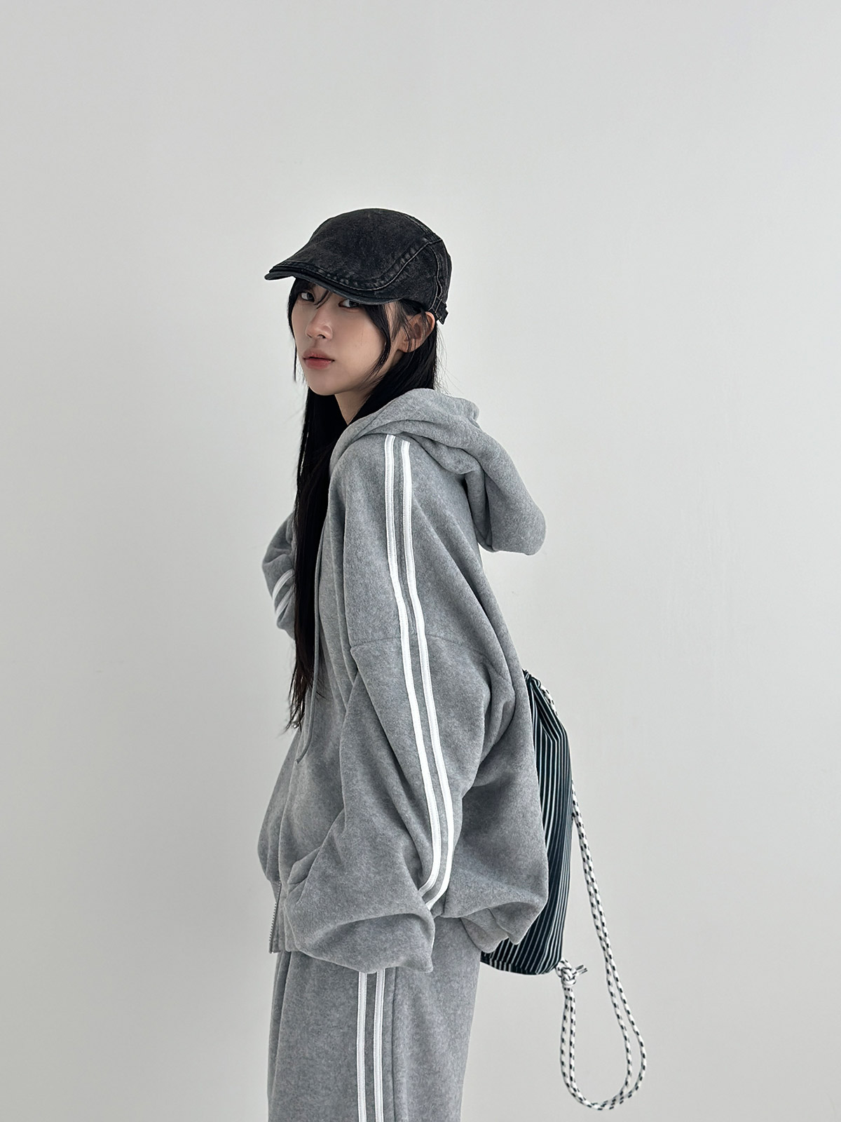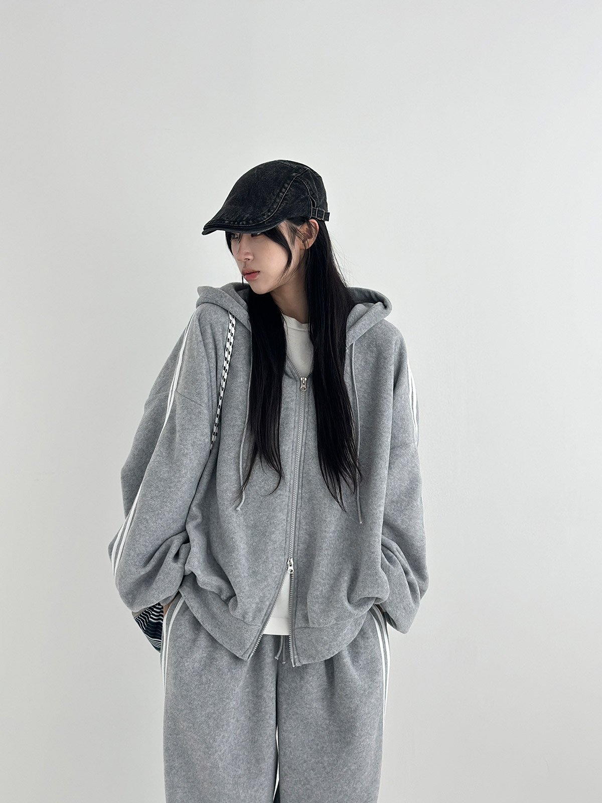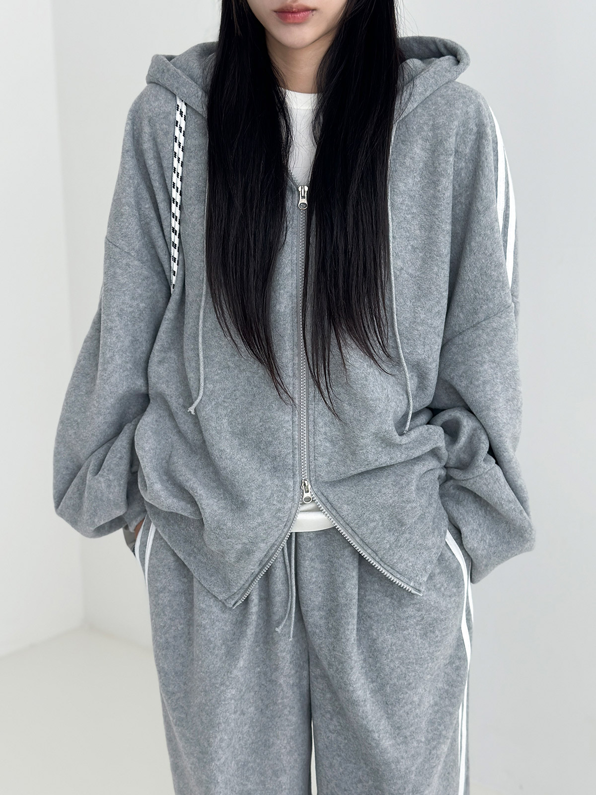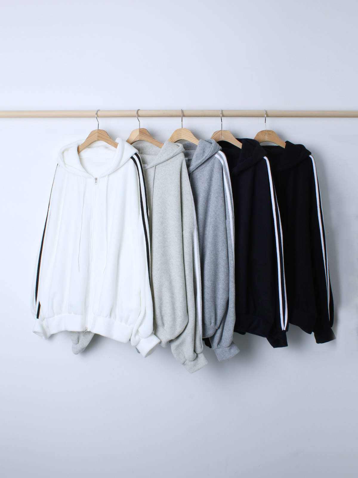 JK5795K4A-기스오 사이드 라인 투웨이 후리스 박시 후드 집업