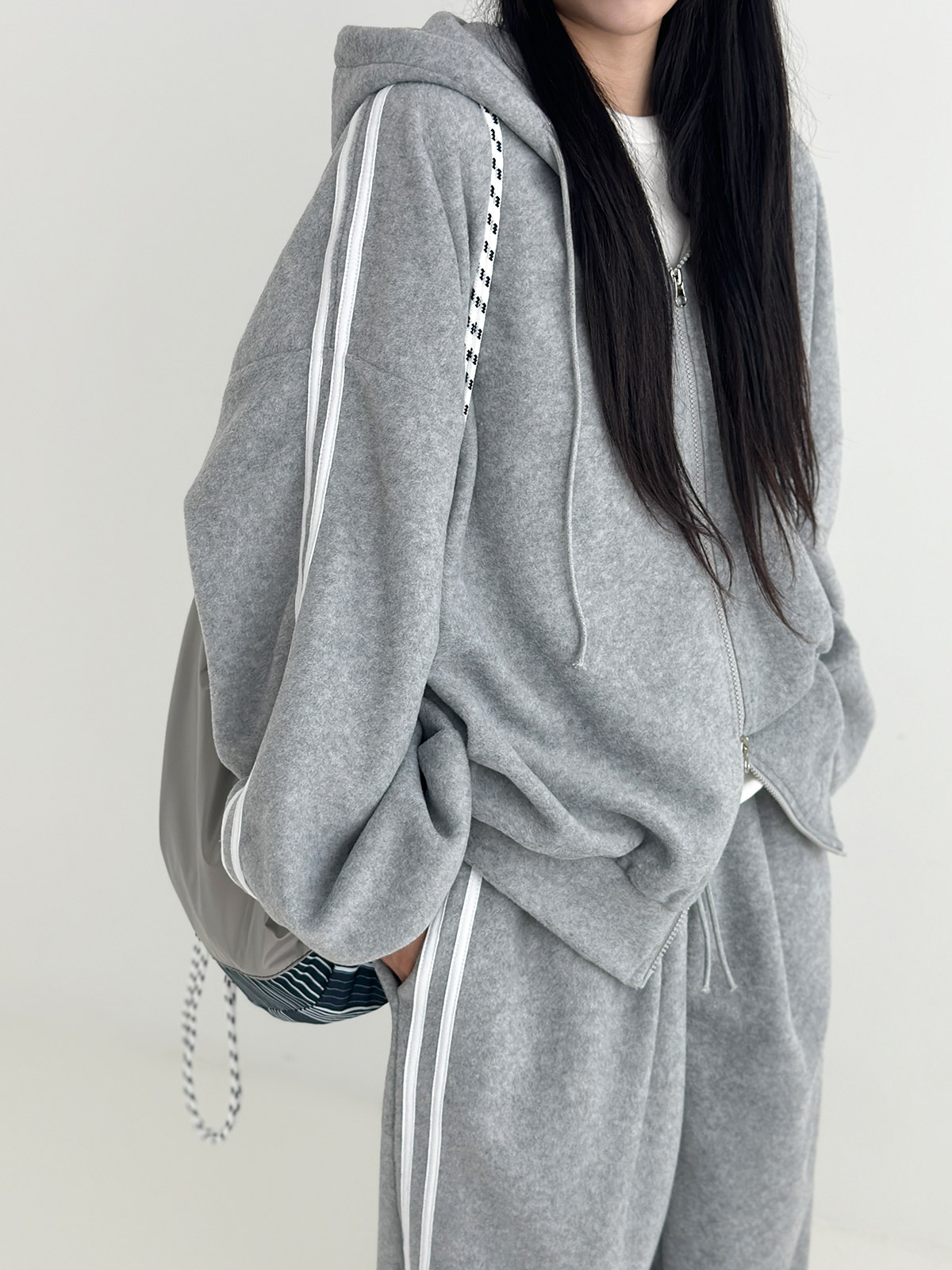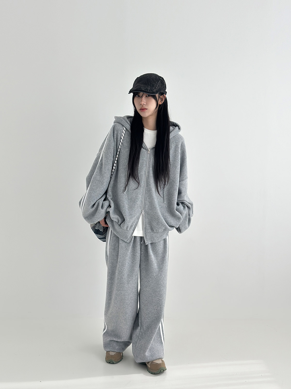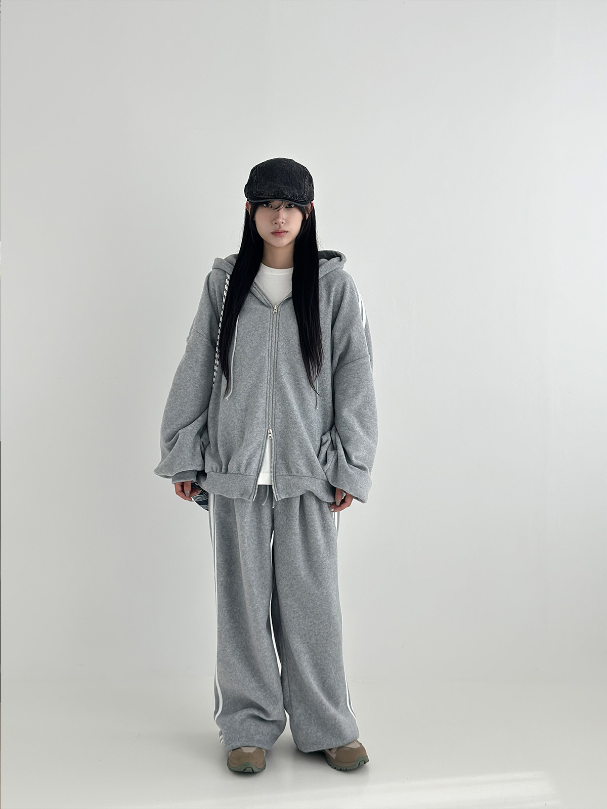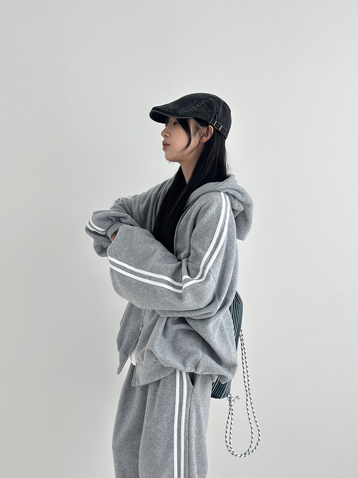 JK5795K4A-기스오 사이드 라인 투웨이 후리스 박시 후드 집업