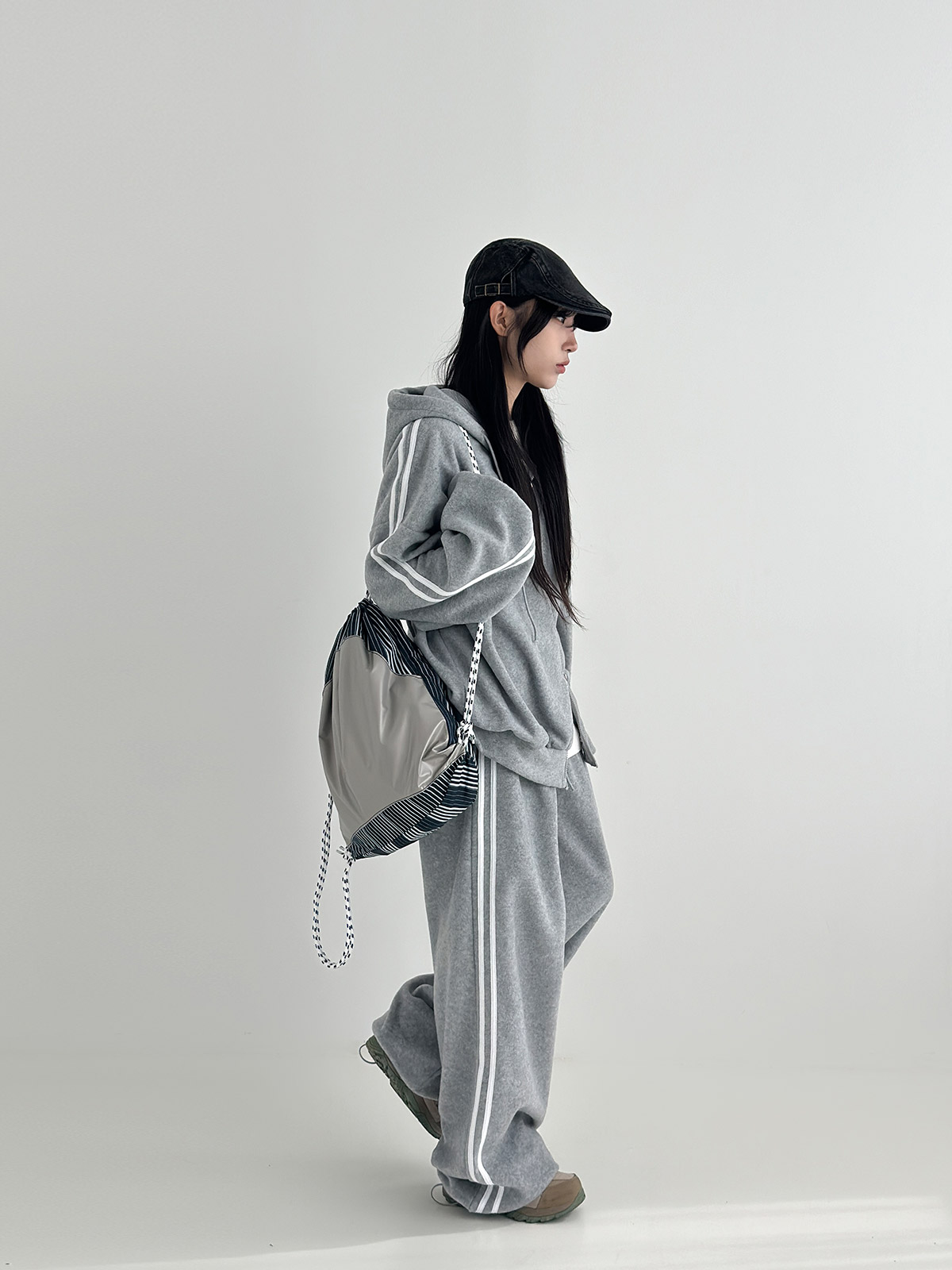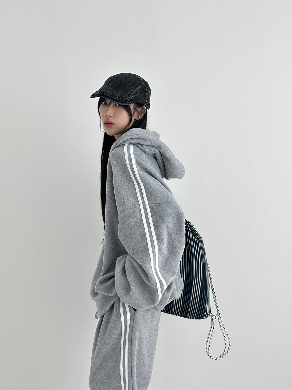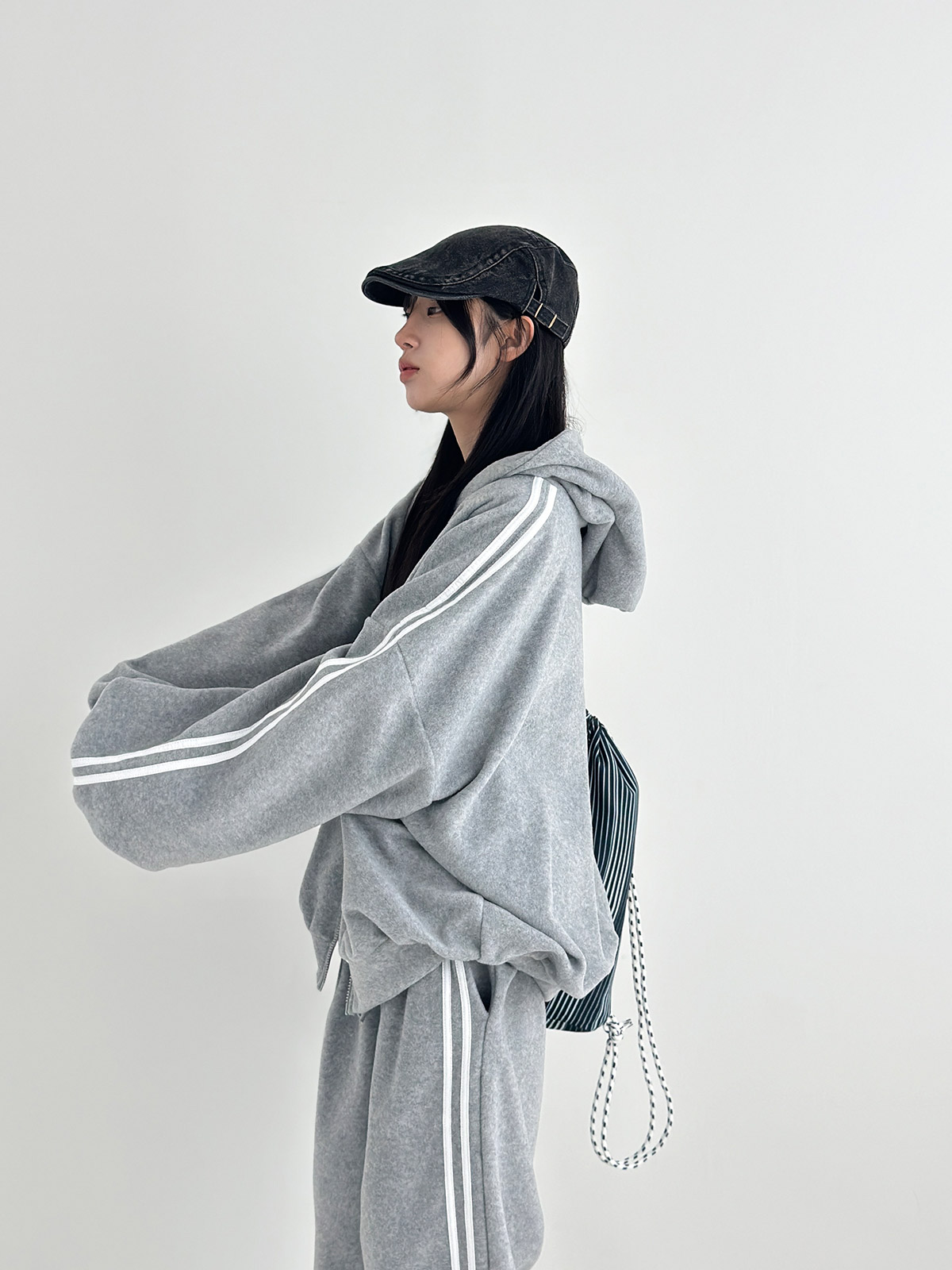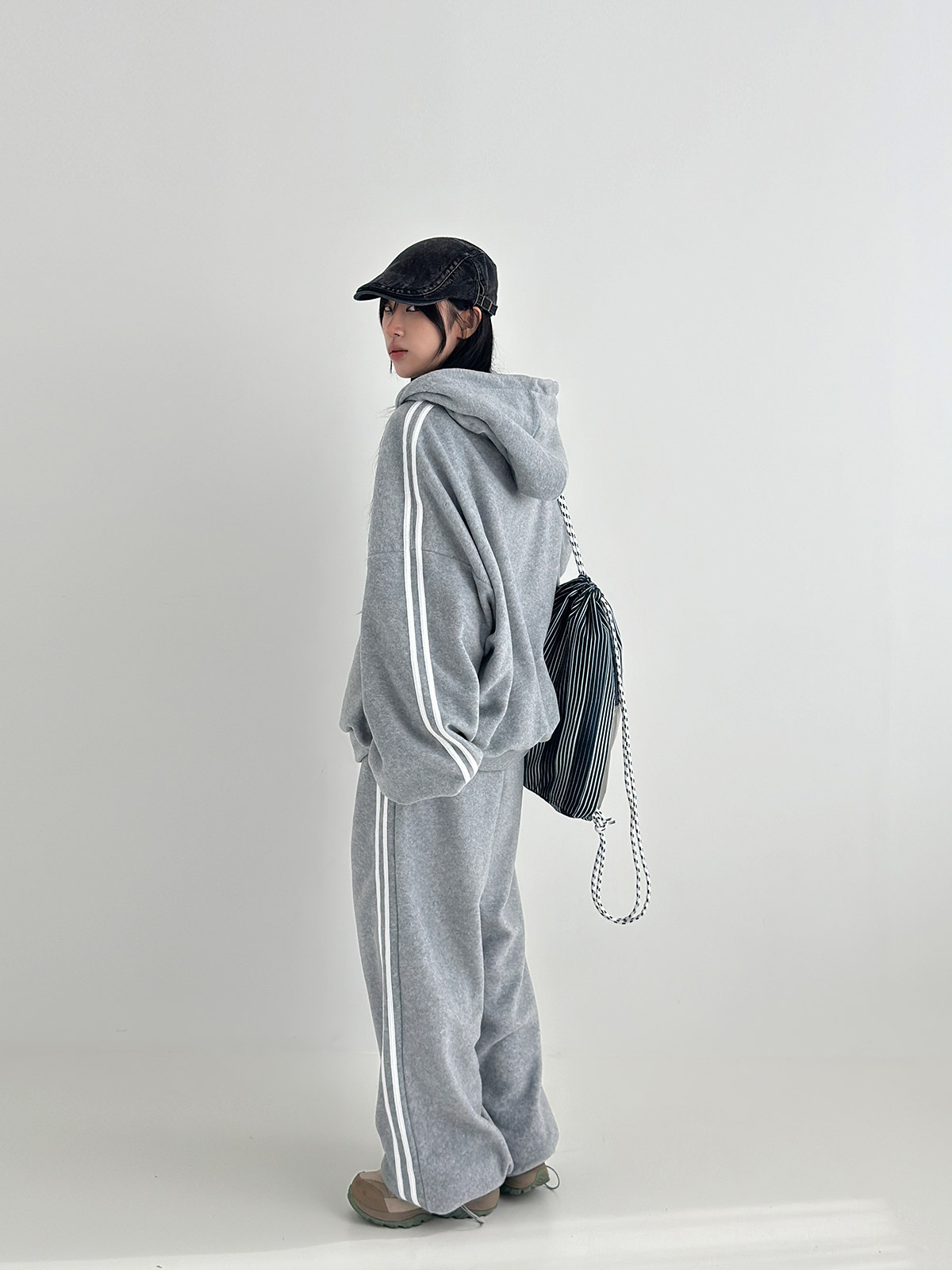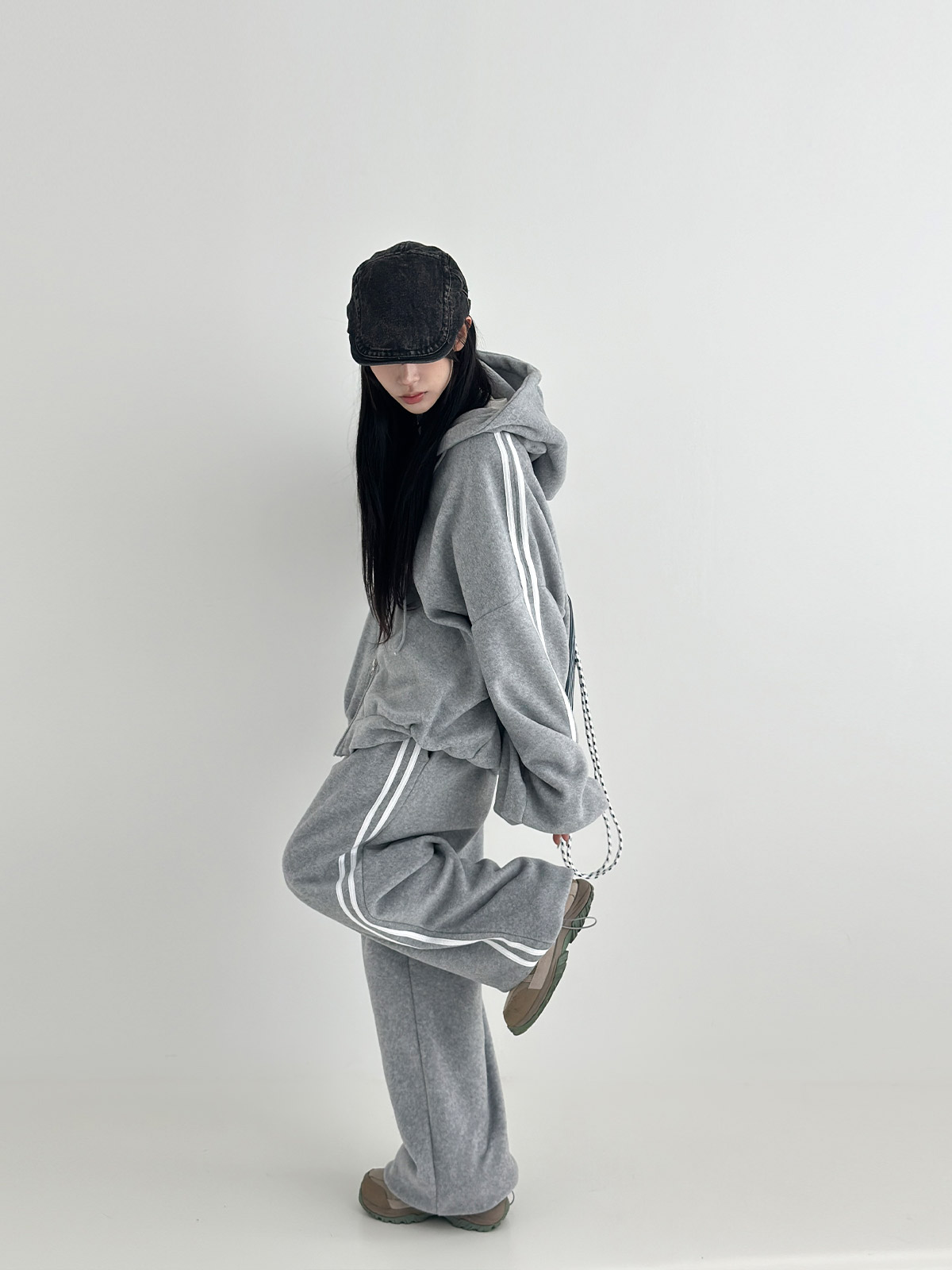 JK5795K4A-기스오 사이드 라인 투웨이 후리스 박시 후드 집업