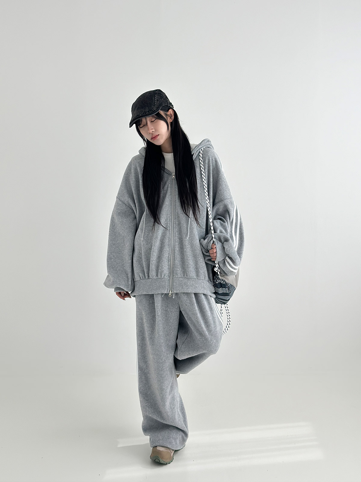 [ JK5795K4A-기스오 사이드 라인 투웨이 후리스 박시 후드 집업 ]