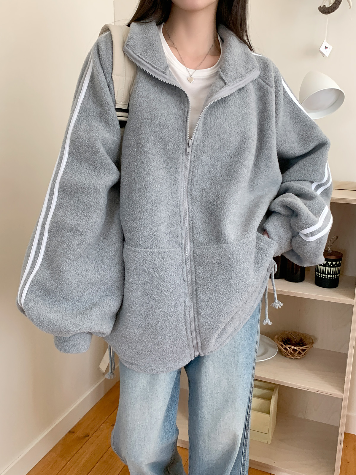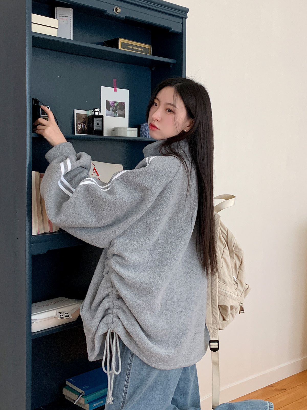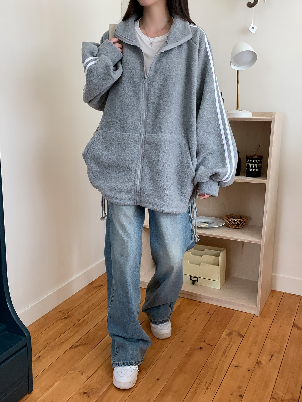 JK5842K4A-내리븐 오버핏 셔링 트랙 후리스 점퍼