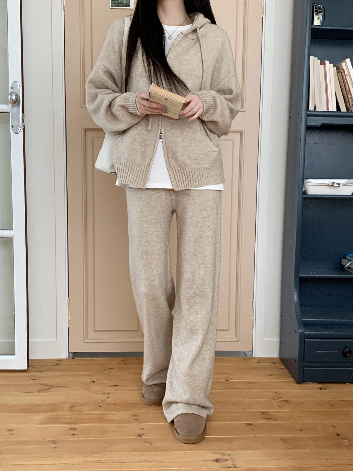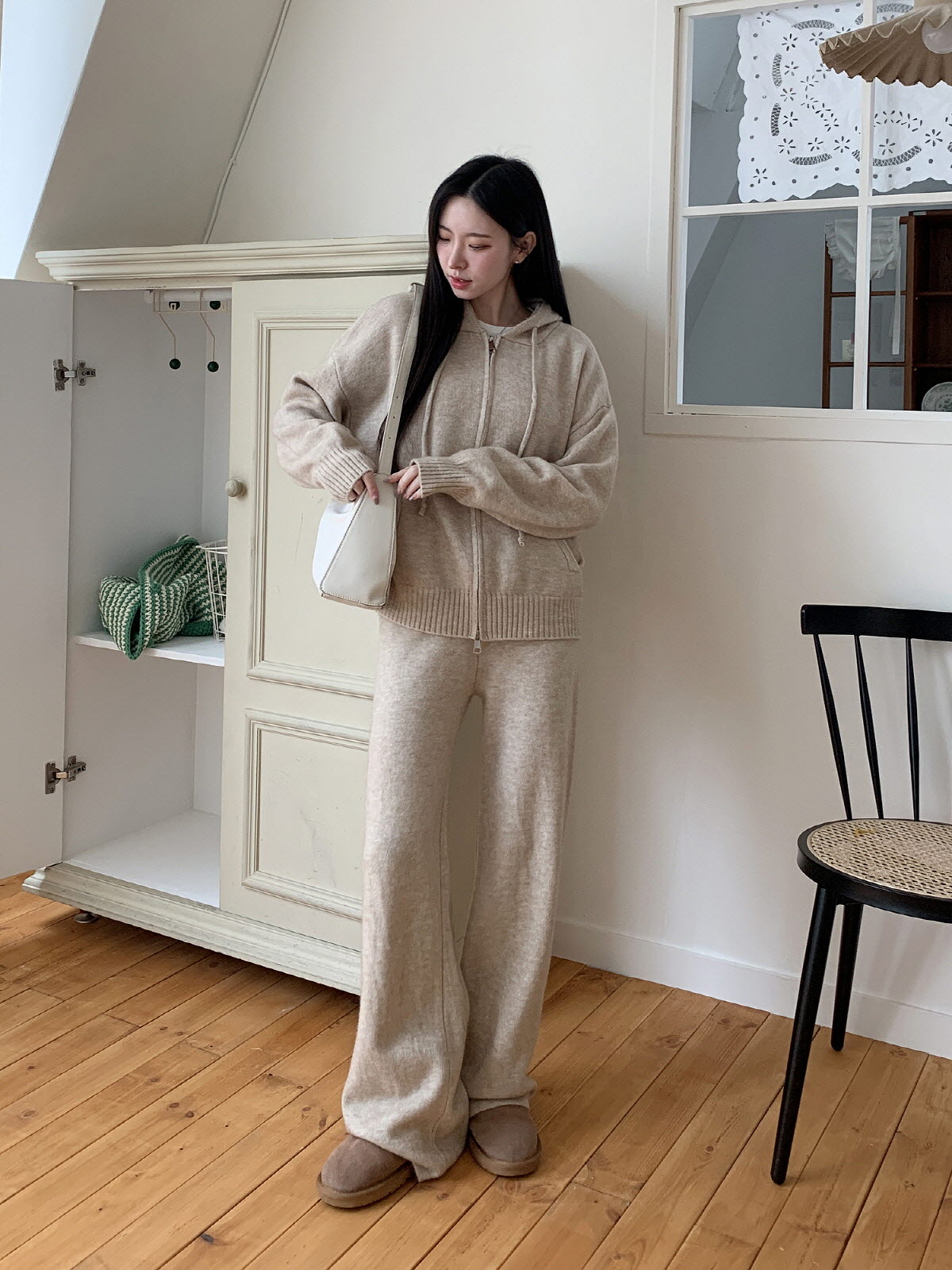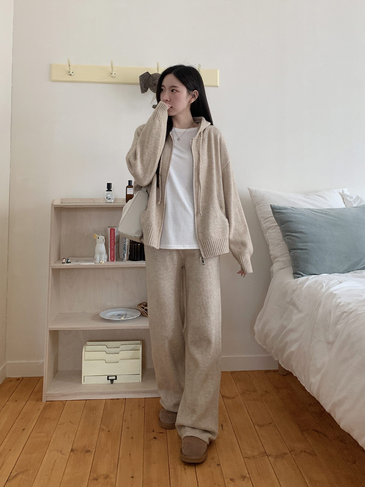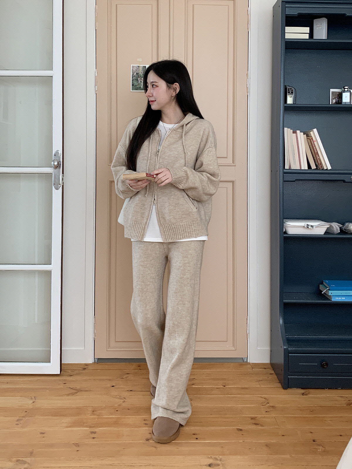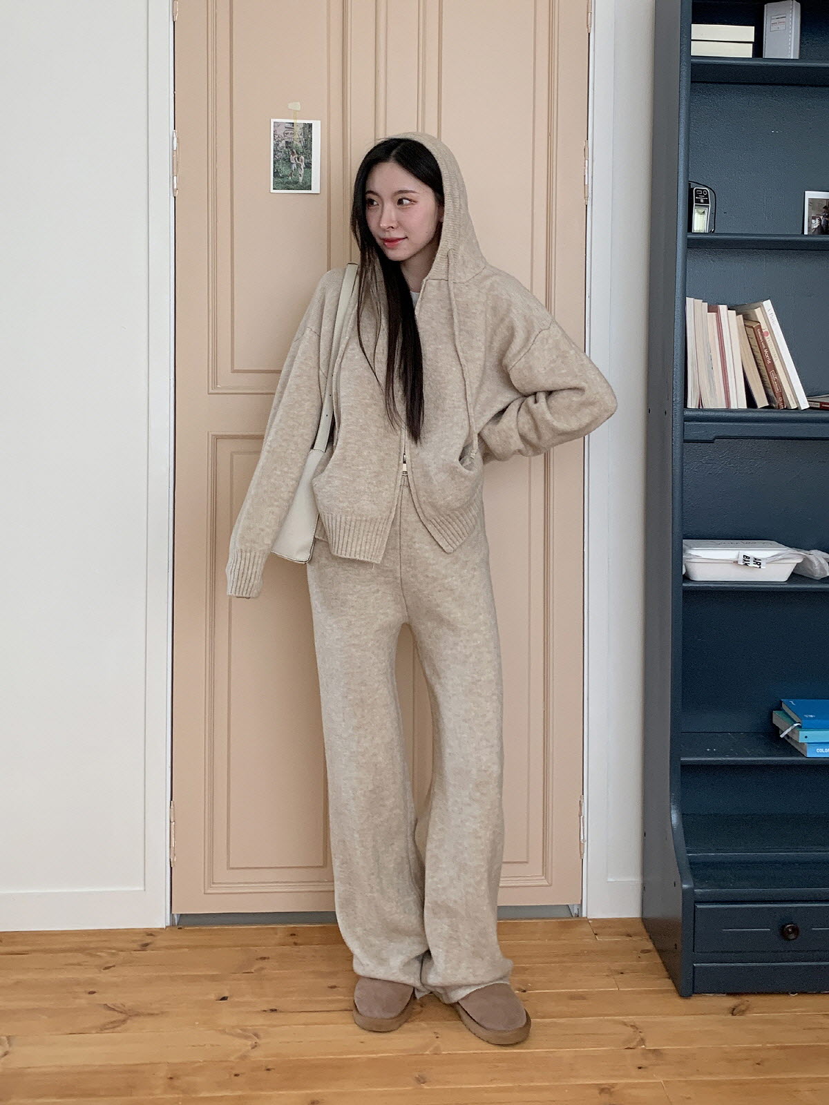 [ SET3632K4A-루투후 루즈 투웨이 니트 후드 집업 밴딩 팬츠 세트 ]