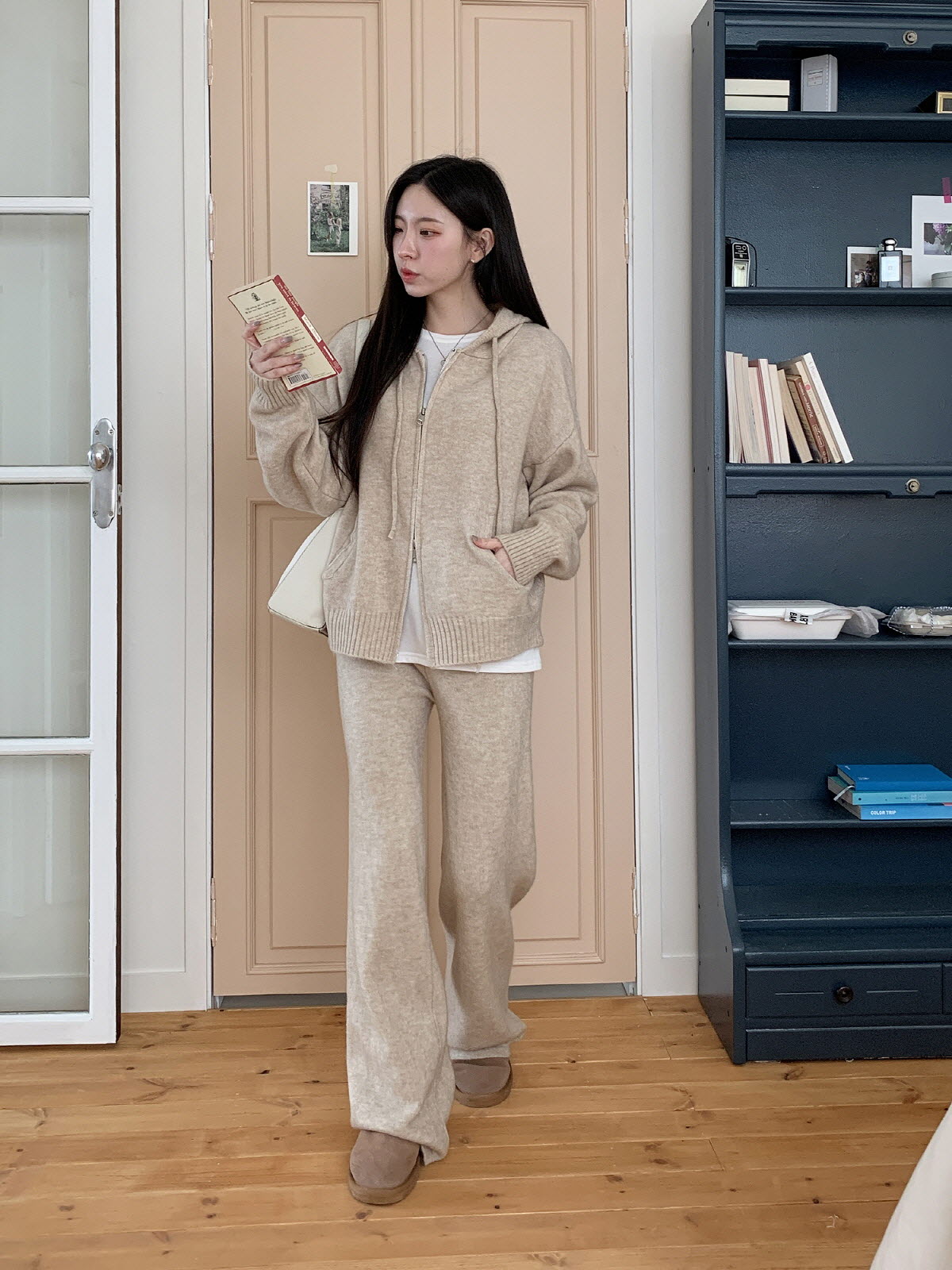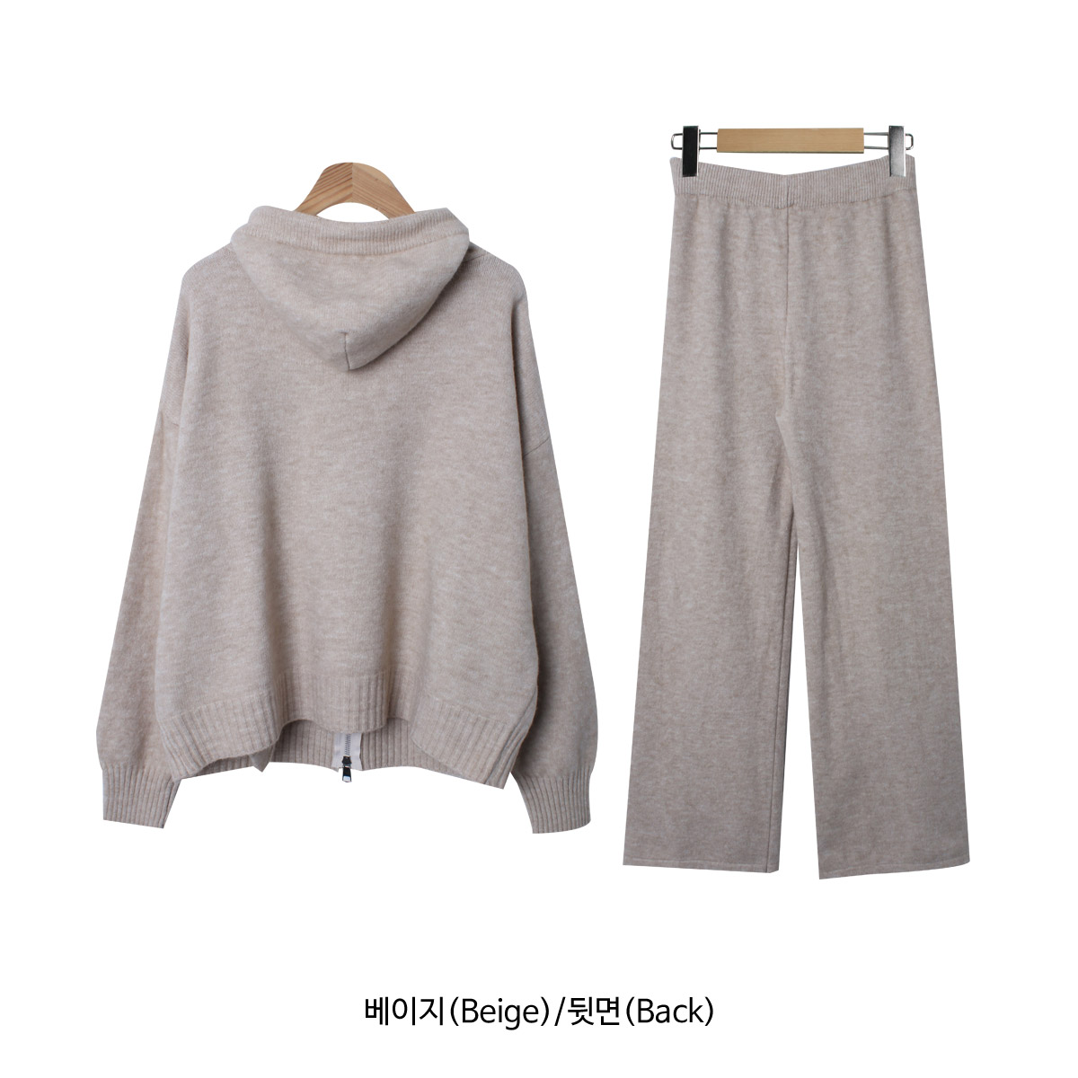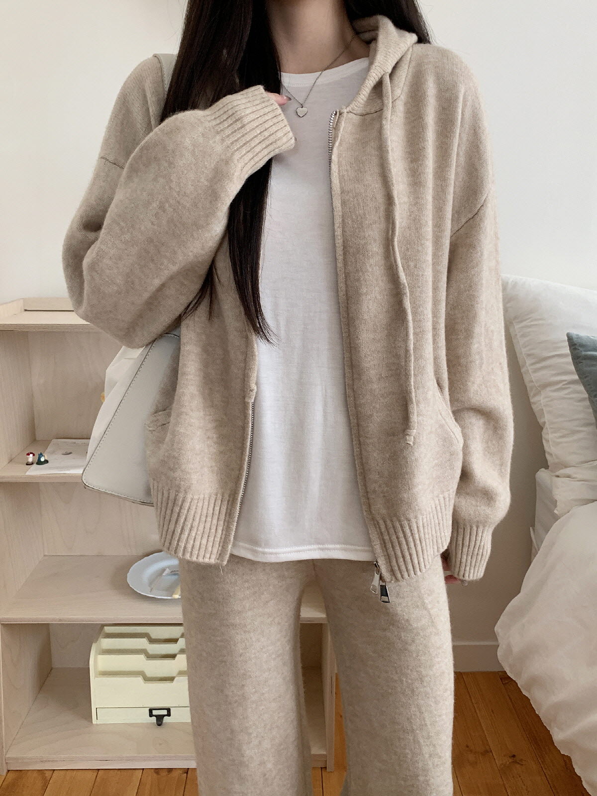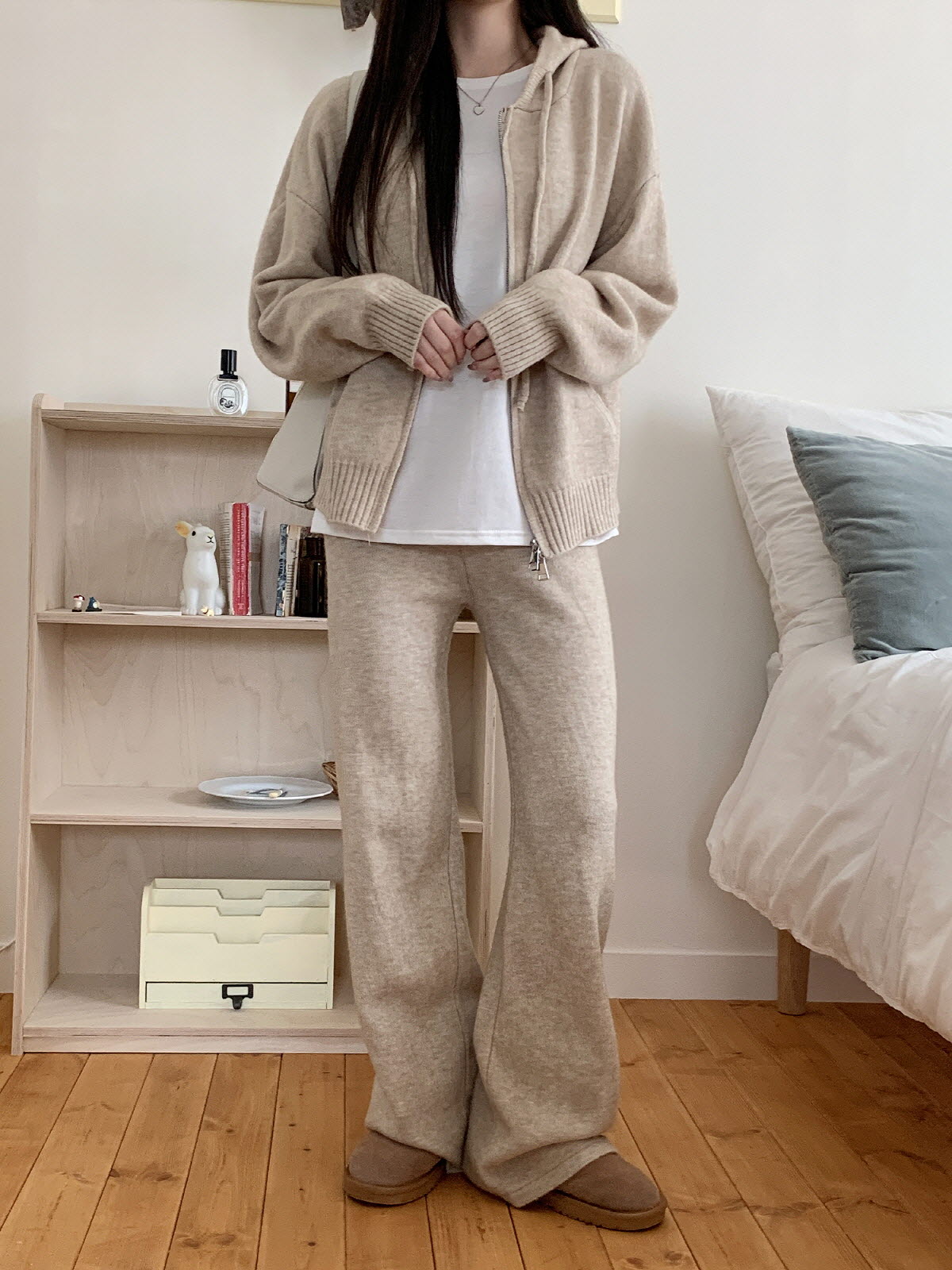[ SET3632K4A-루투후 루즈 투웨이 니트 후드 집업 밴딩 팬츠 세트 ]