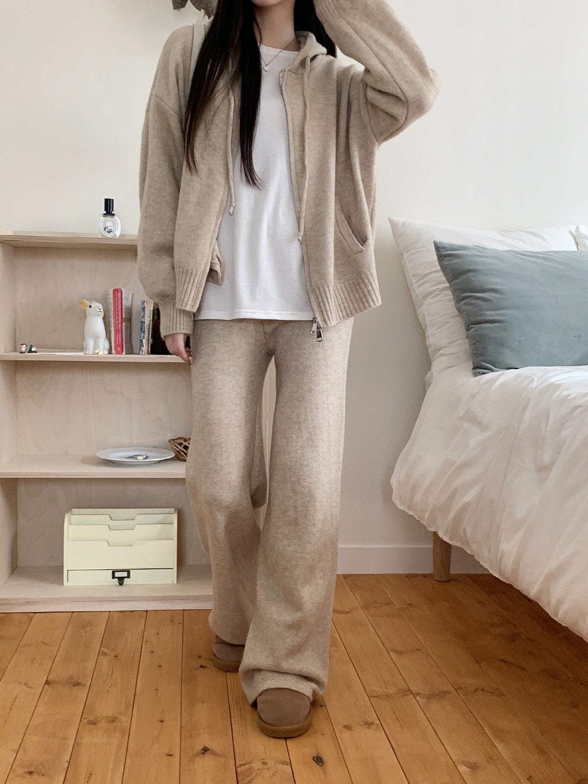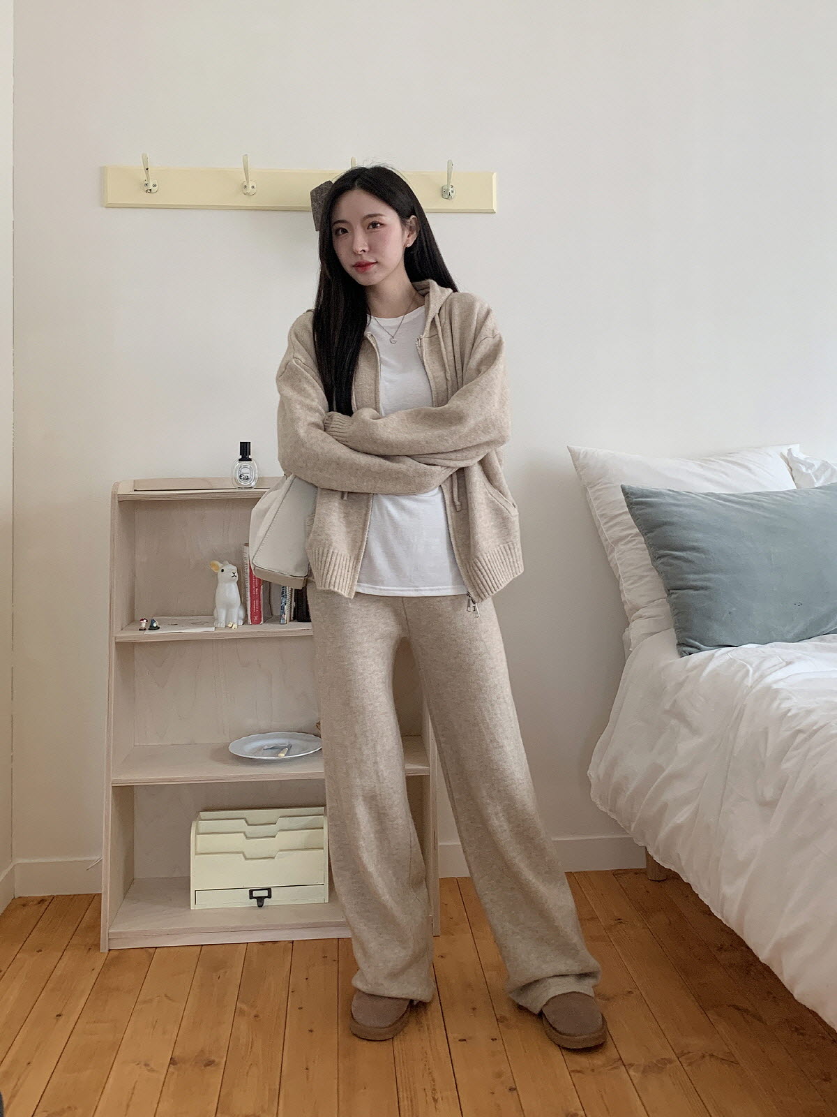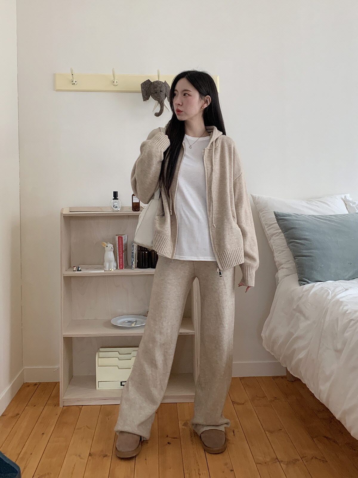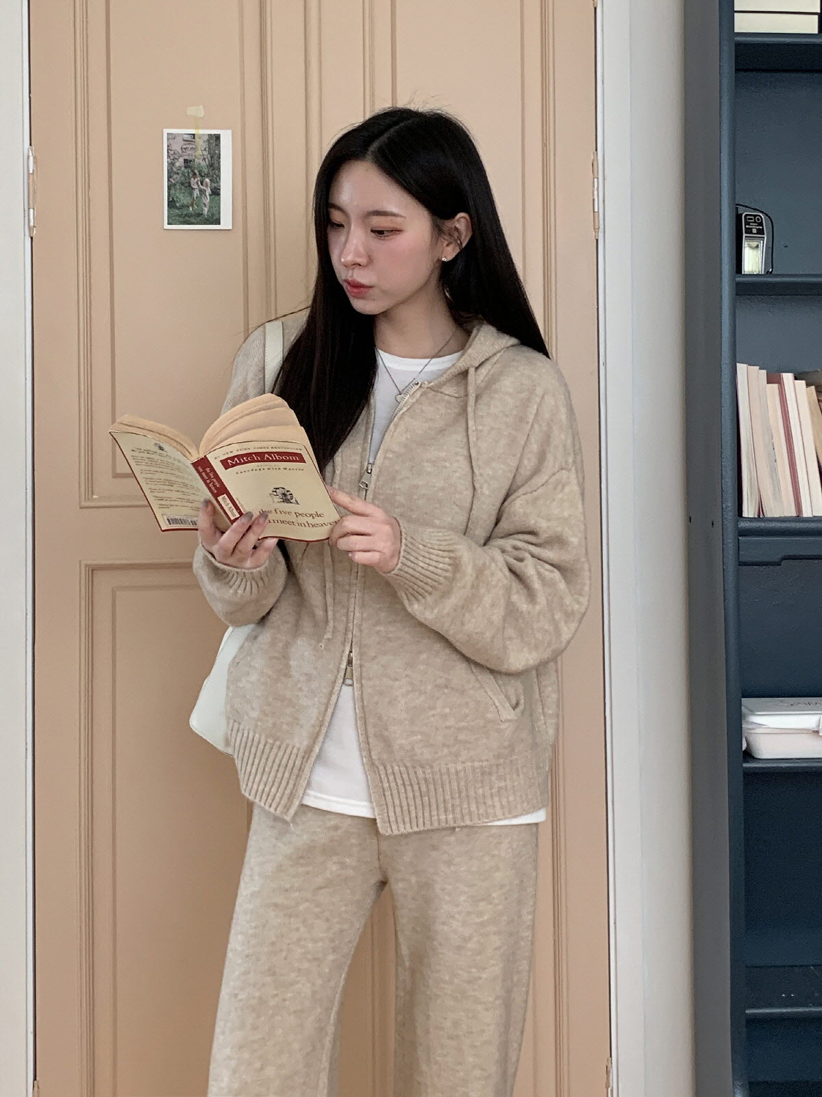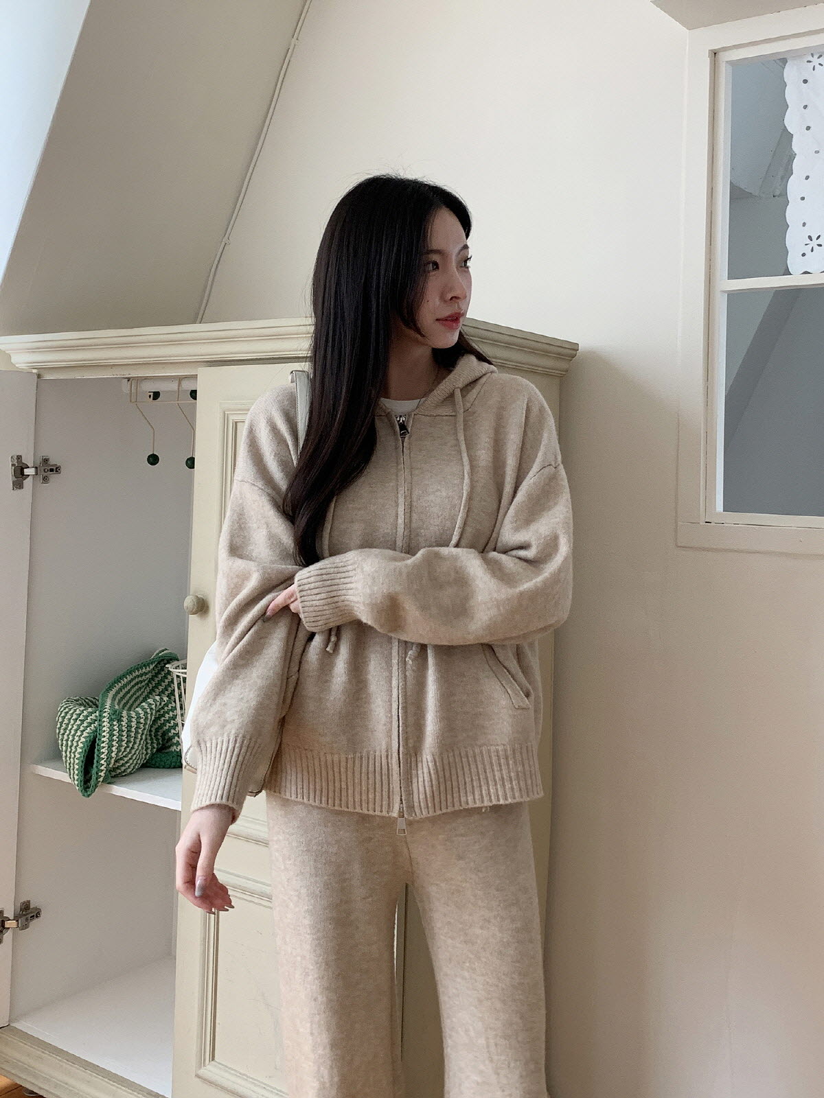 [ SET3632K4A-루투후 루즈 투웨이 니트 후드 집업 밴딩 팬츠 세트 ]