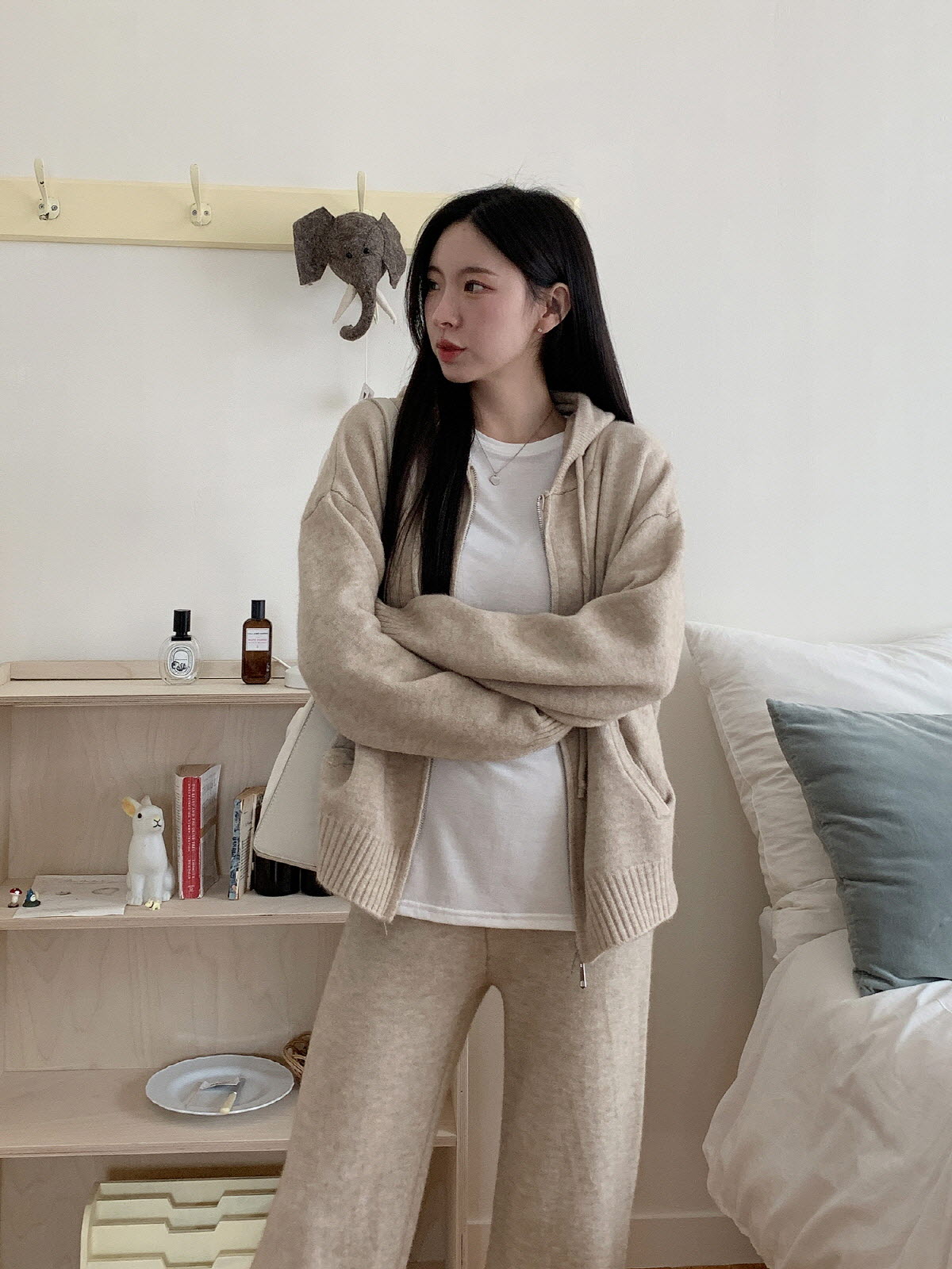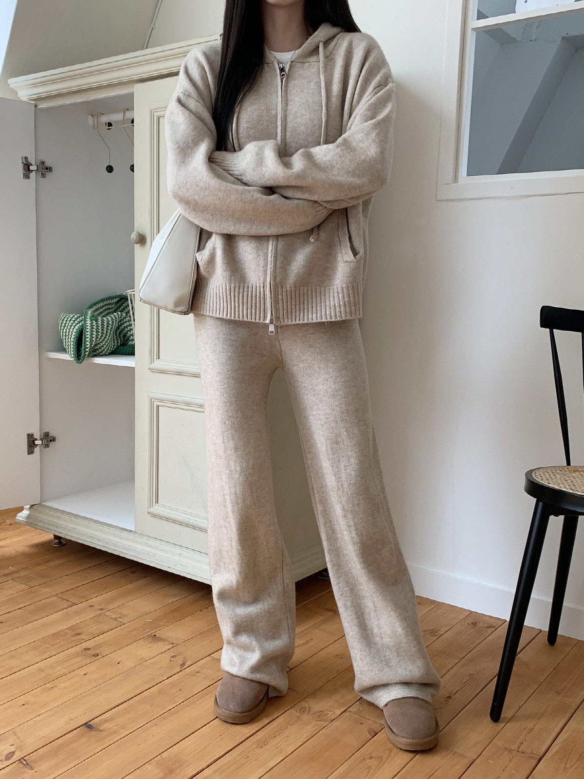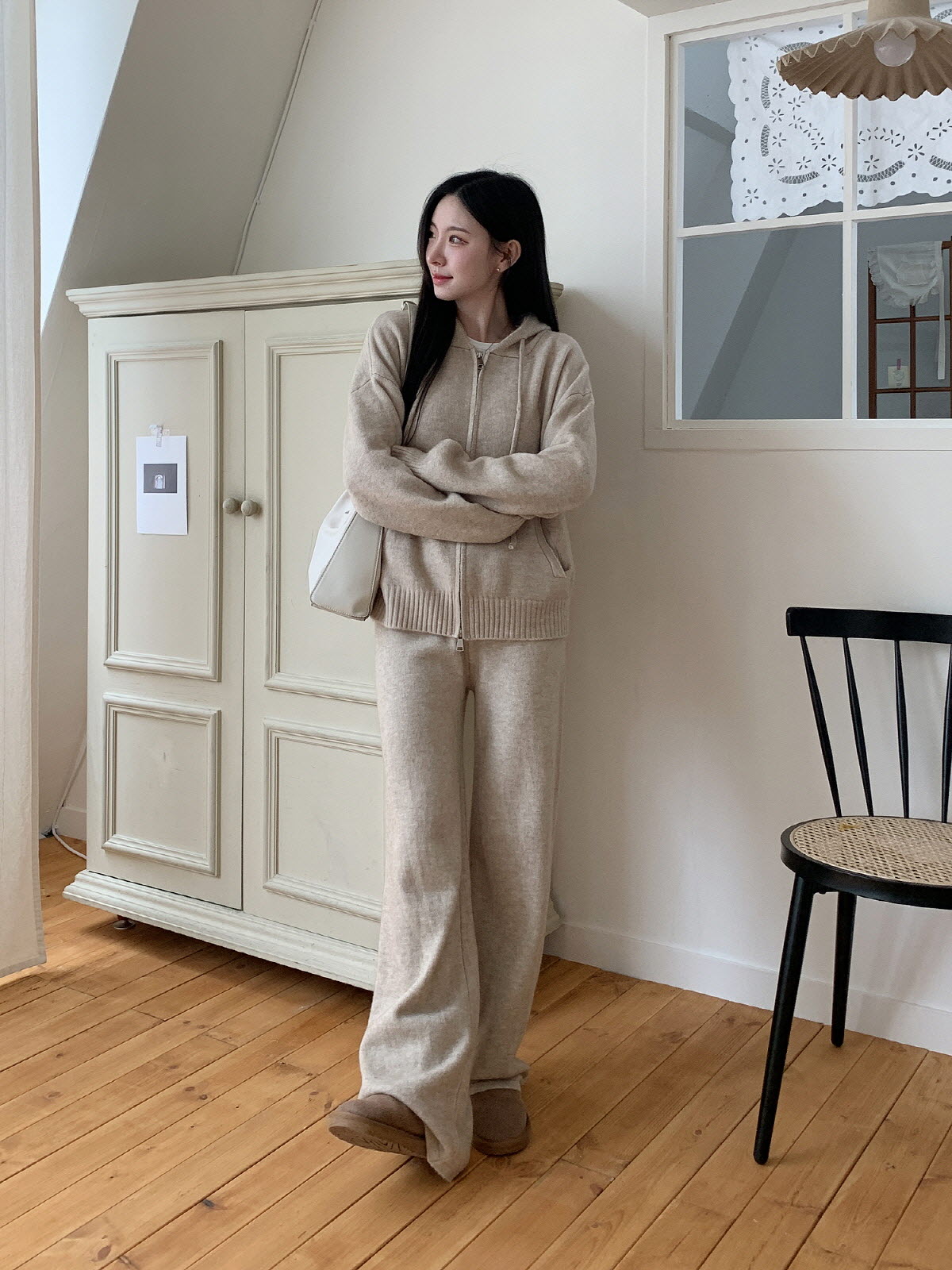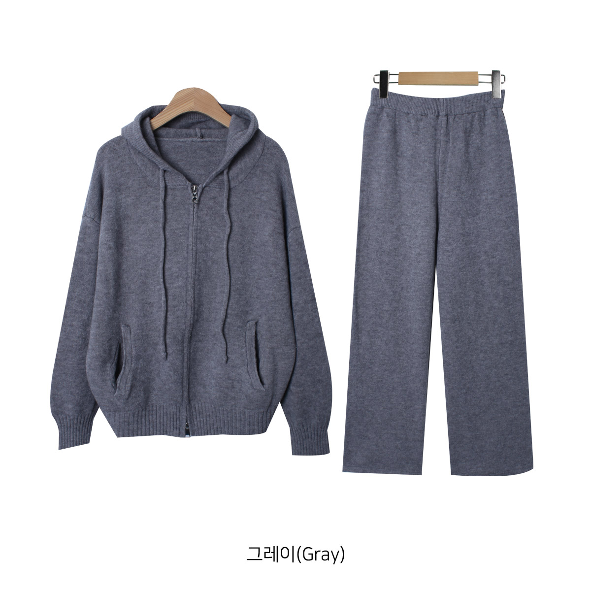 [ SET3632K4A-루투후 루즈 투웨이 니트 후드 집업 밴딩 팬츠 세트 ]