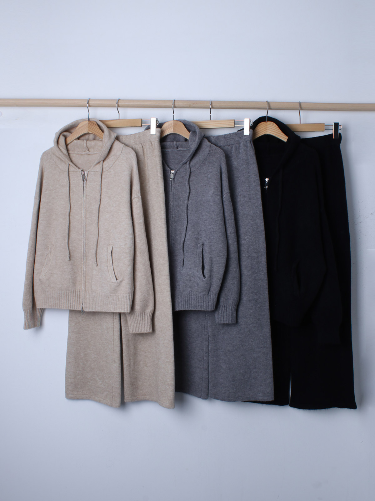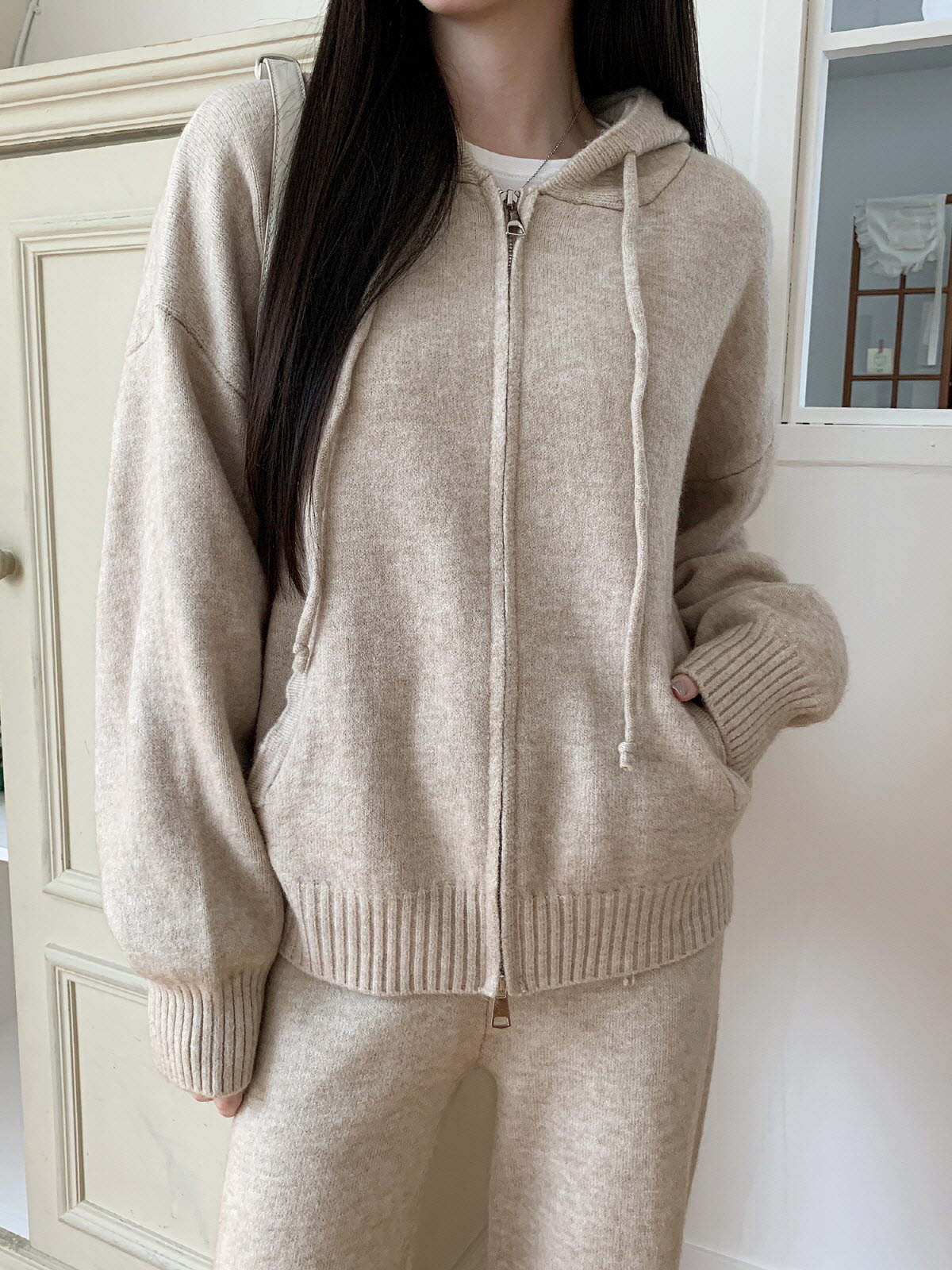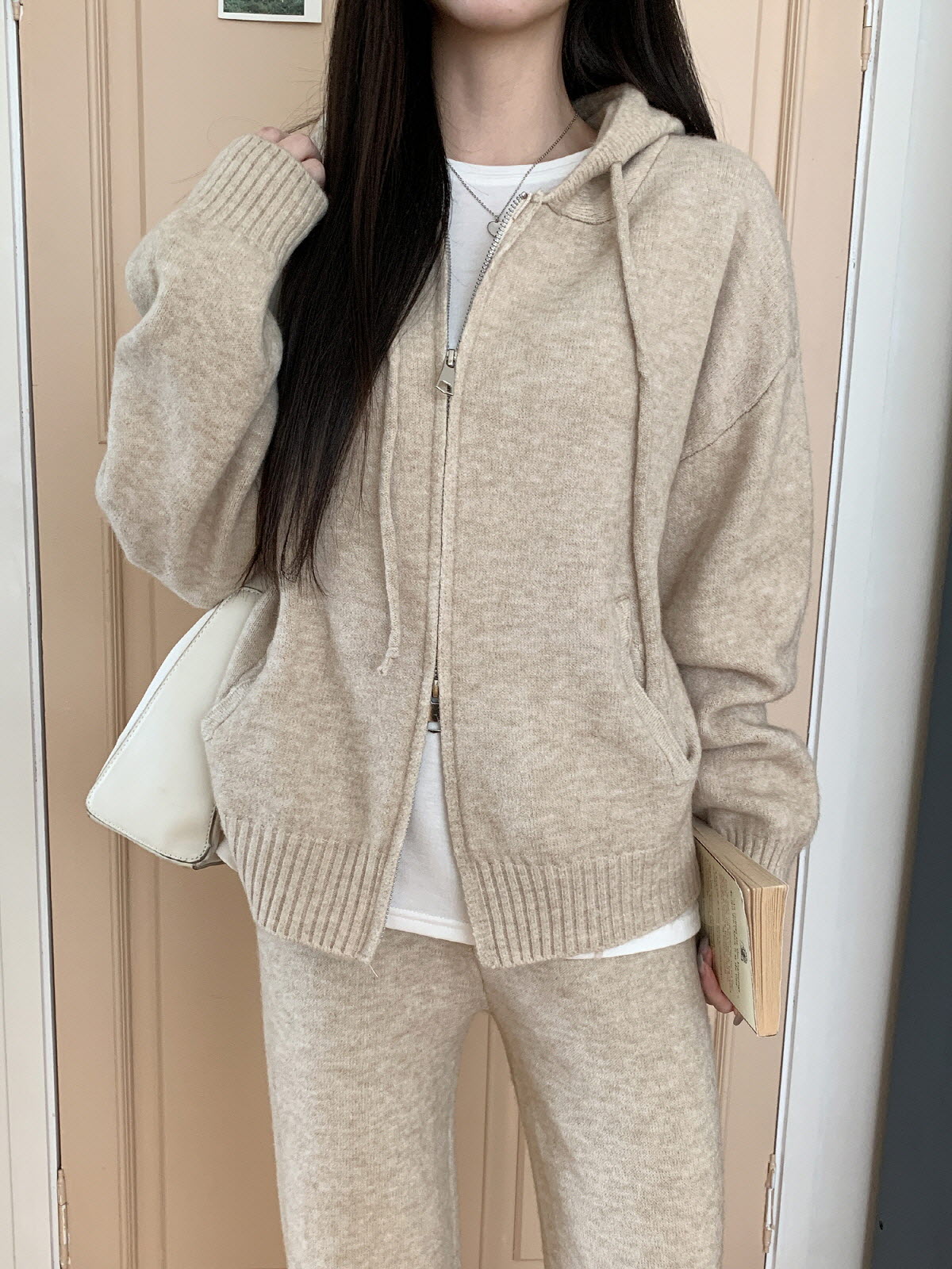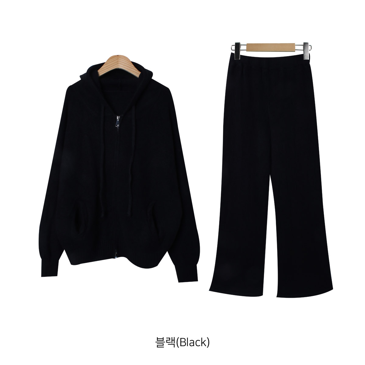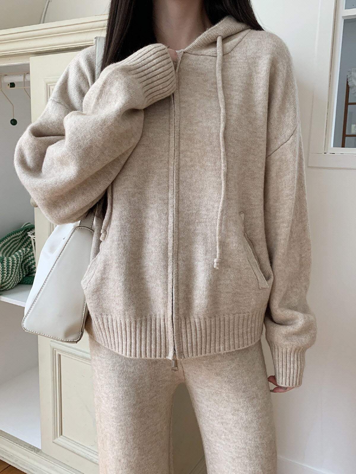 [ SET3632K4A-루투후 루즈 투웨이 니트 후드 집업 밴딩 팬츠 세트 ]