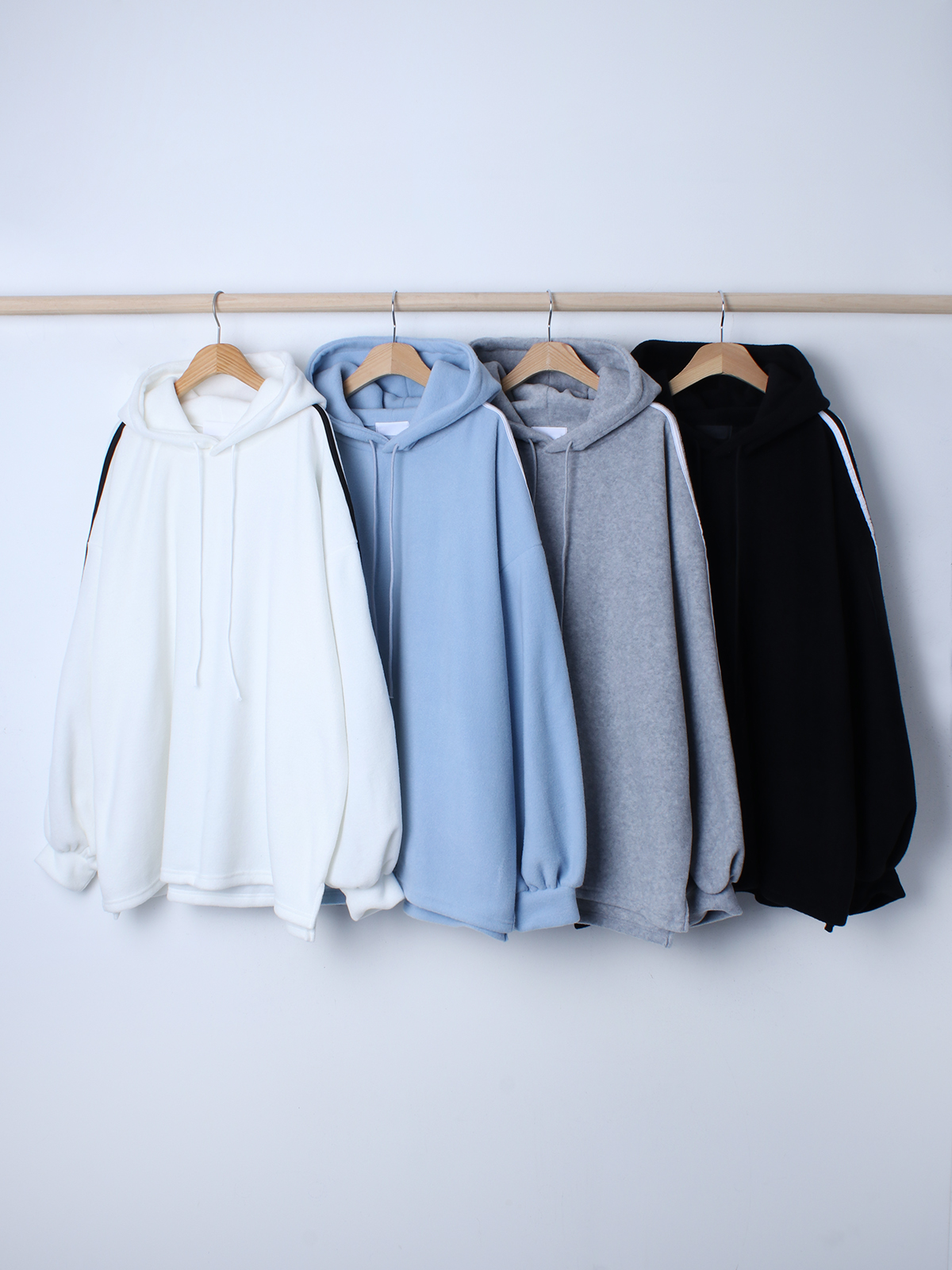 부드러운 모직 소재로 얇아 가볍고, 피치기모 안감으로 따듯함도 놓치지 않은 후드티를 추천해 드립니다~!