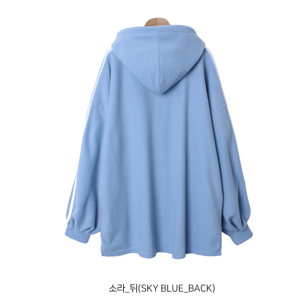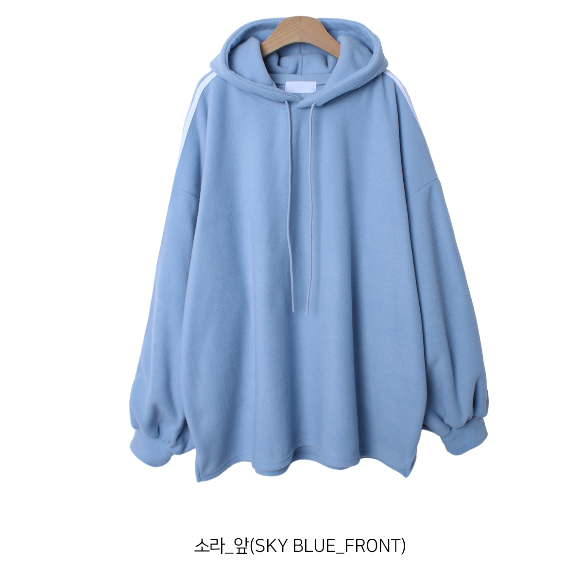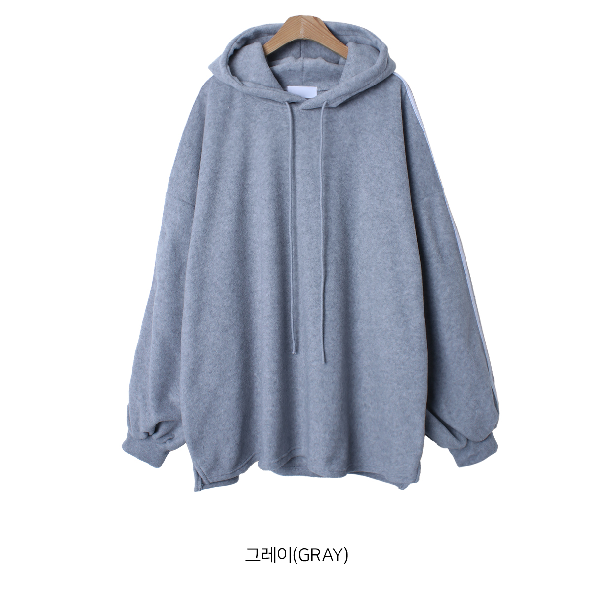 T16130K4C-피유으 무지 트랙 피치기모 롱 박시 후드 티셔츠