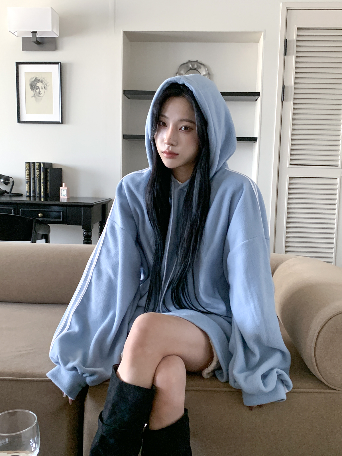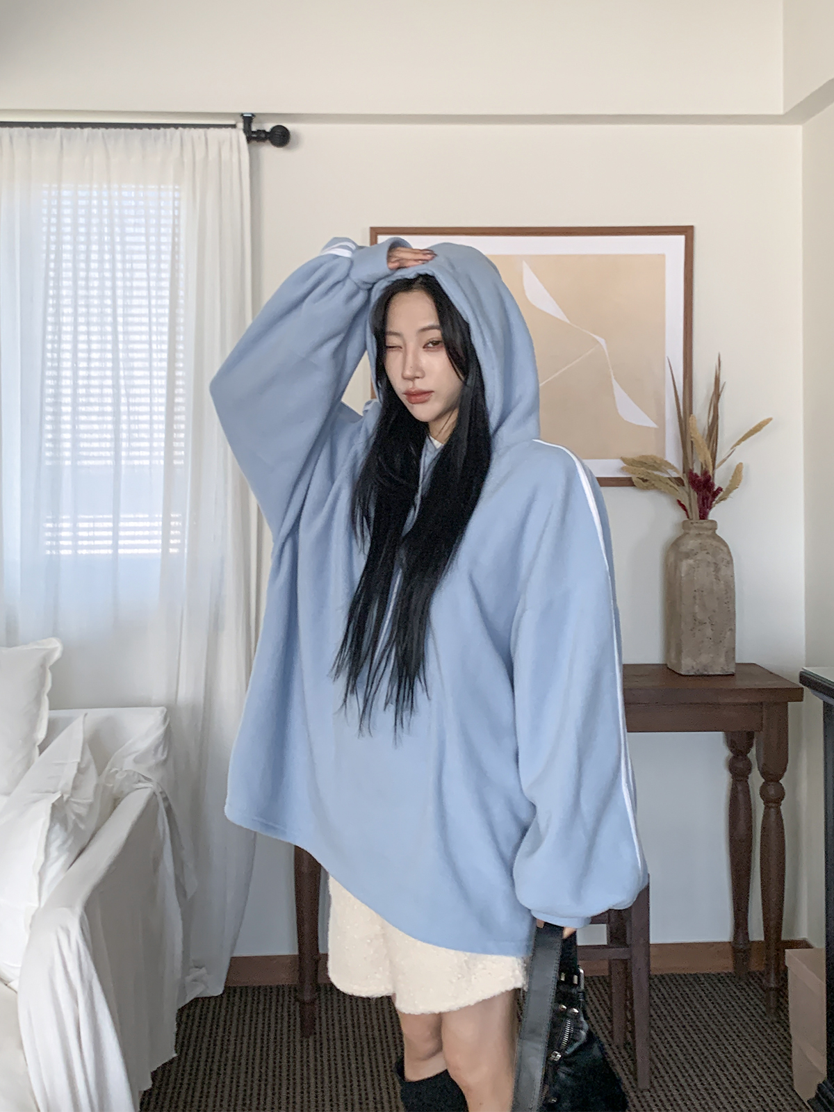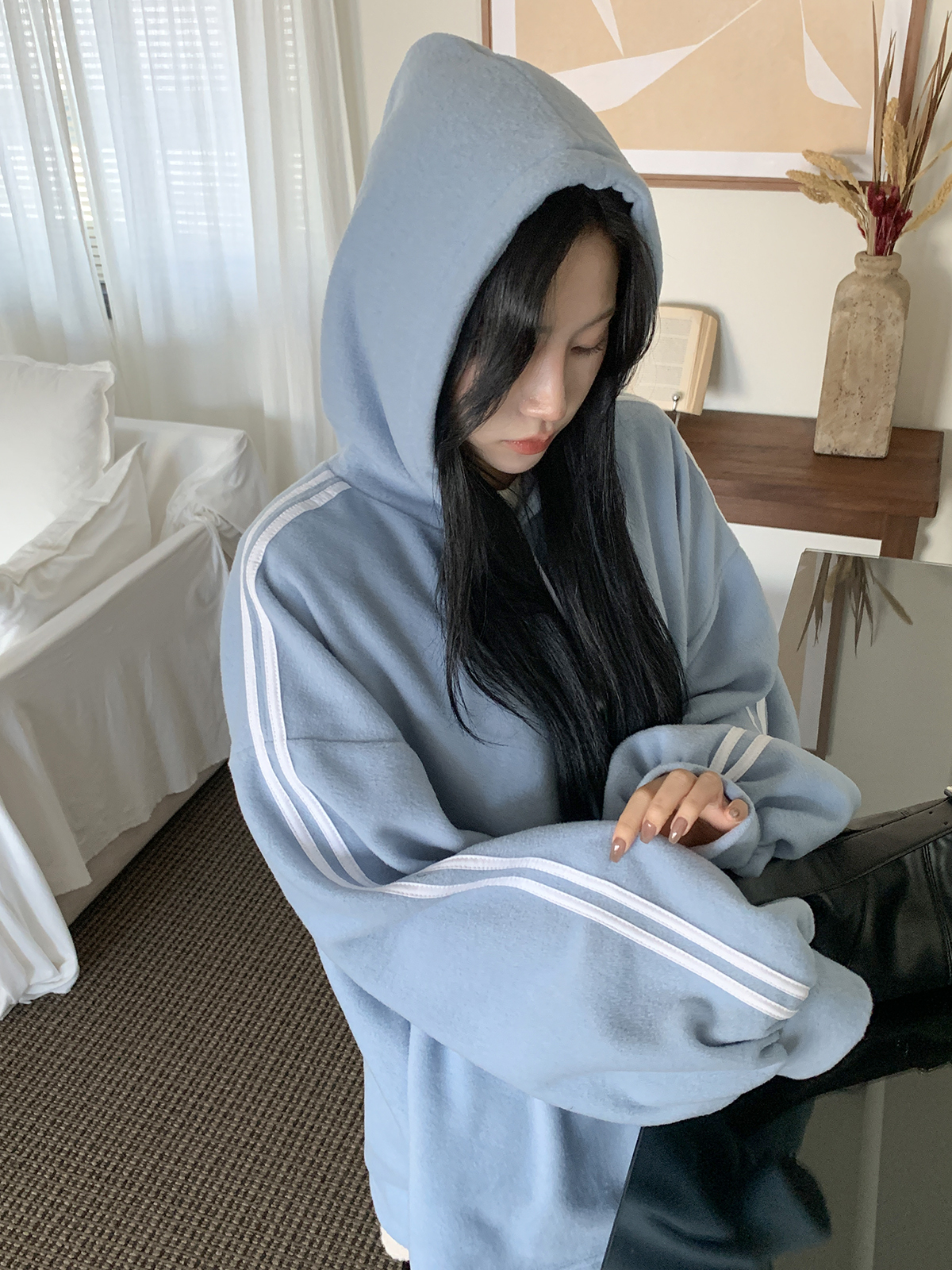 #가벼운#피치기모#소프트모직#트랙후드티#롱박시#티셔츠#후드티셔츠#후드#여성티셔츠#여성후드티#데일리후드티#데일리코디#여성코디#캐쥬얼#편한