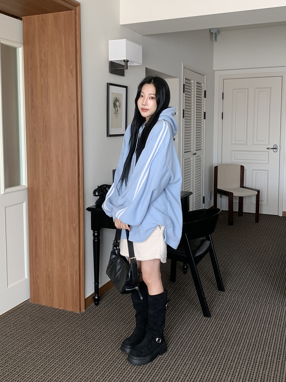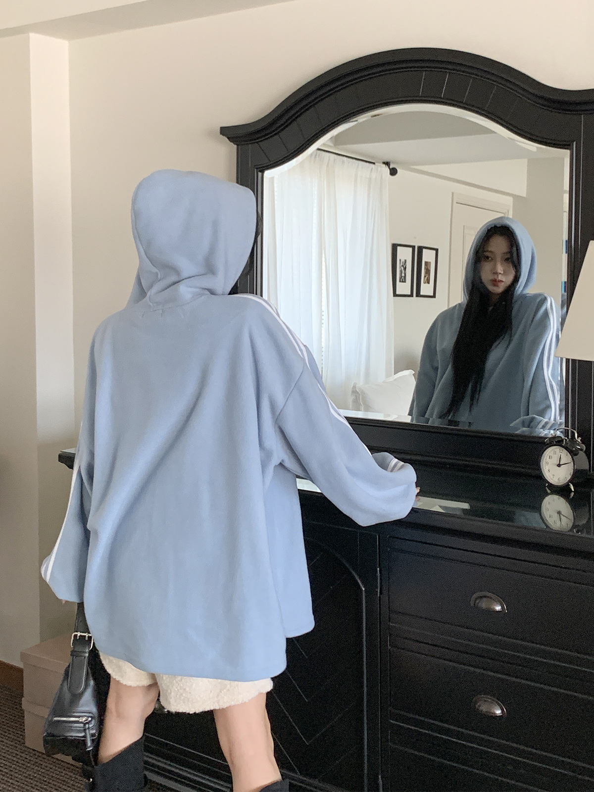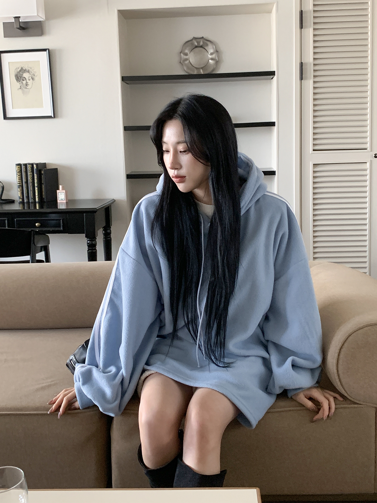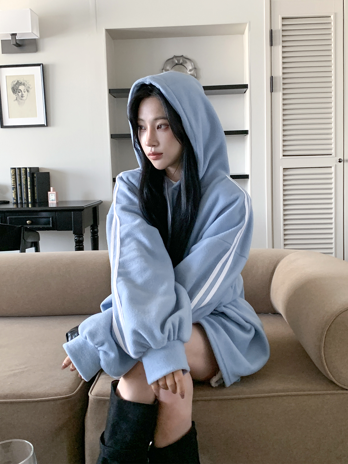 #가벼운#피치기모#소프트모직#트랙후드티#롱박시#티셔츠#후드티셔츠#후드#여성티셔츠#여성후드티#데일리후드티#데일리코디#여성코디#캐쥬얼#편한