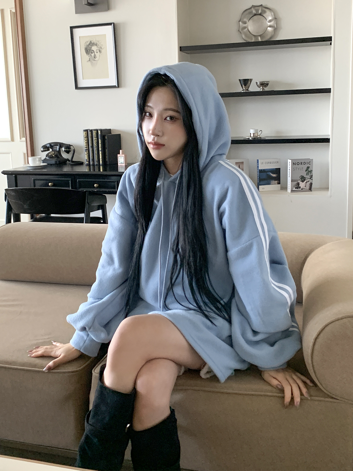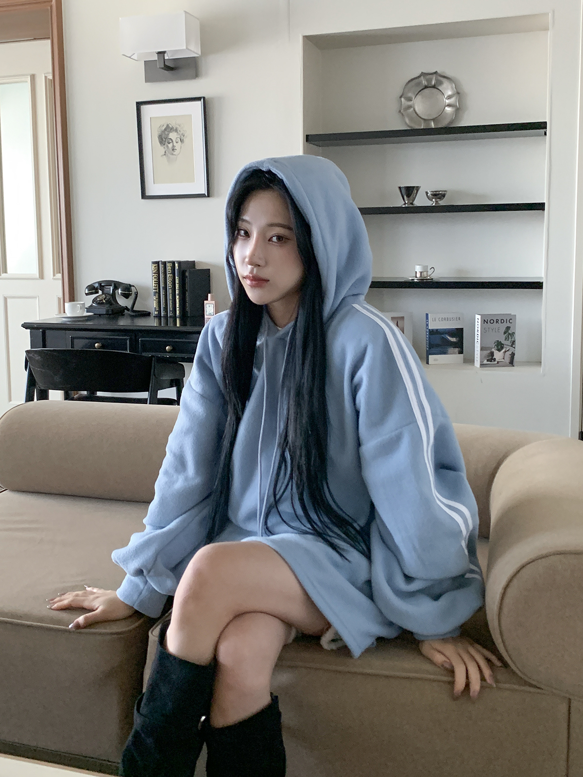 핏감과 색감 두가지가 모두 이쁘게 잘 나온 박시핏 롱 후드 티셔츠를 가져왔어요!