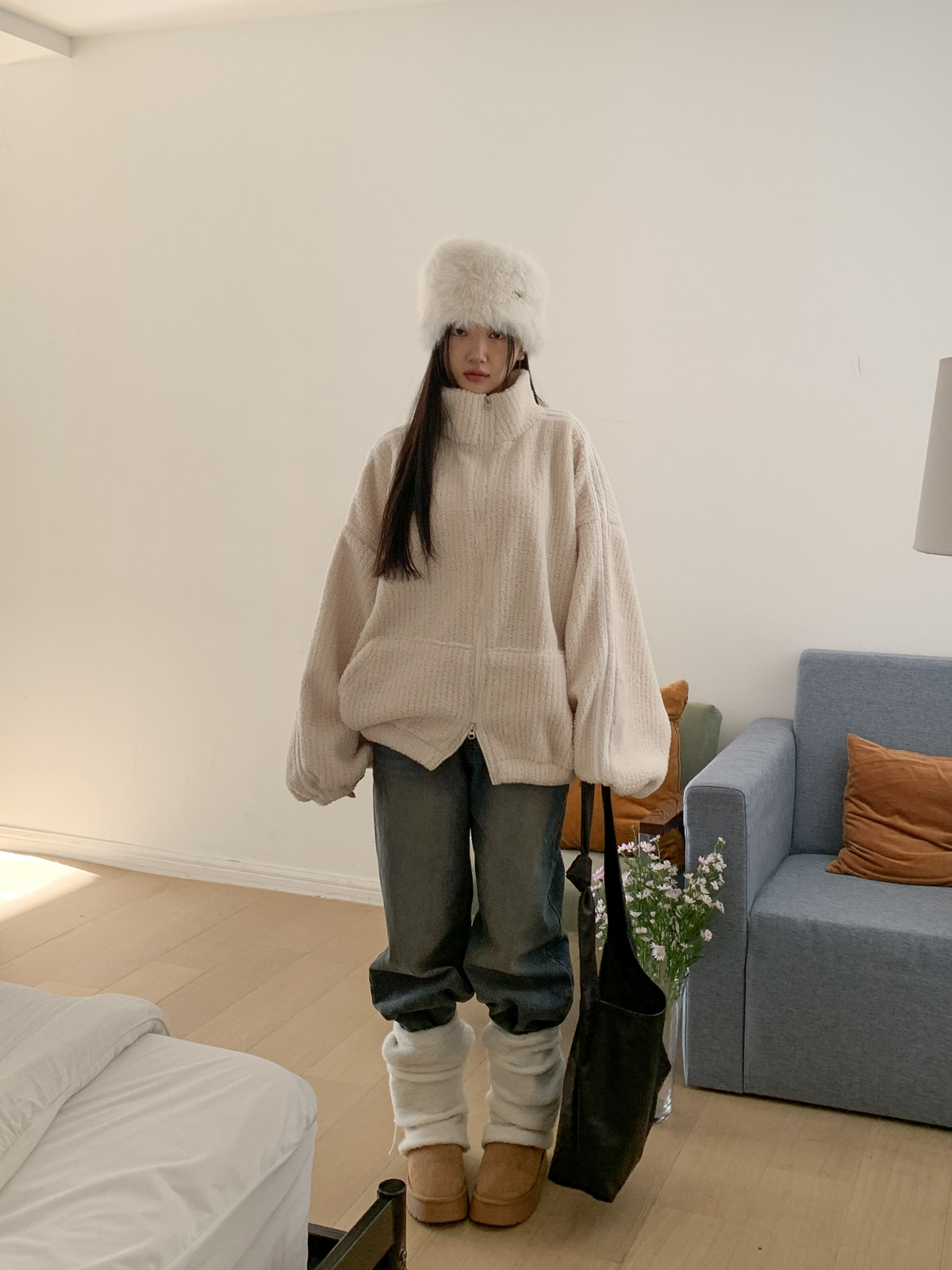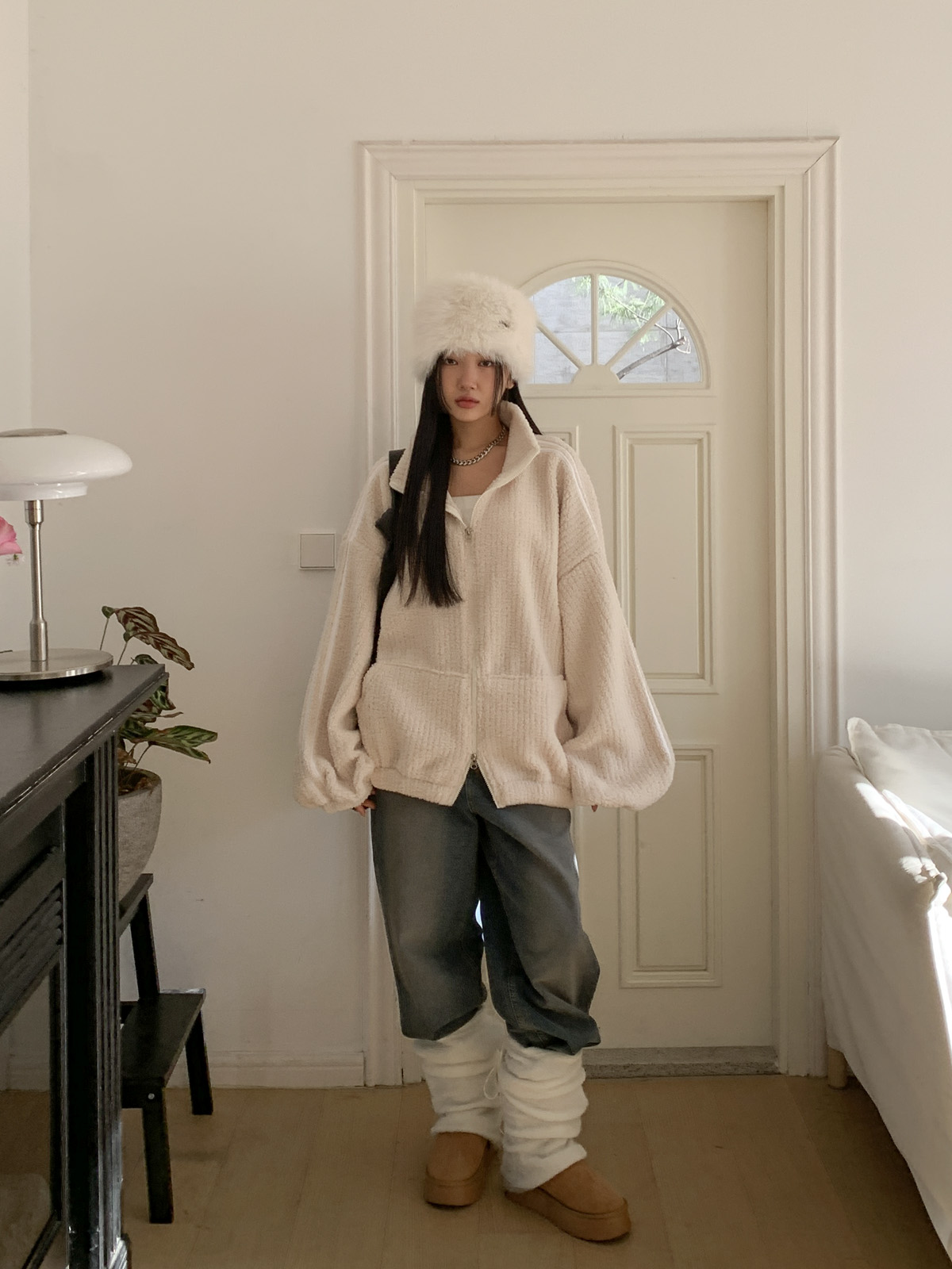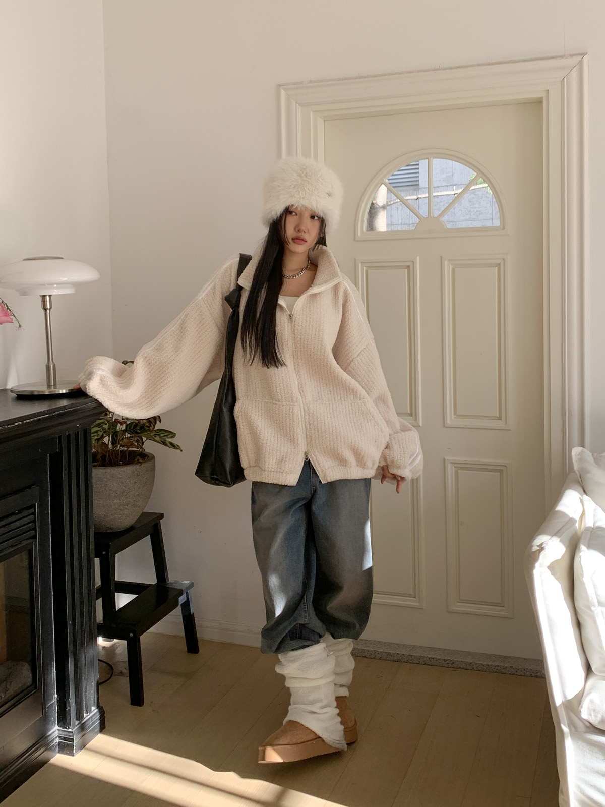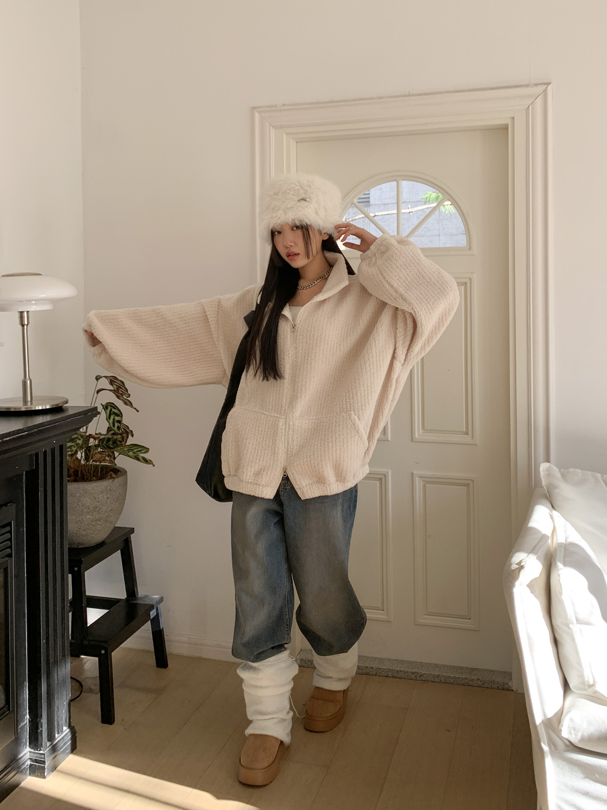 뽀글이 소재로 따뜻하게 입을 수 있는 박시 투웨이 집업