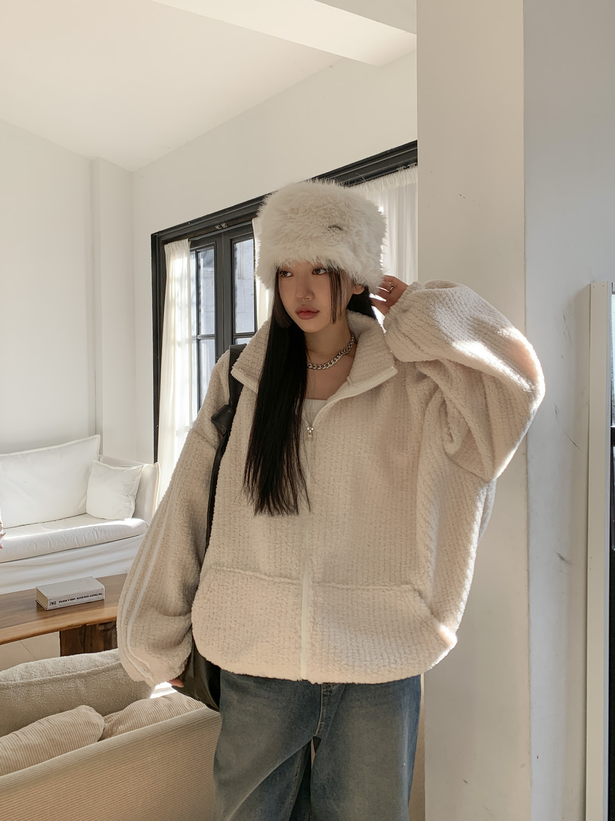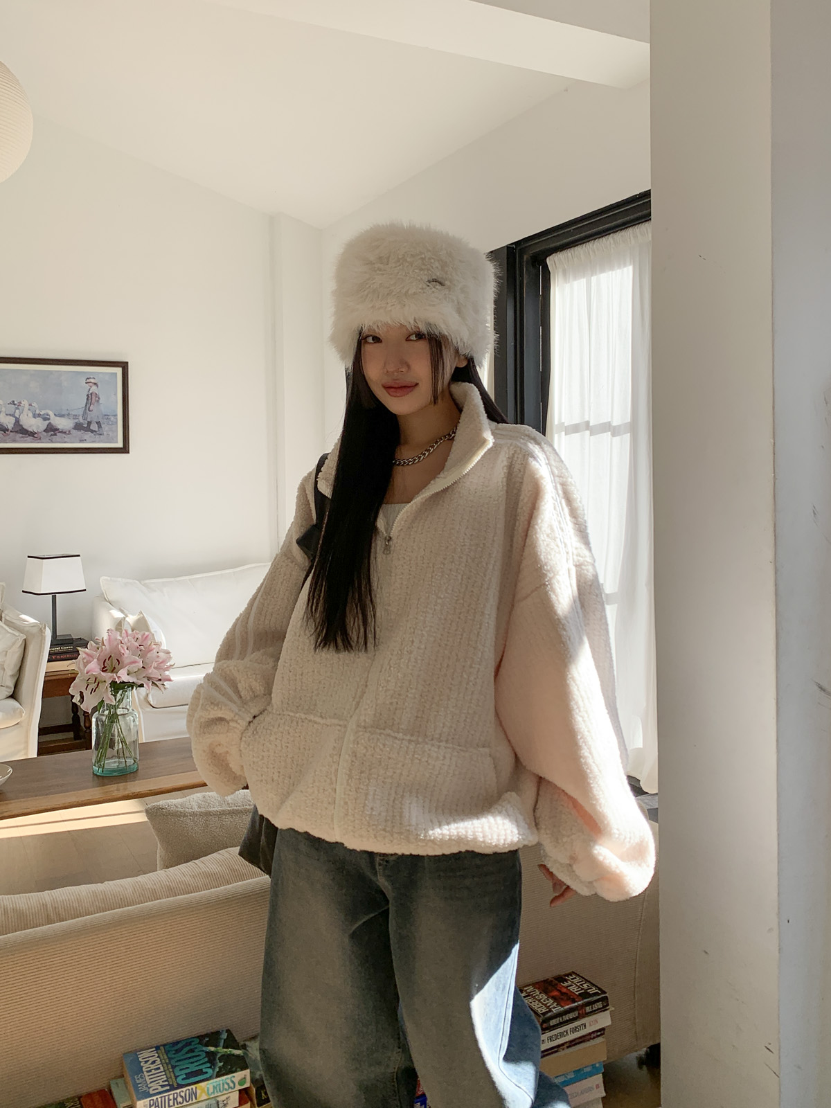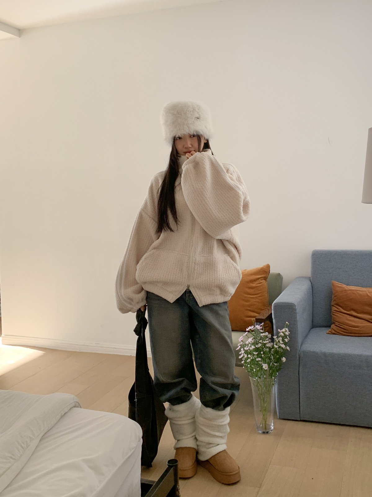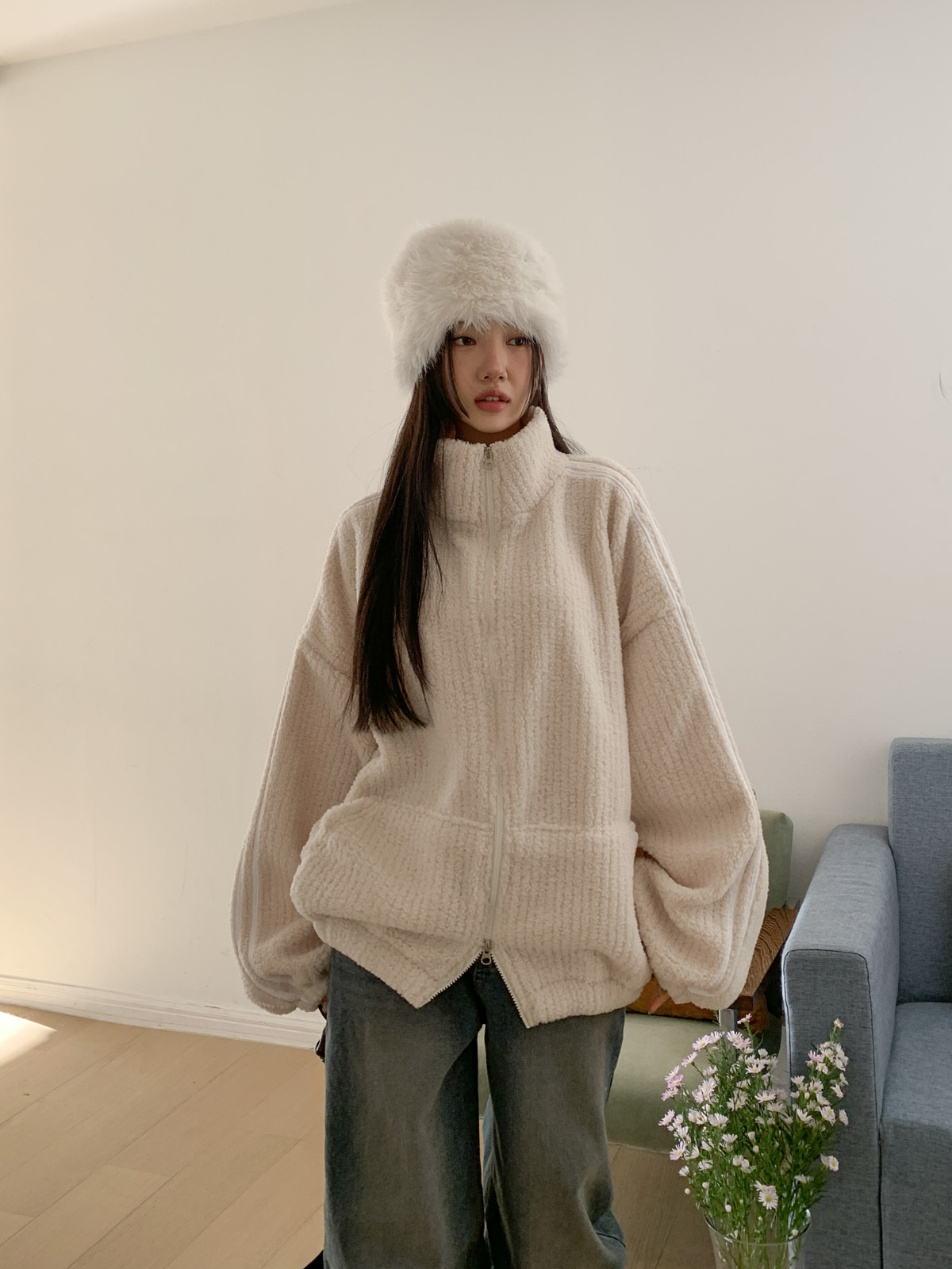 뽀글이 소재로 따뜻하게 입을 수 있는 박시 투웨이 집업