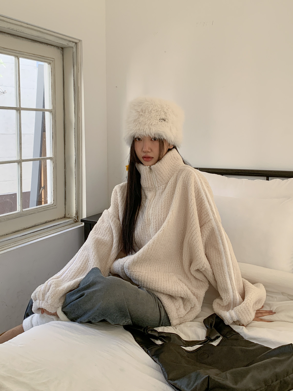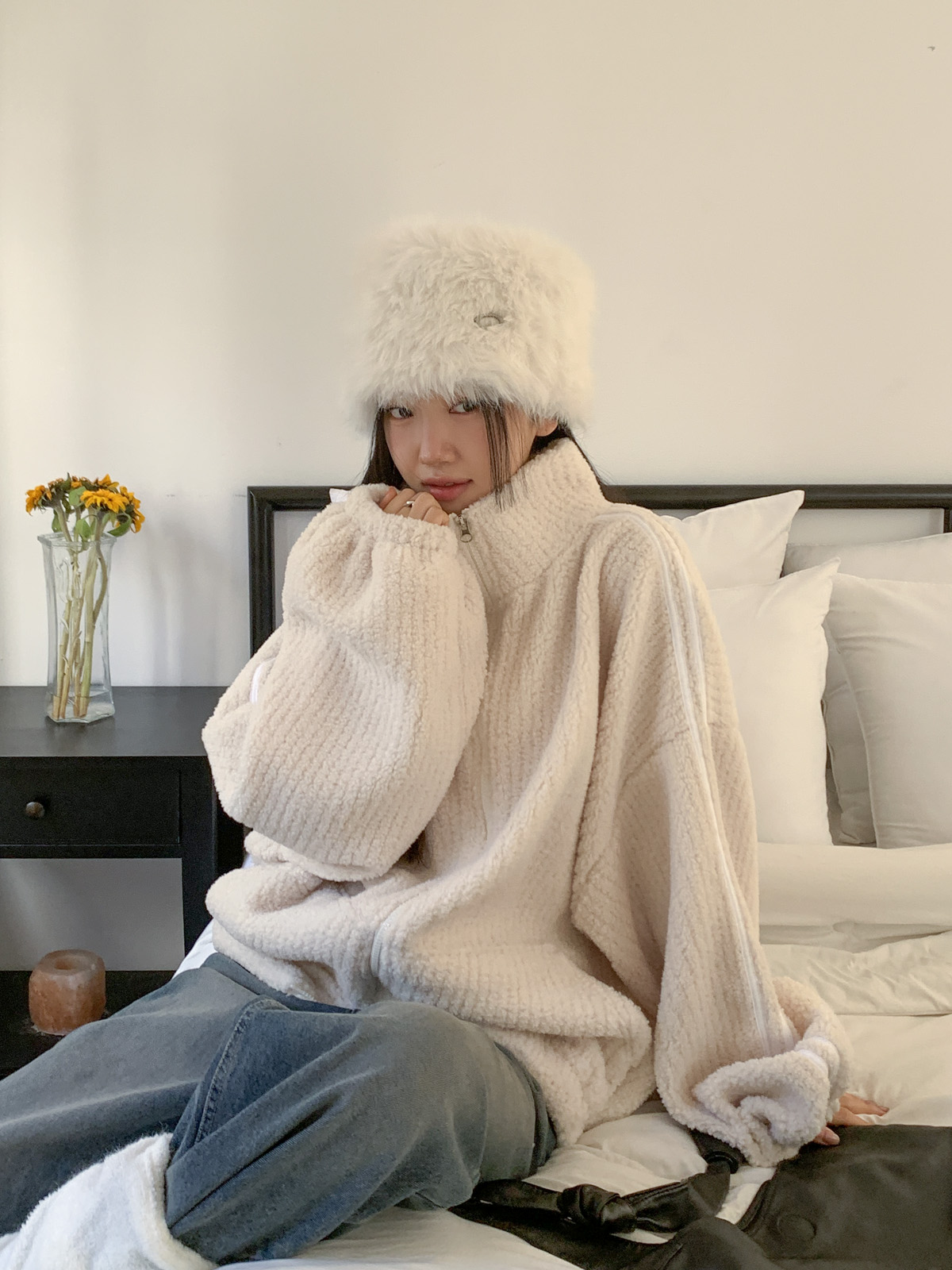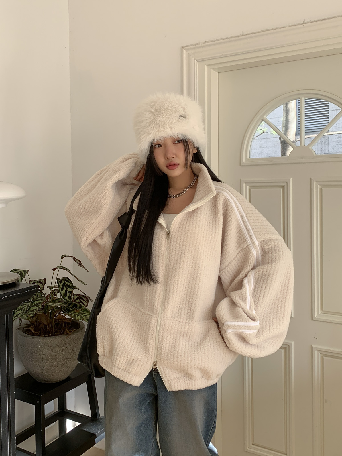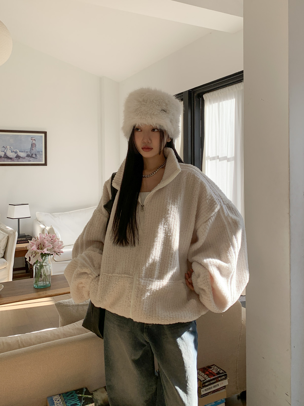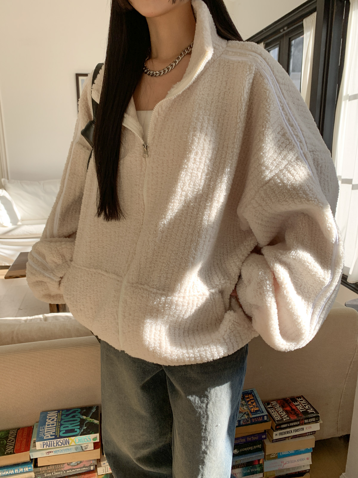 뽀글이 소재로 따뜻하게 입을 수 있는 박시 투웨이 집업