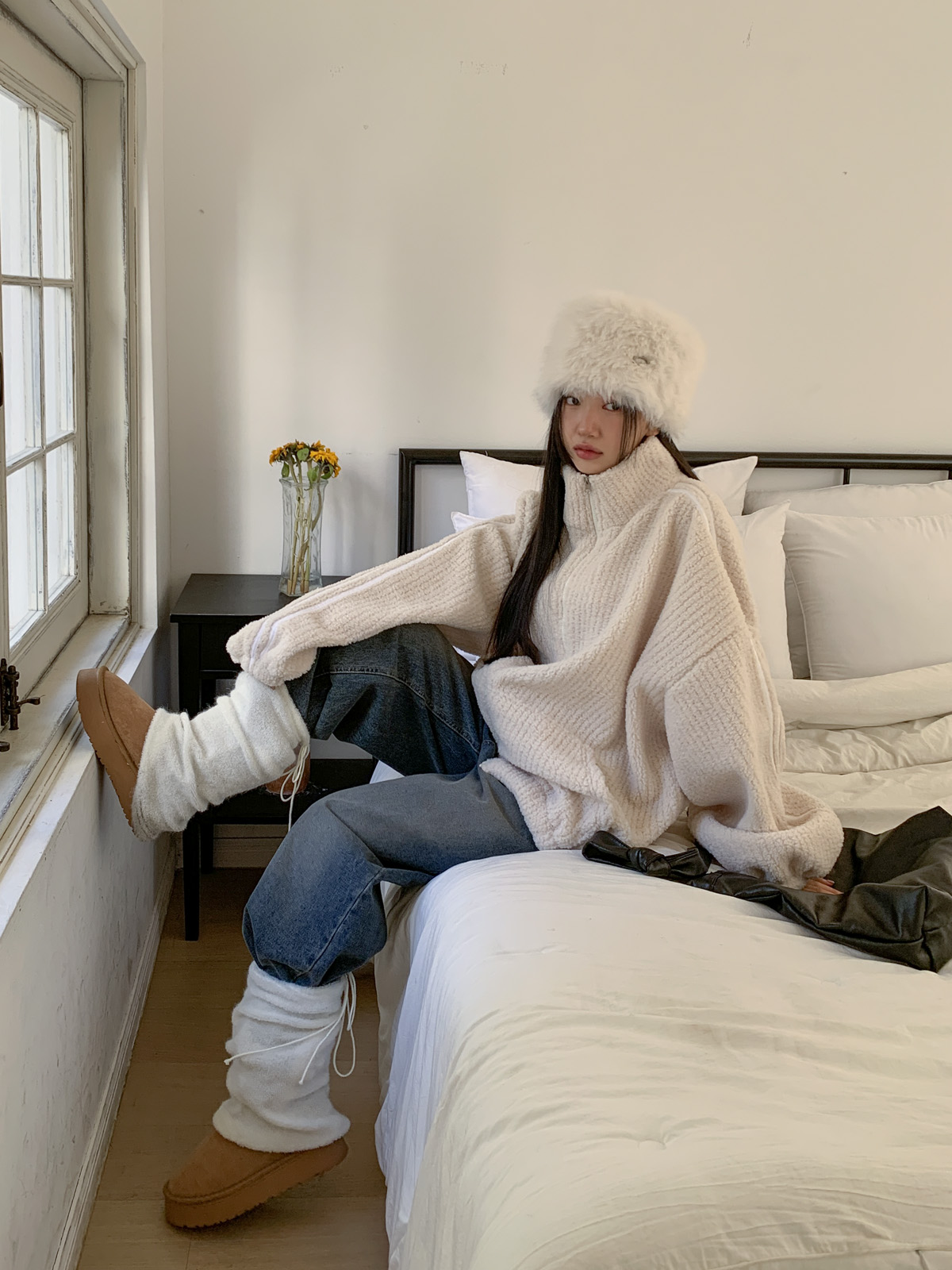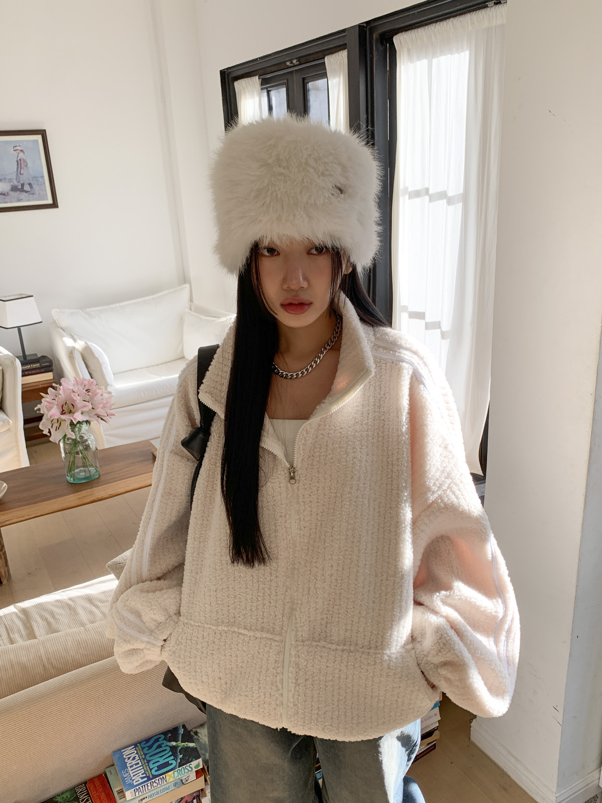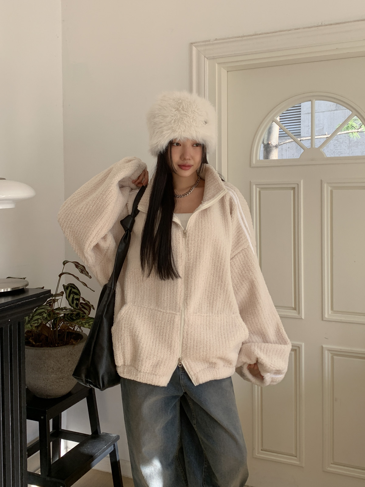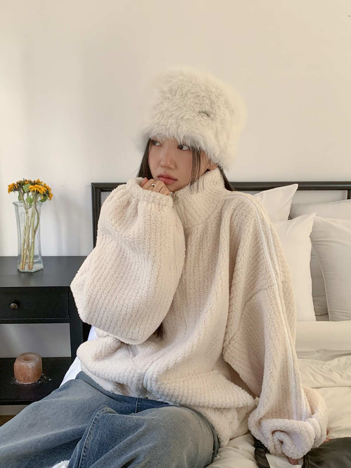 뽀글이 소재로 따뜻하게 입을 수 있는 박시 투웨이 집업