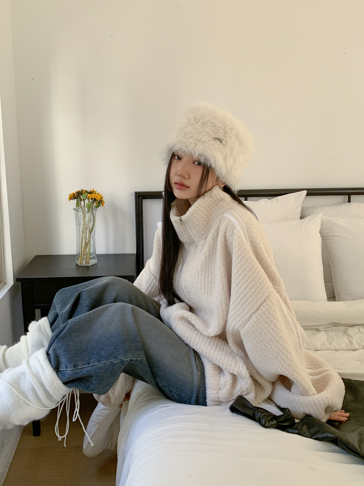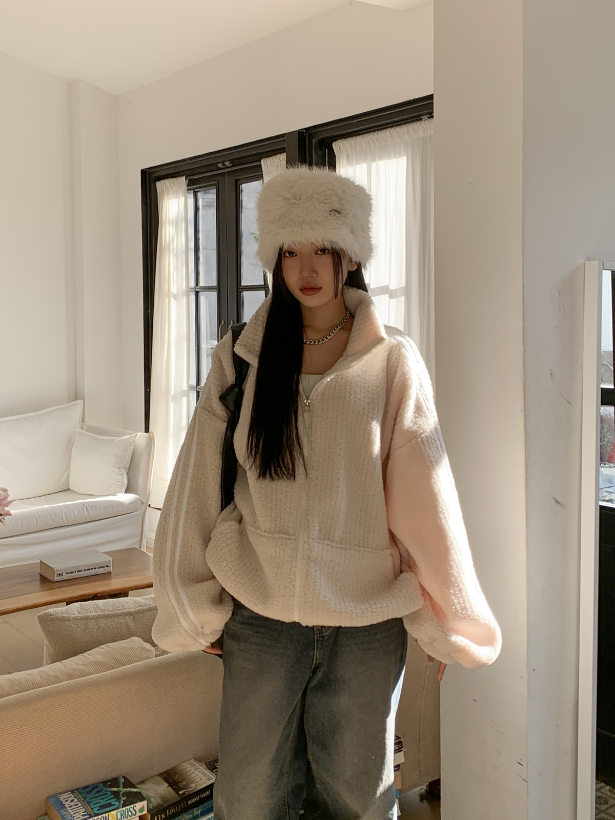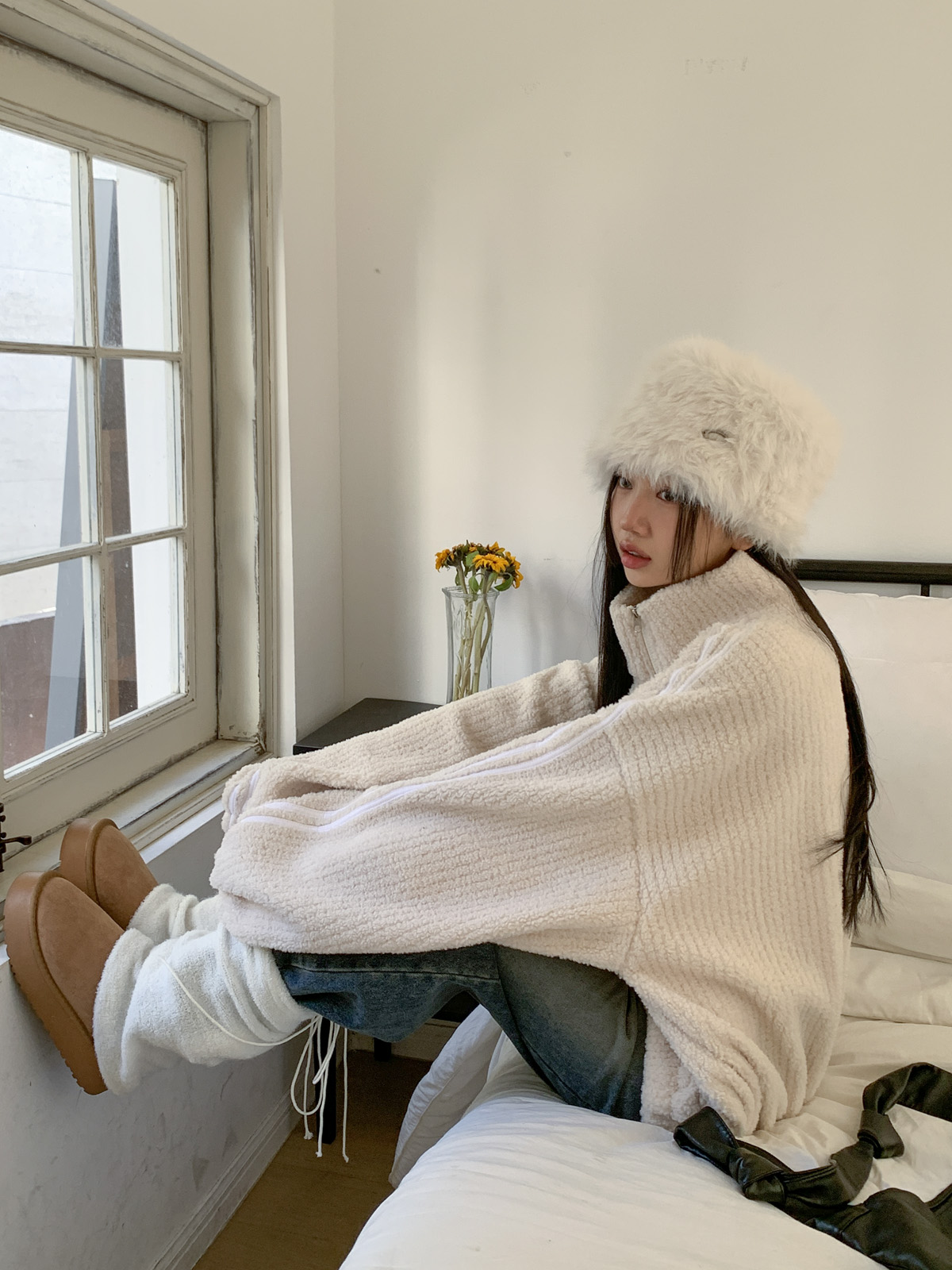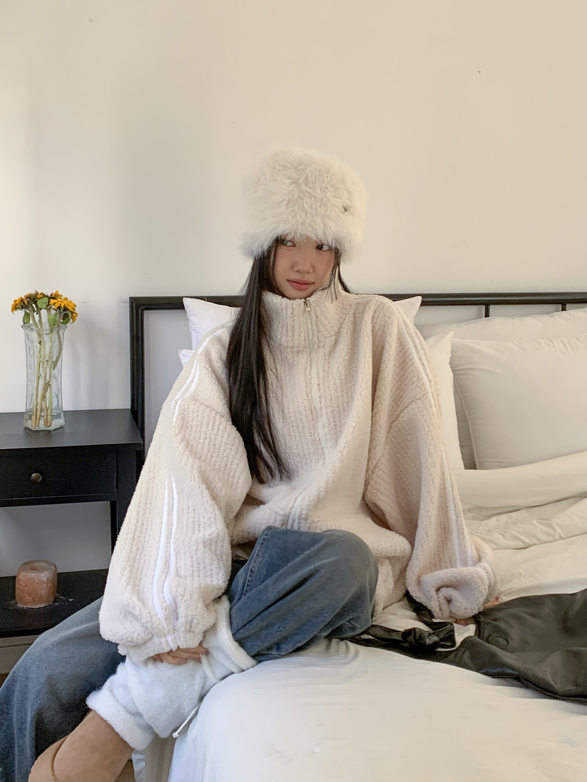 뽀글이 소재로 따뜻하게 입을 수 있는 박시 투웨이 집업