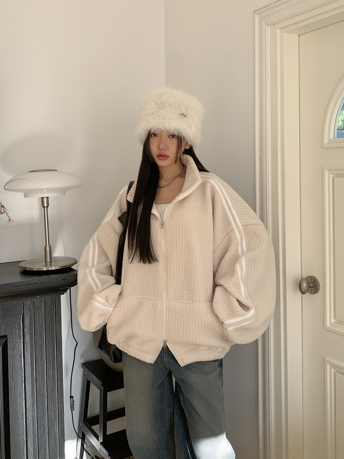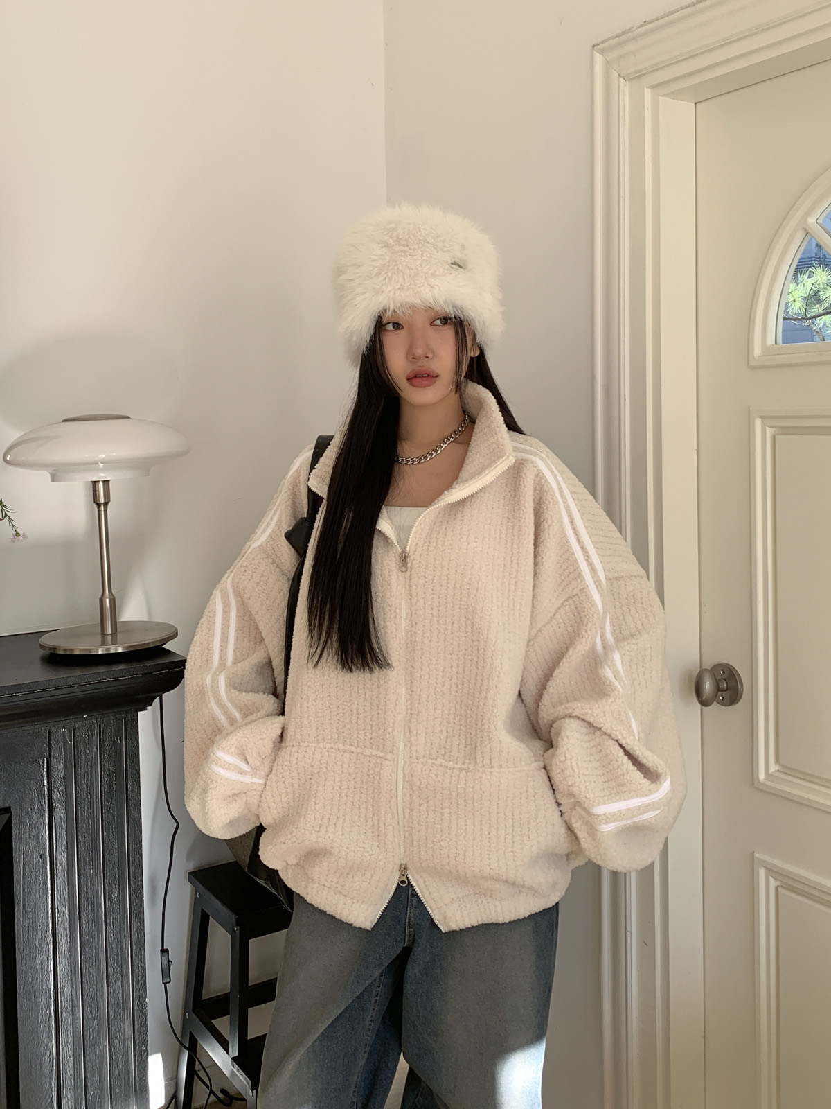 JK5944K4C-해이든 골지 뽀글이 트랙 투웨이 집업