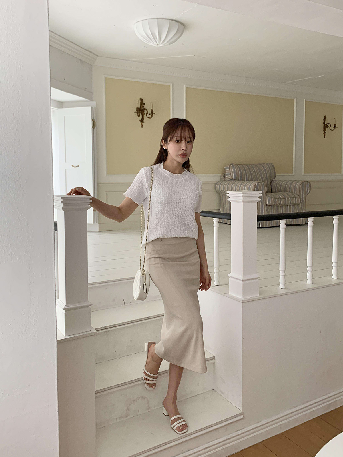 단정한 무드의 H라인으로 제작된 롱스커트