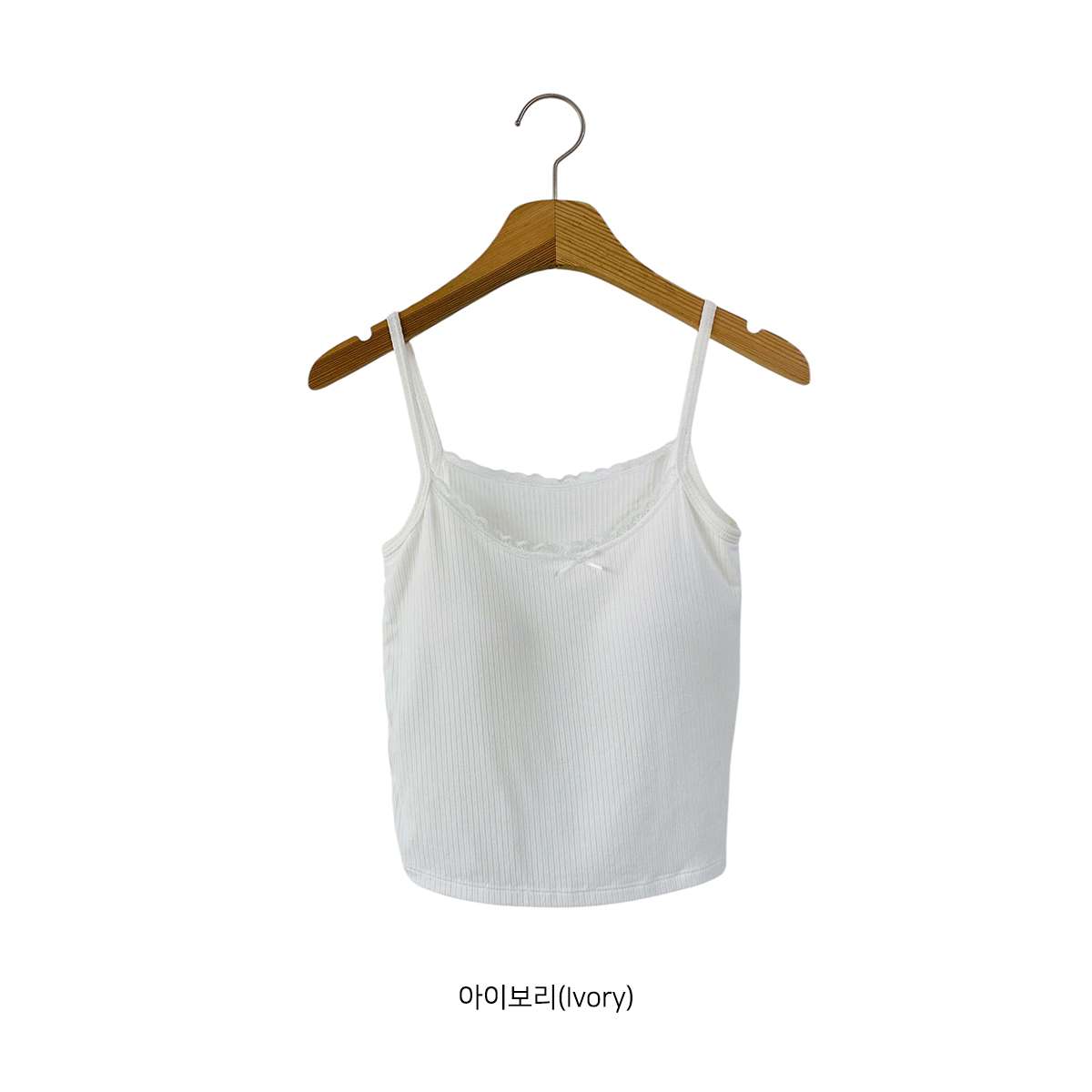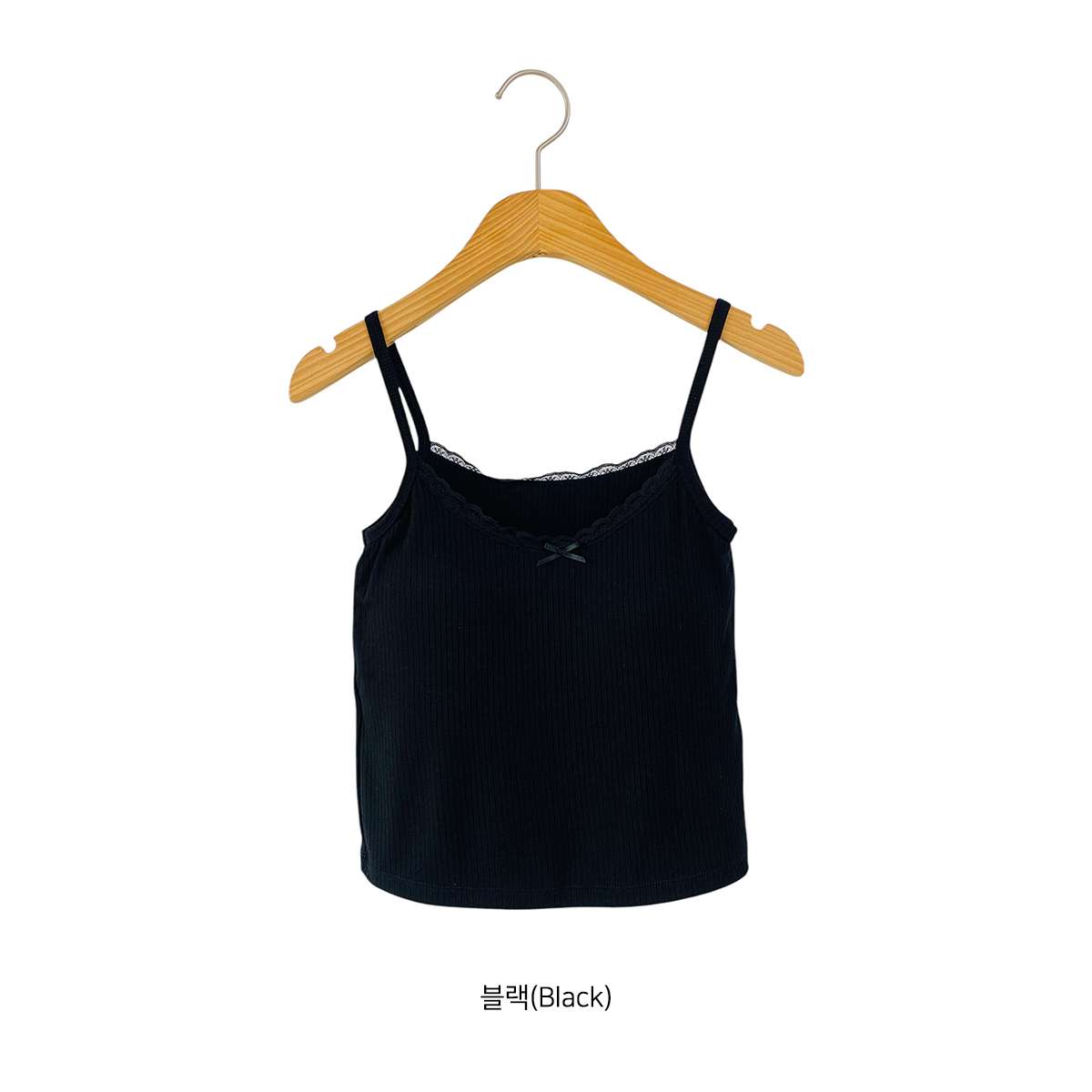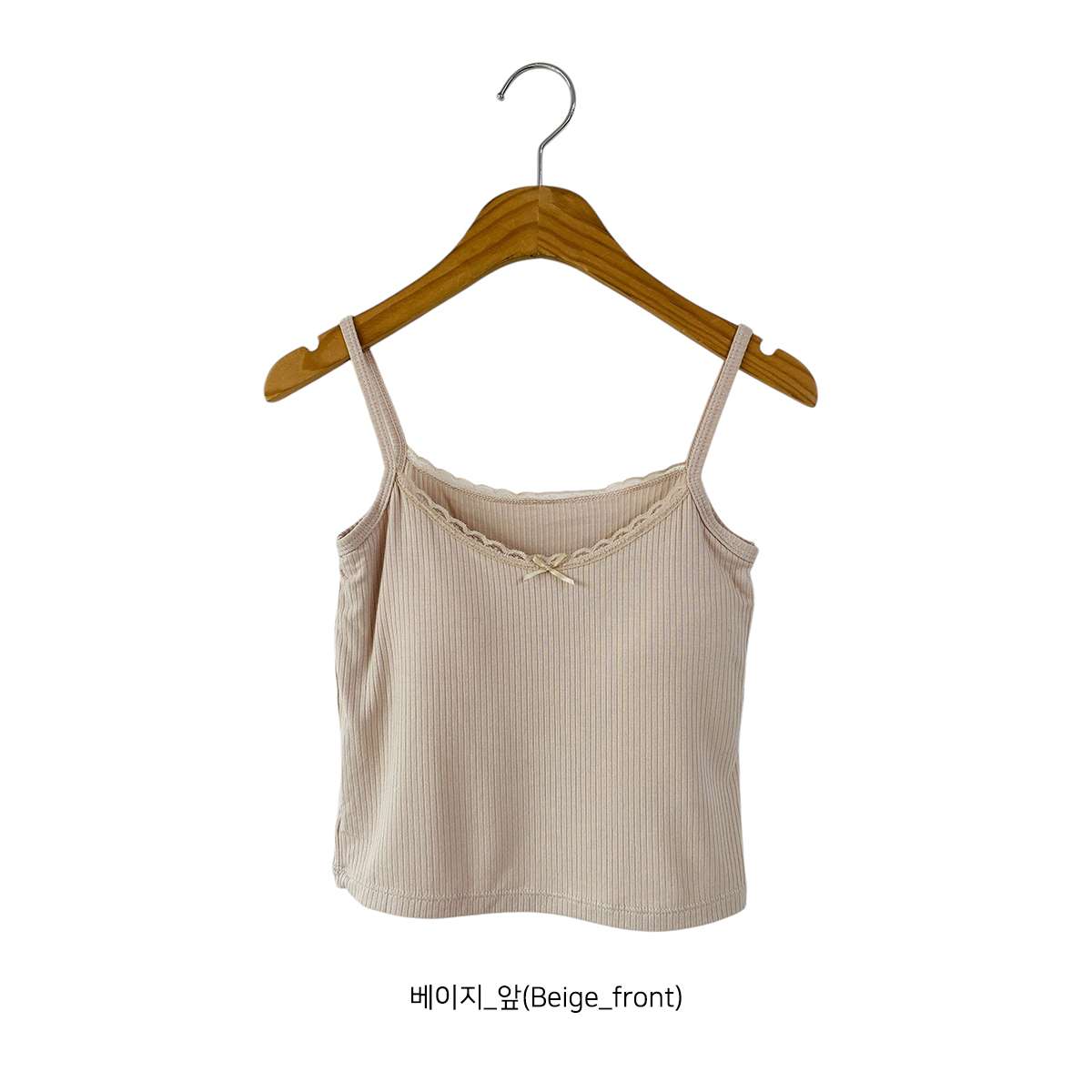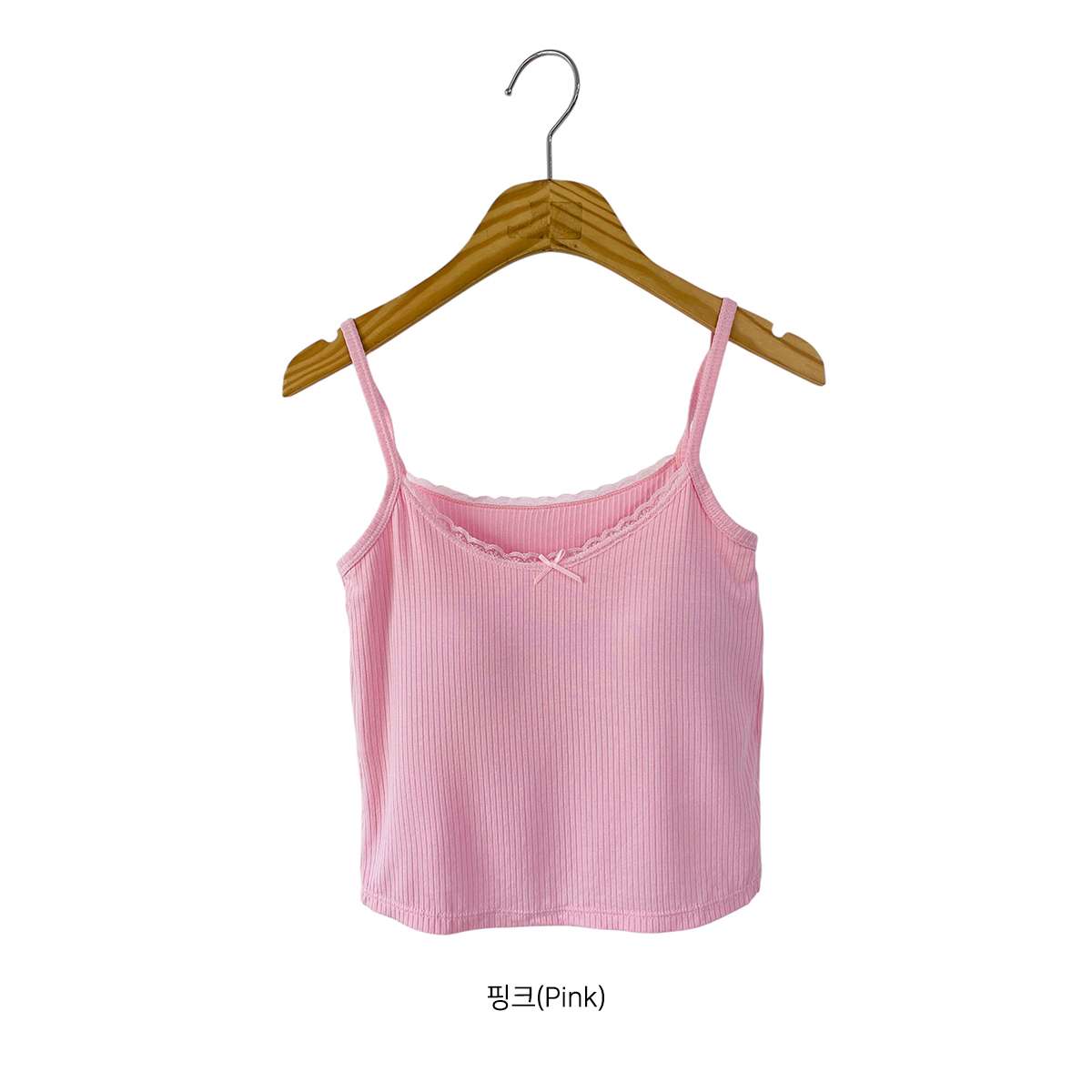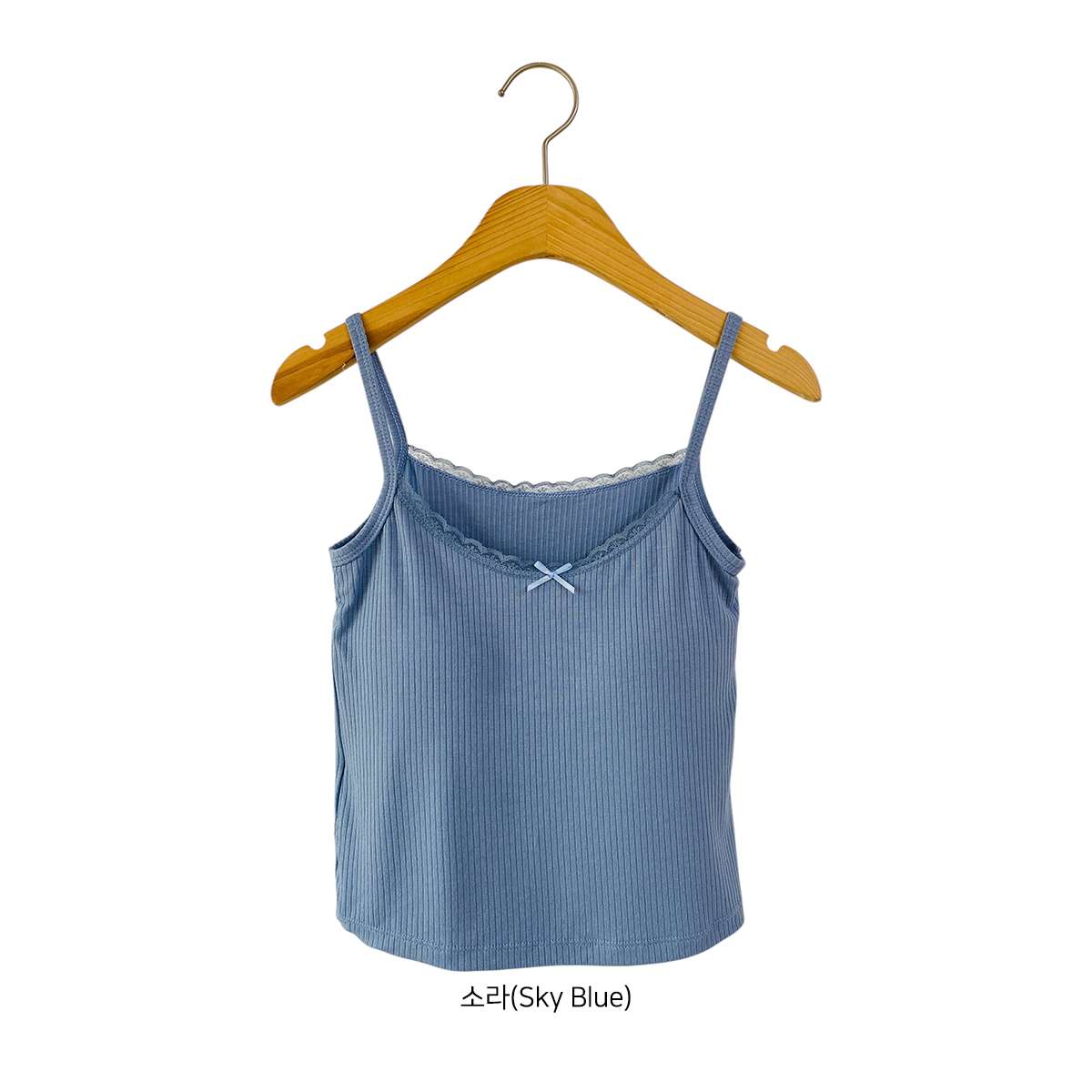 [ NS1248K54-래스마 골지 슬림 레이스 리본 크롭 나시 ]