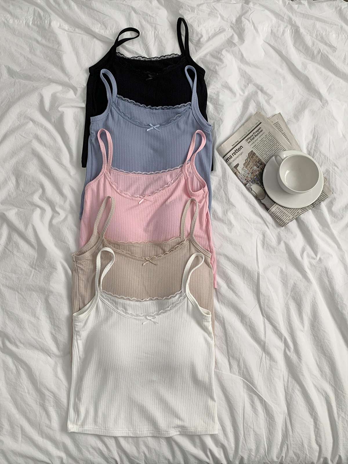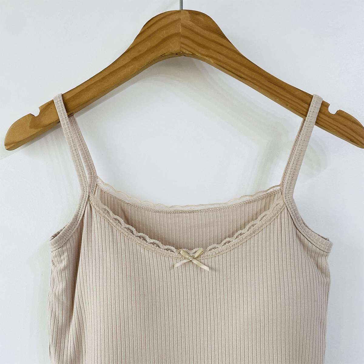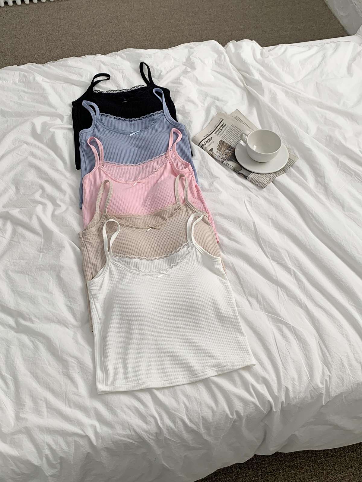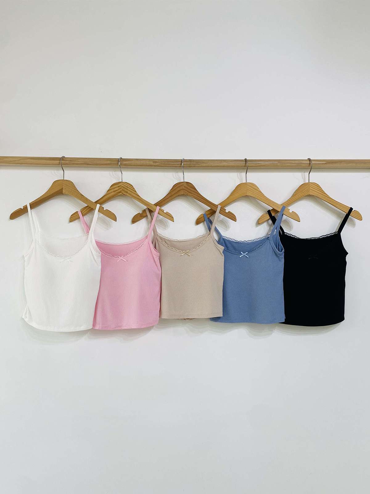 [ NS1248K54-래스마 골지 슬림 레이스 리본 크롭 나시 ]