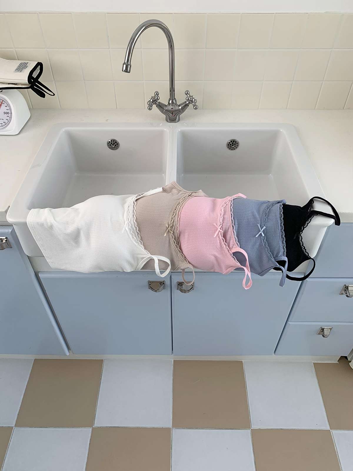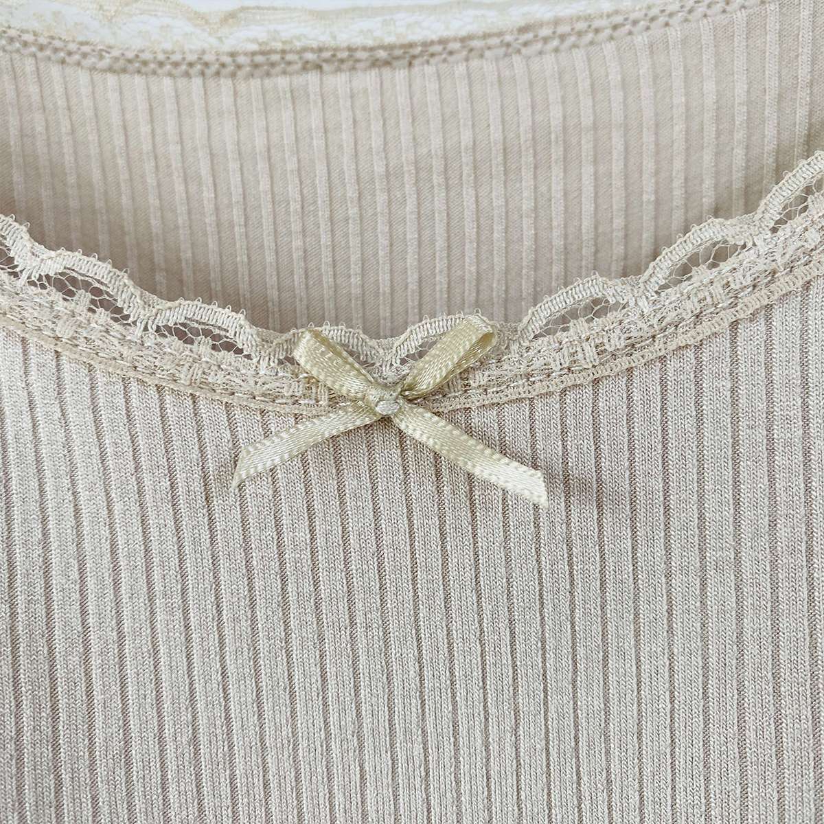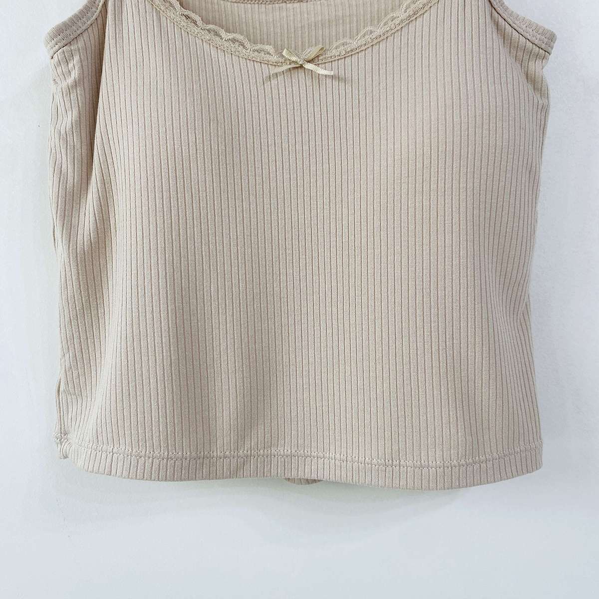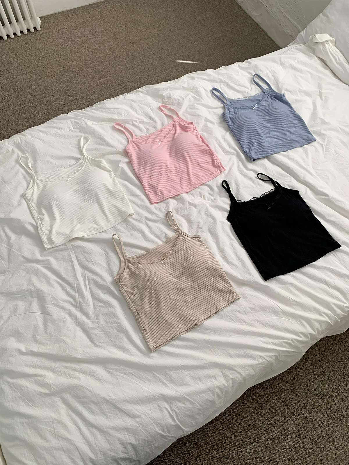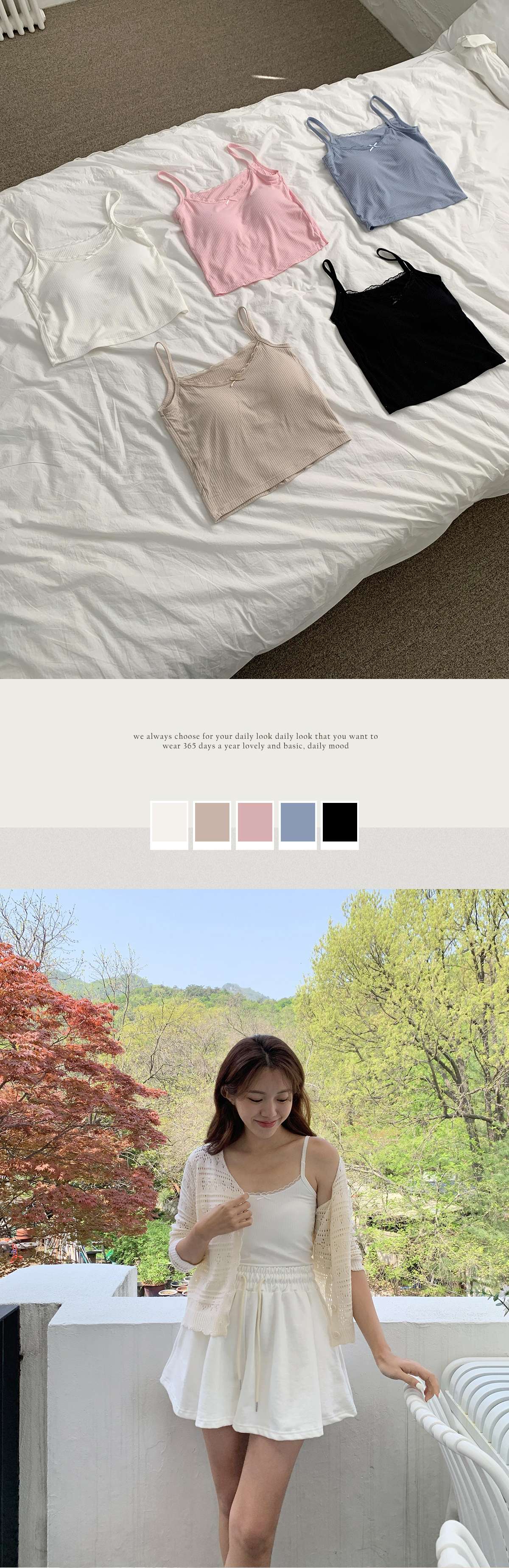 [ NS1248K54-래스마 골지 슬림 레이스 리본 크롭 나시 ]
