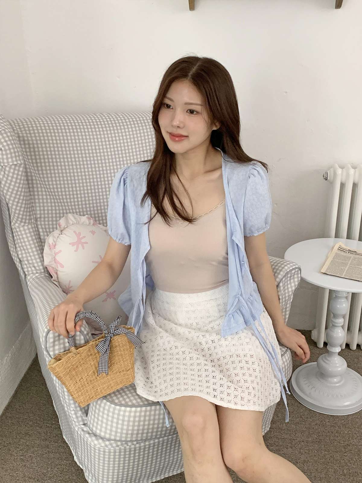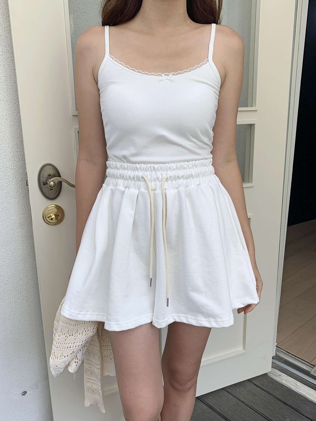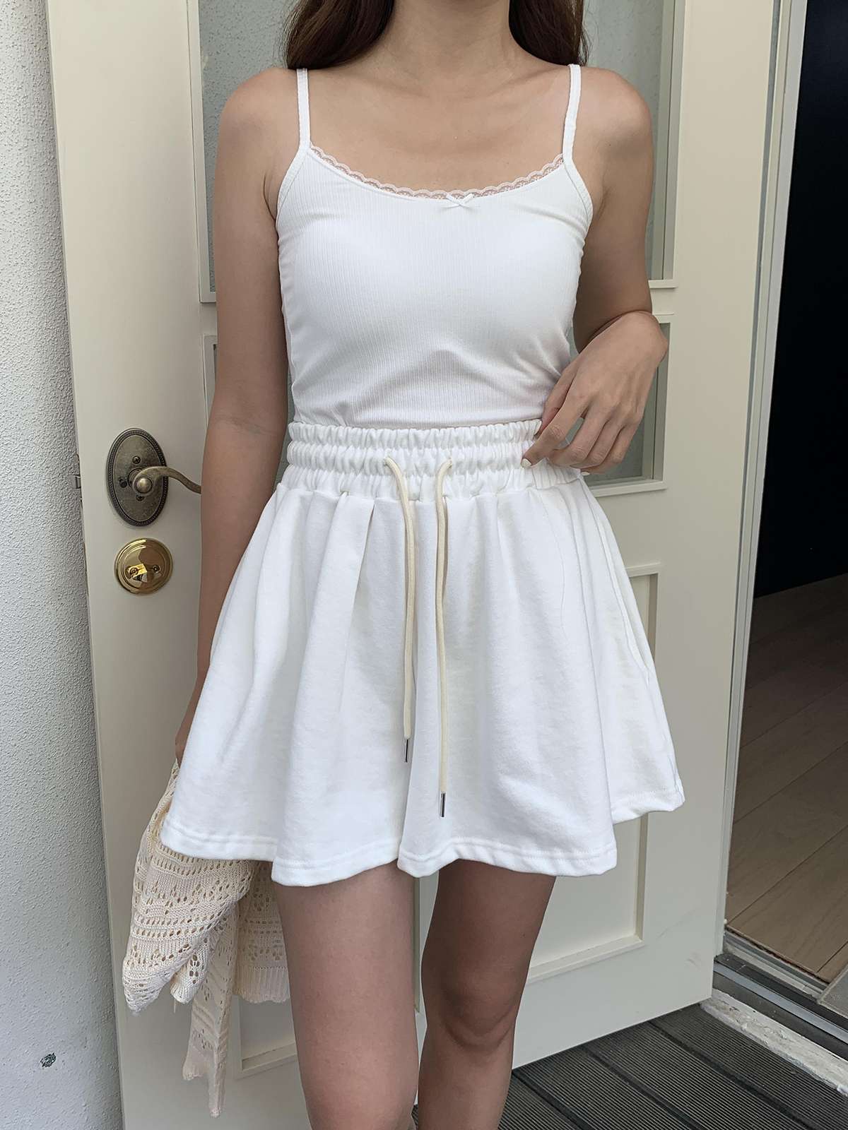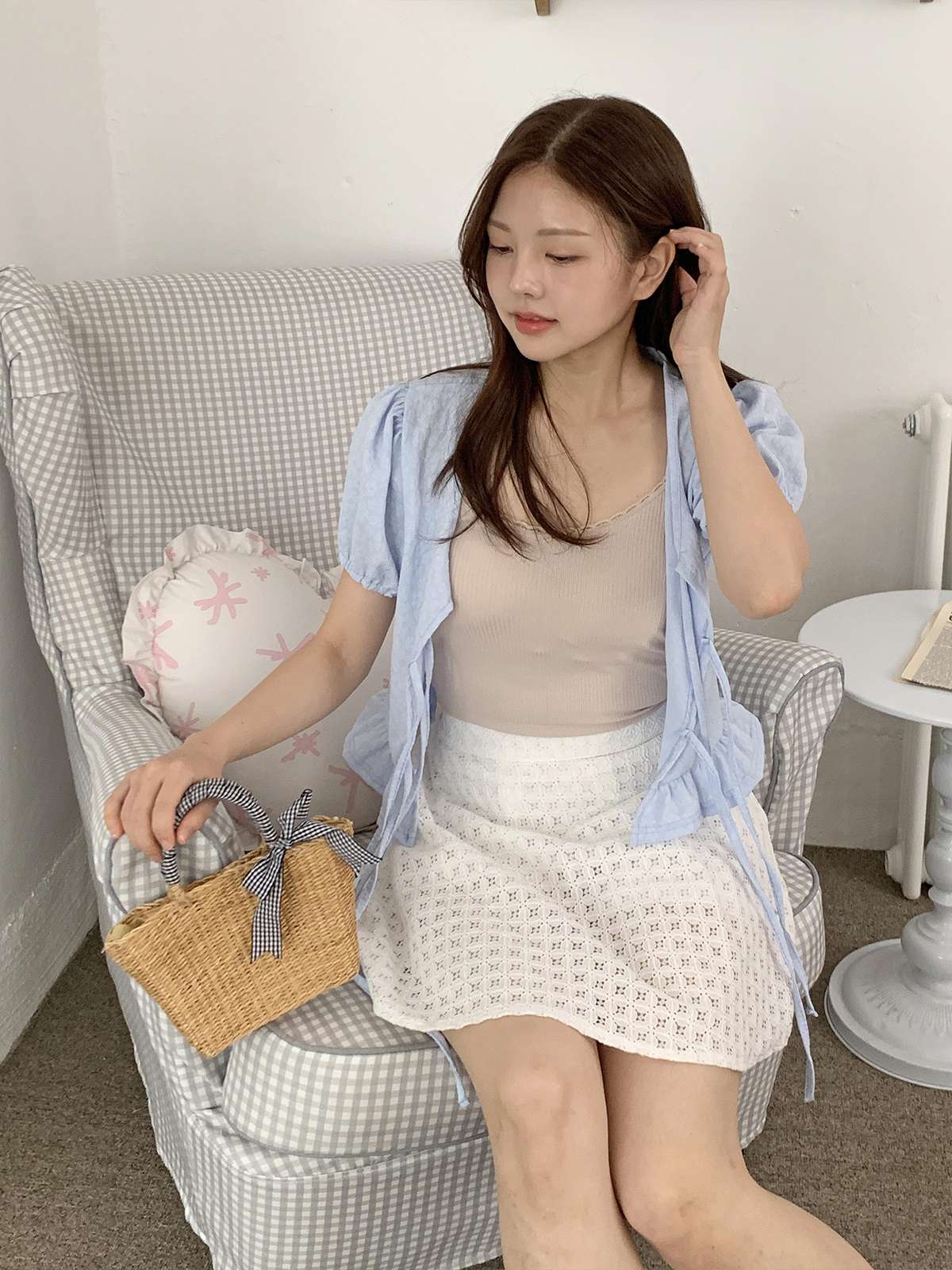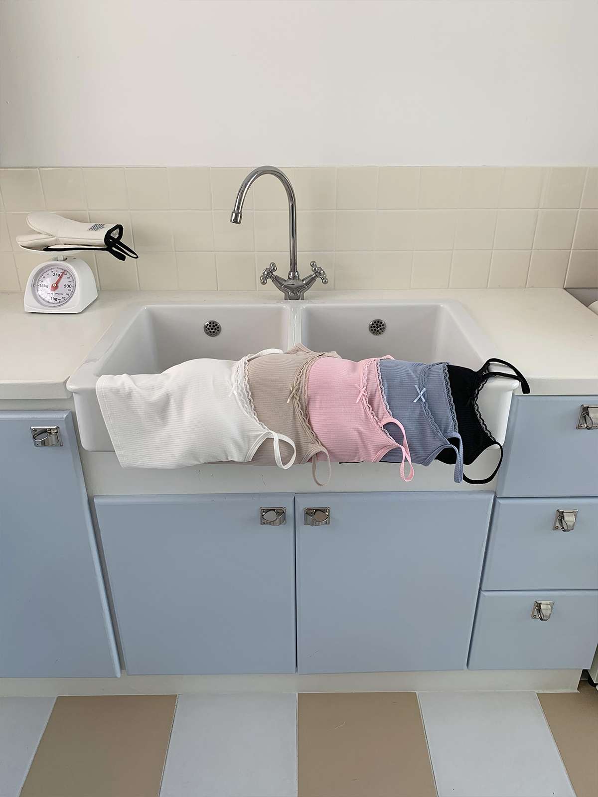 [ NS1248K54-래스마 골지 슬림 레이스 리본 크롭 나시 ]